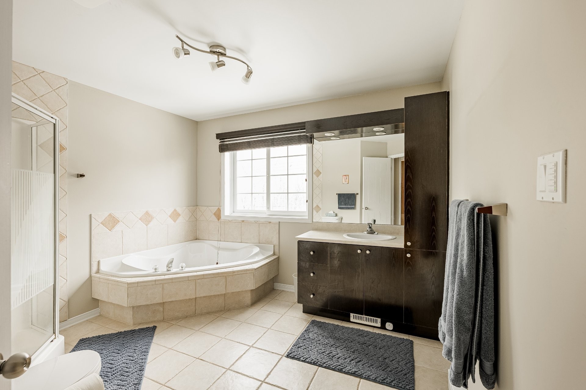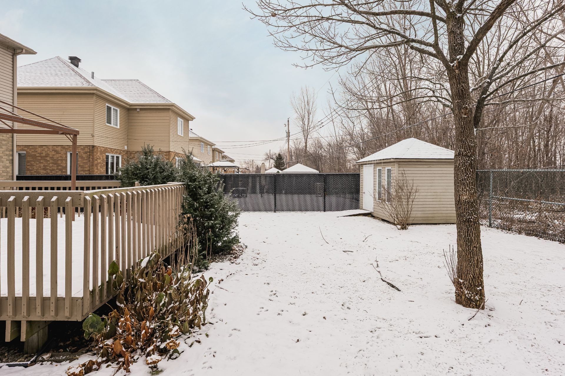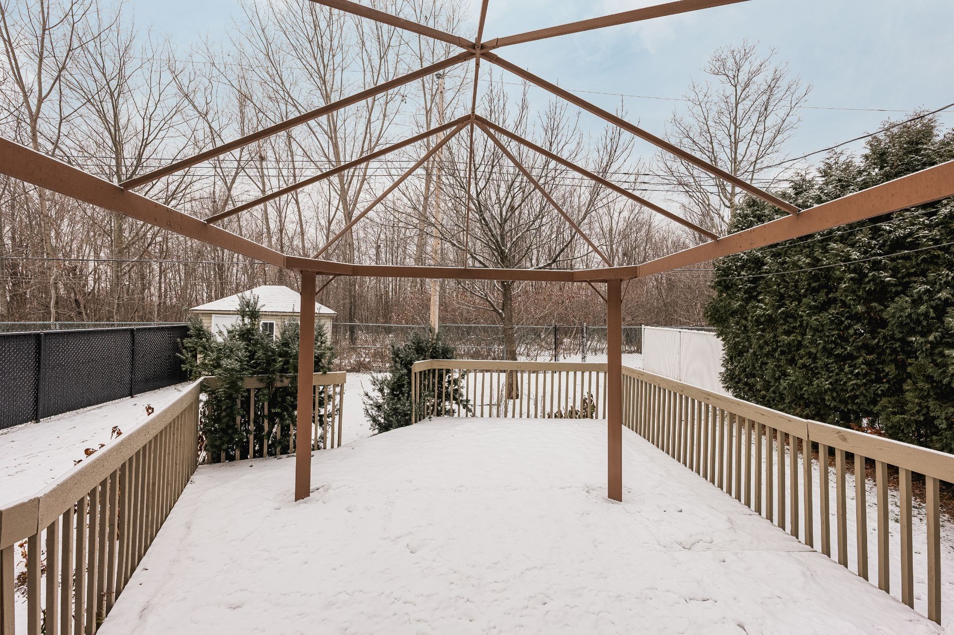 Gorgeous family home backing on to peaceful green space and woods, all with quick access to Kirkland REM line. No rear neighbours except thick wooded forest with walking and bicycle trails. Tucked away in the prestigious Pierrefonds West neighbourhood on quiet traffic free cul de sac. Meticulously maintained and updated. Hardwood floors through out. Fully developed basement with bedroom and its own bathroom.. 3 beds upstairs with spa like bathroom and separate upper floor laundry room. Don't wait - make this family home yours !! Contact your broker today
