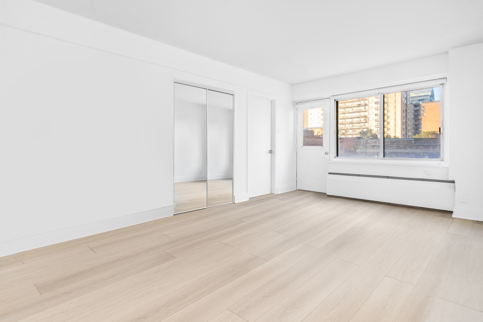 Amazing modern 1-bedroom unit right downtown! This spacious, fully renovated apartment offers the perfect blend of comfort and urban living. Bright open-concept layout with high ceilings, hardwood floors, and contemporary finishes throughout. The sleek kitchen features stainless steel appliances and ample storage. Enjoy a large bedroom, modern bathroom, and in-unit laundry. Located steps from schools, vibrant Sainte-Catherine Street, metro stations, shops, cafés, and all daily conveniences. Ideal for professionals or students seeking style and accessibility in the heart of the city.