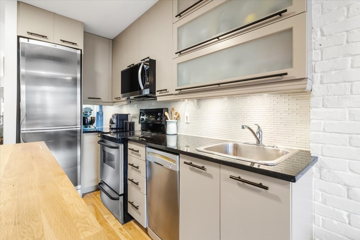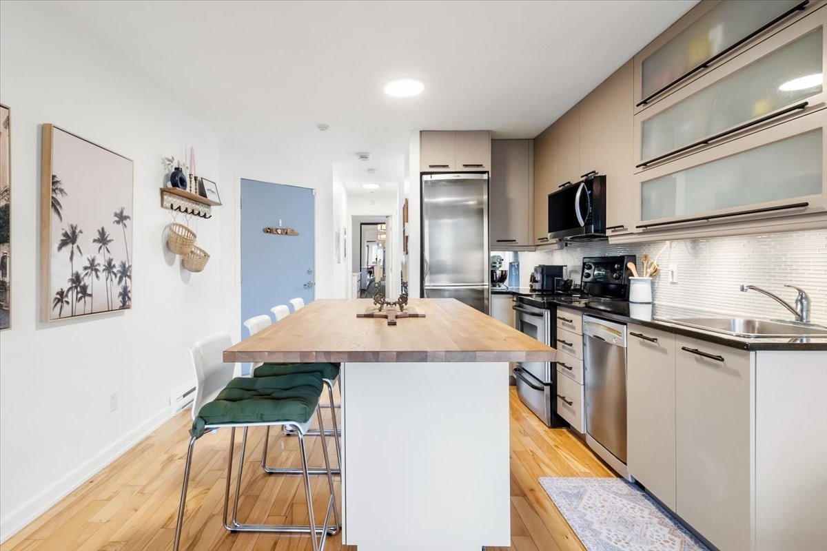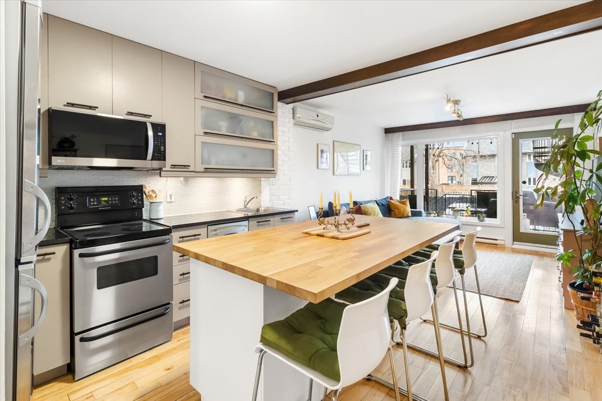 Stunning 2-Storey Condo in Pointe-Saint-Charles Discover this bright and stylish 2-bedroom, 2-bathroom condo in the heart of Pointe-Saint-Charles! Spread over two levels, this unit features wood flooring, a modern kitchen , air conditioning, and a private garage with direct access. Ideally located just steps from the Lachine Canal, bike paths, Griffintown, the REM, Atwater Market, and trendy cafés and restaurants. Enjoy the perfect blend of urban convenience and peaceful waterfront living. A rare find in a sought-after neighborhood--don't miss this opportunity!