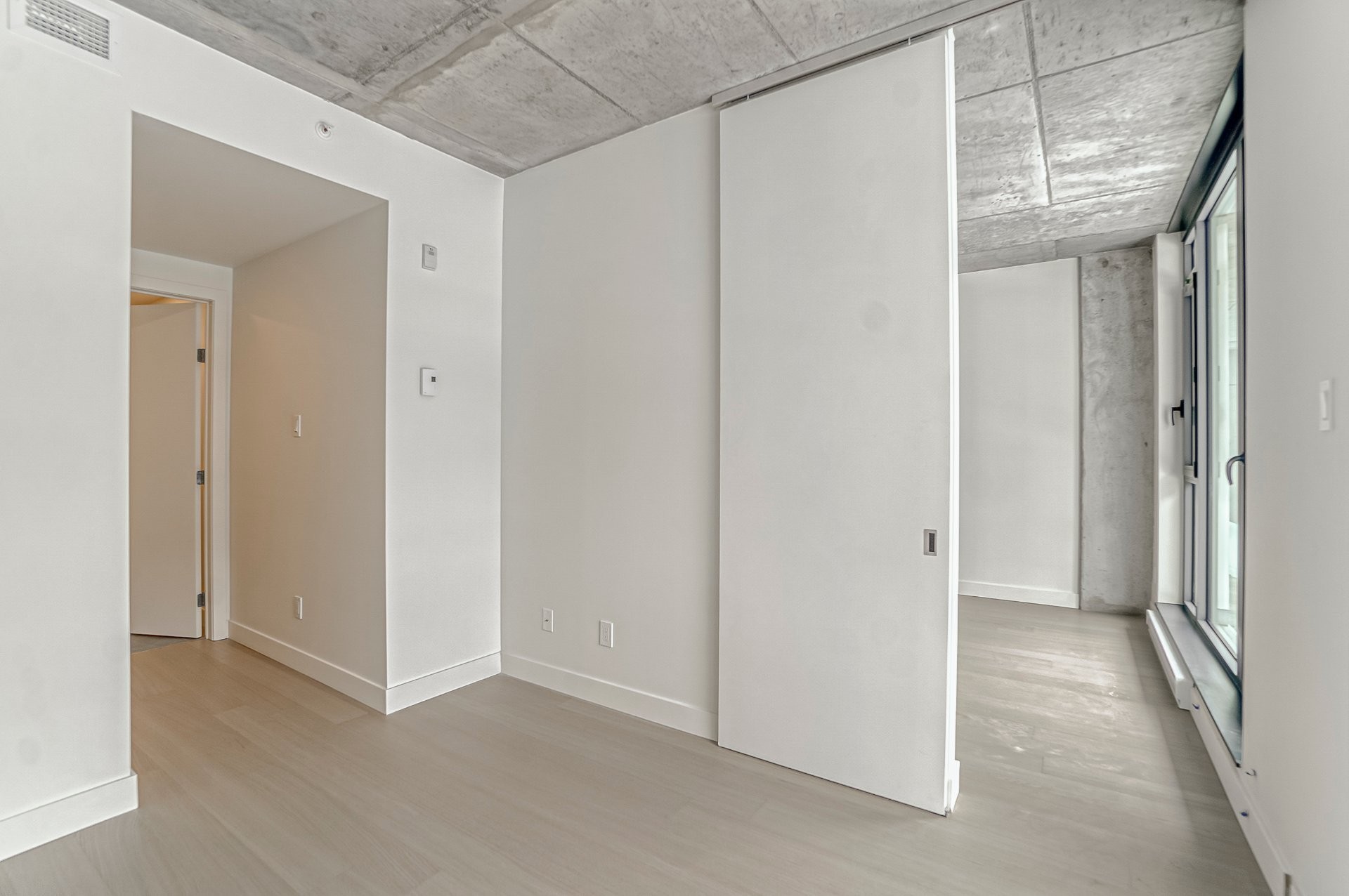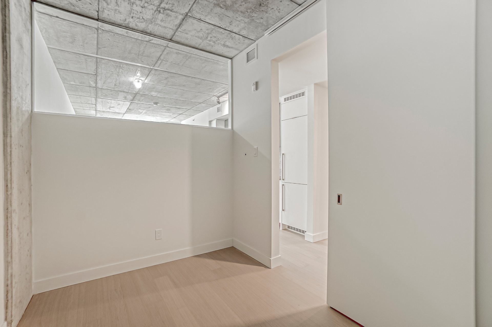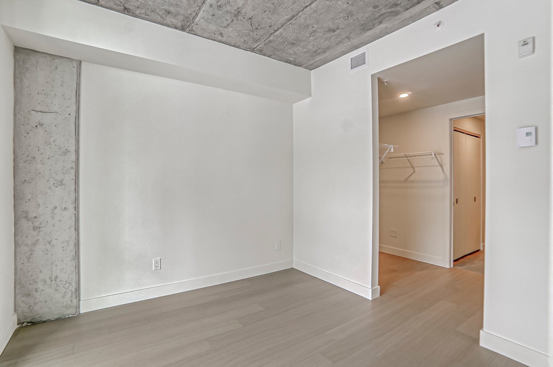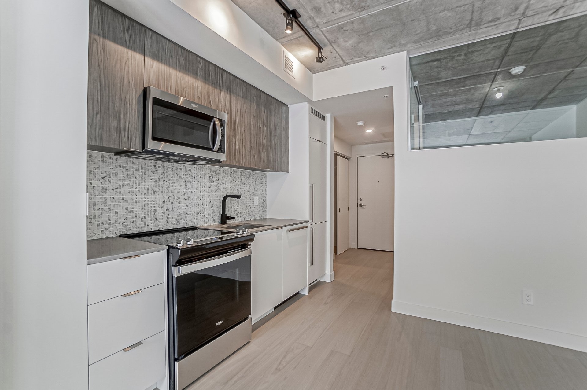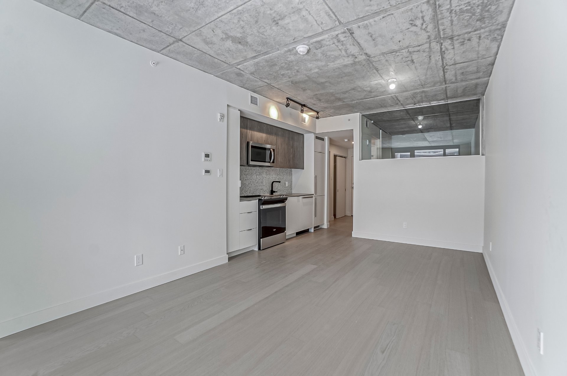 This modern condo, built in 2022, offers a thoughtfully designed one-bedroom plus den layout, combining comfort, functionality, and contemporary design. The open-concept living space is filled with natural light and enhanced by 9-foot concrete ceilings and engineered hardwood flooring.