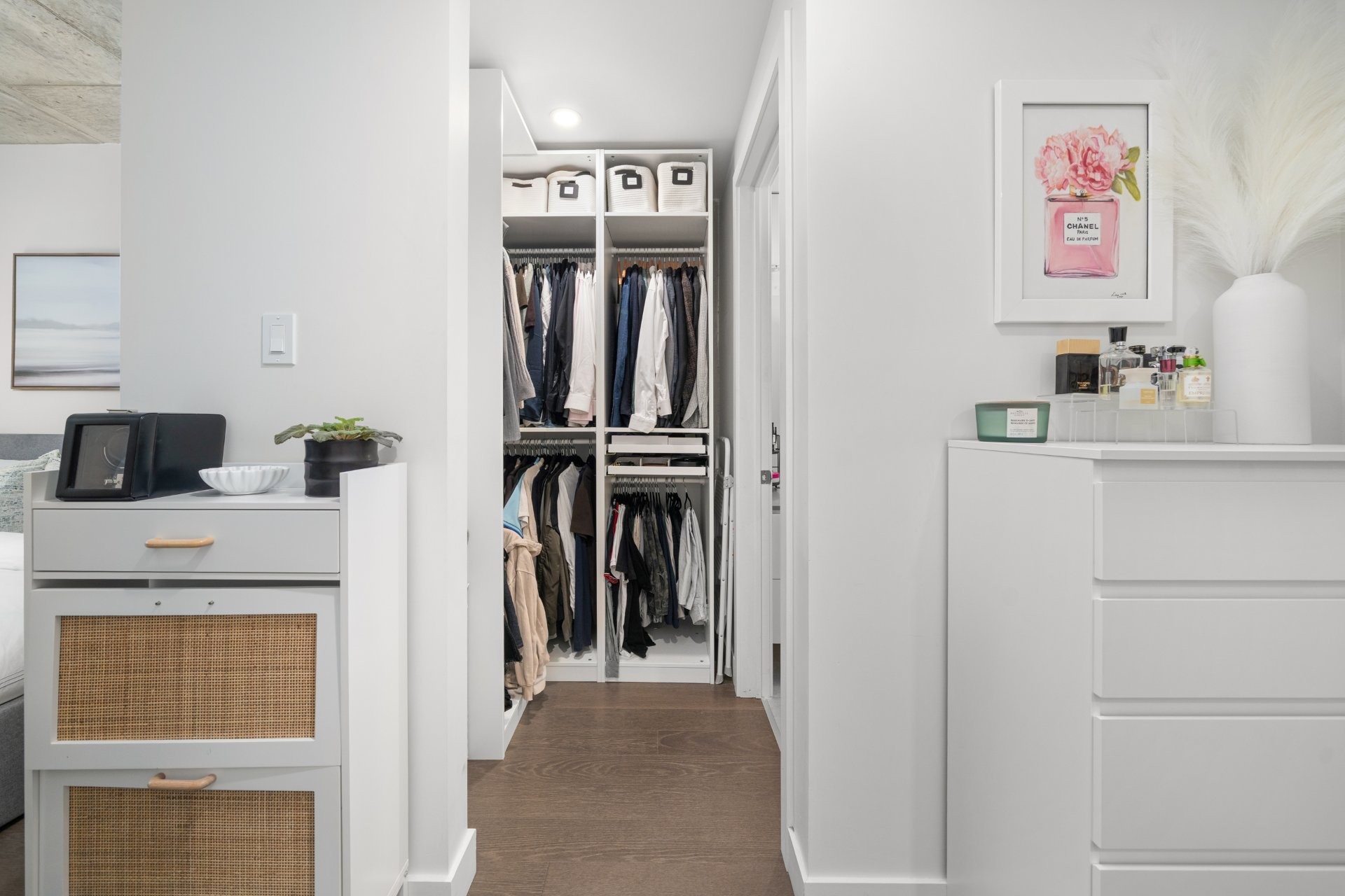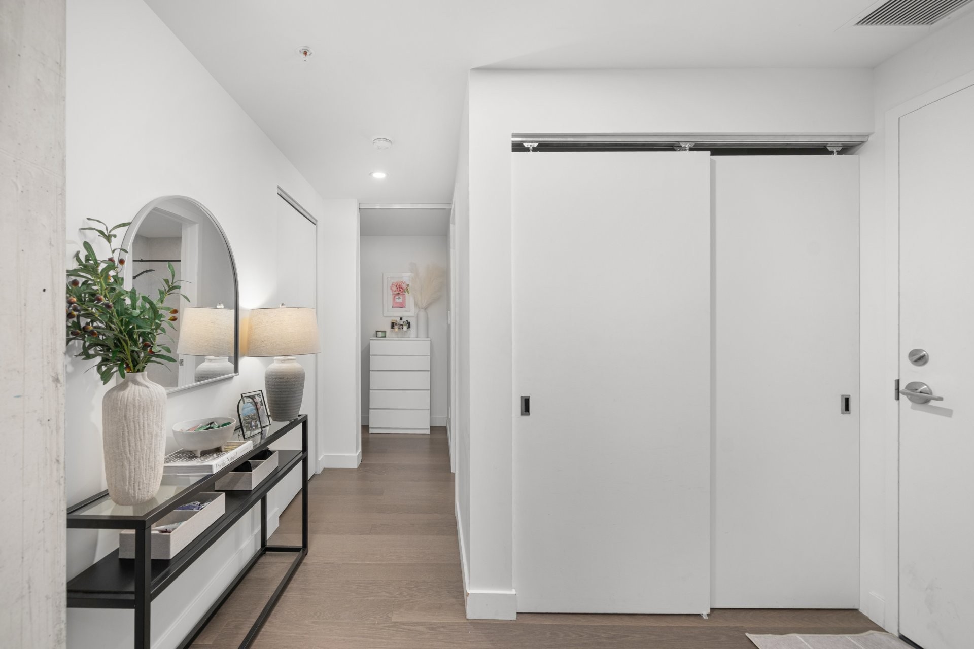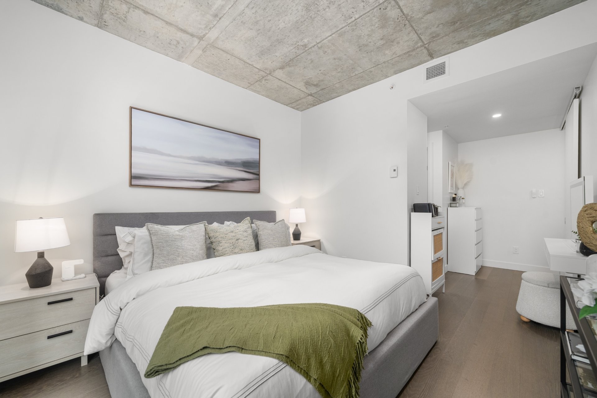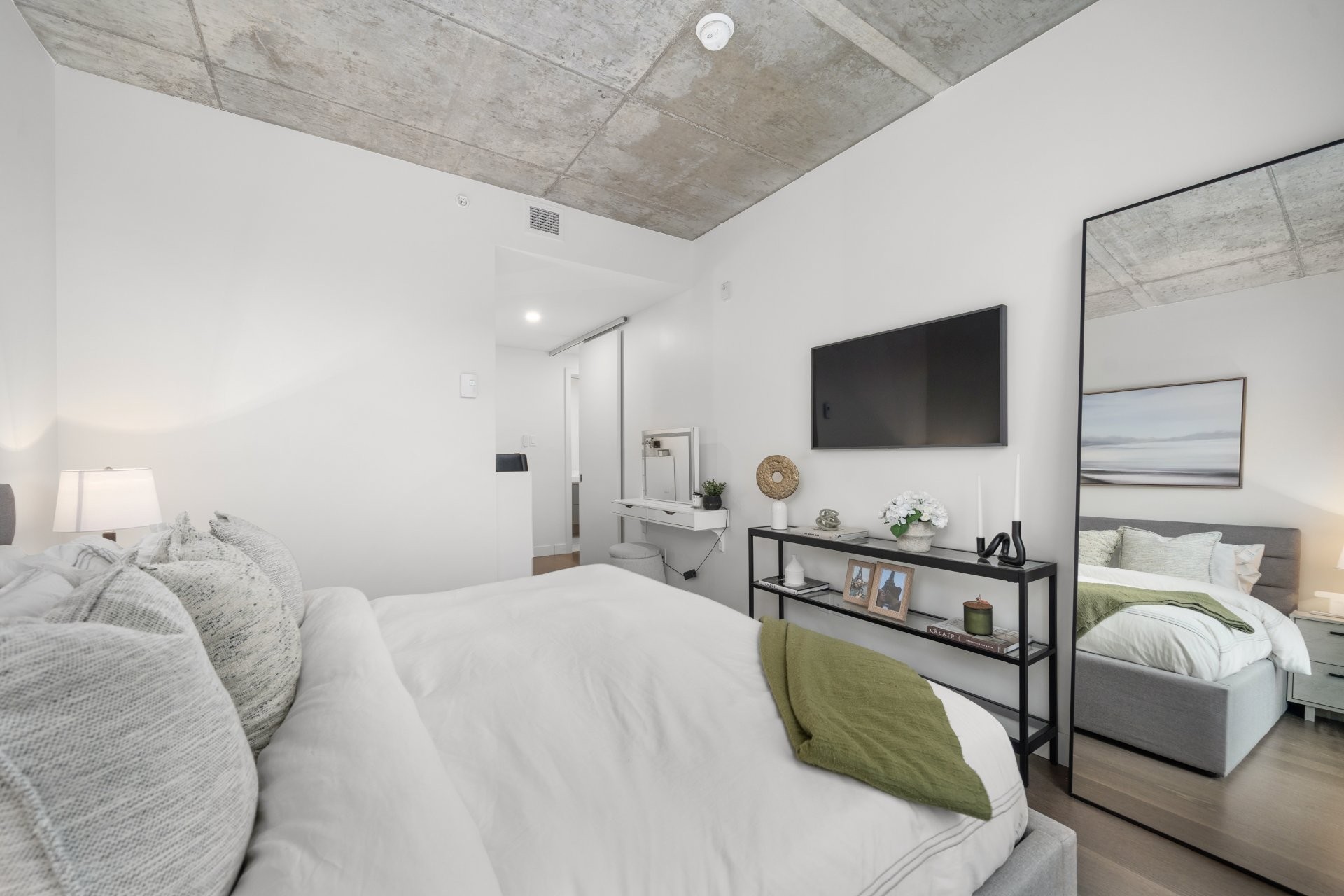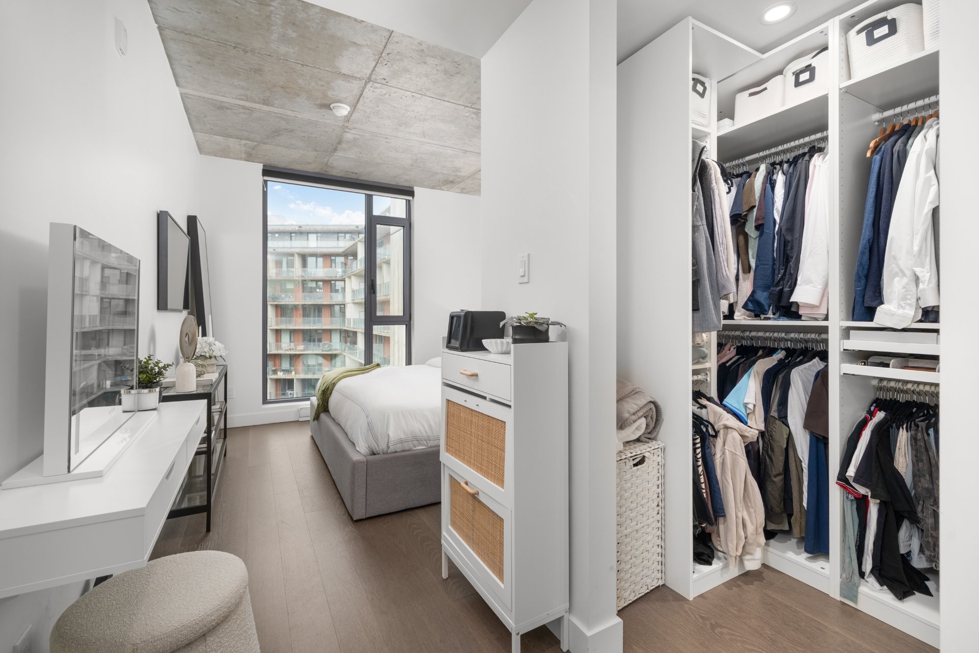 Welcome to Cité Midtown - This professionally designed condo features a spacious 2-bedroom, 2-bathroom layout, where every detail has been thoughtfully crafted to maximize comfort and functionality. Expansive floor-to-ceiling windows fill the living space with natural light, complemented by electric blinds. The primary bedroom includes a generous walk-in closet leading to an ensuite bathroom, while the second bedroom is currently configured as a stylish office and guest space. Enjoy central heating and air conditioning. The unit comes fully equipped with six appliances, indoor parking, and a storage locker.