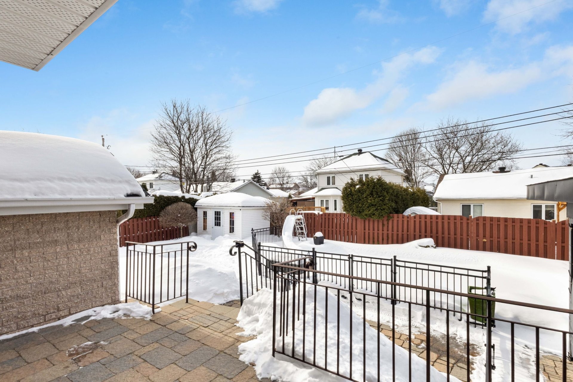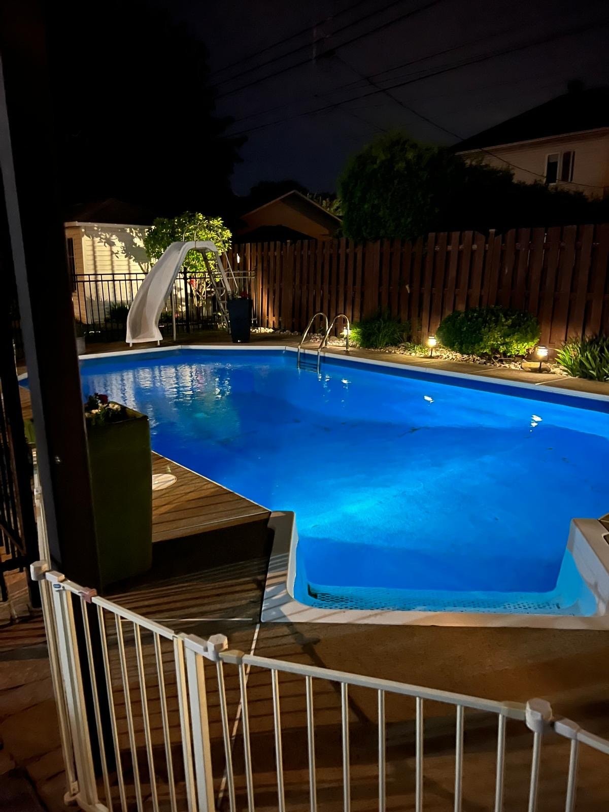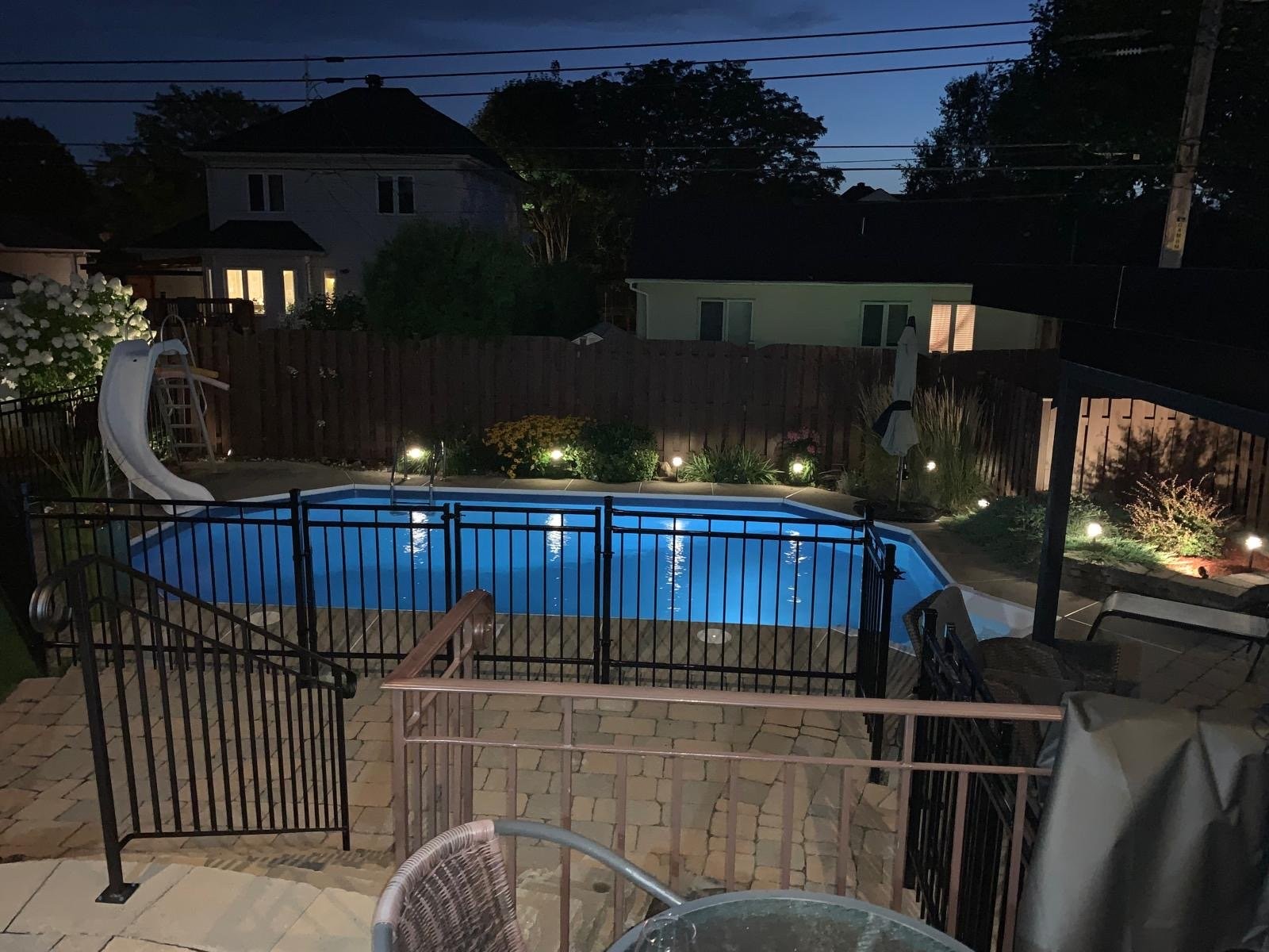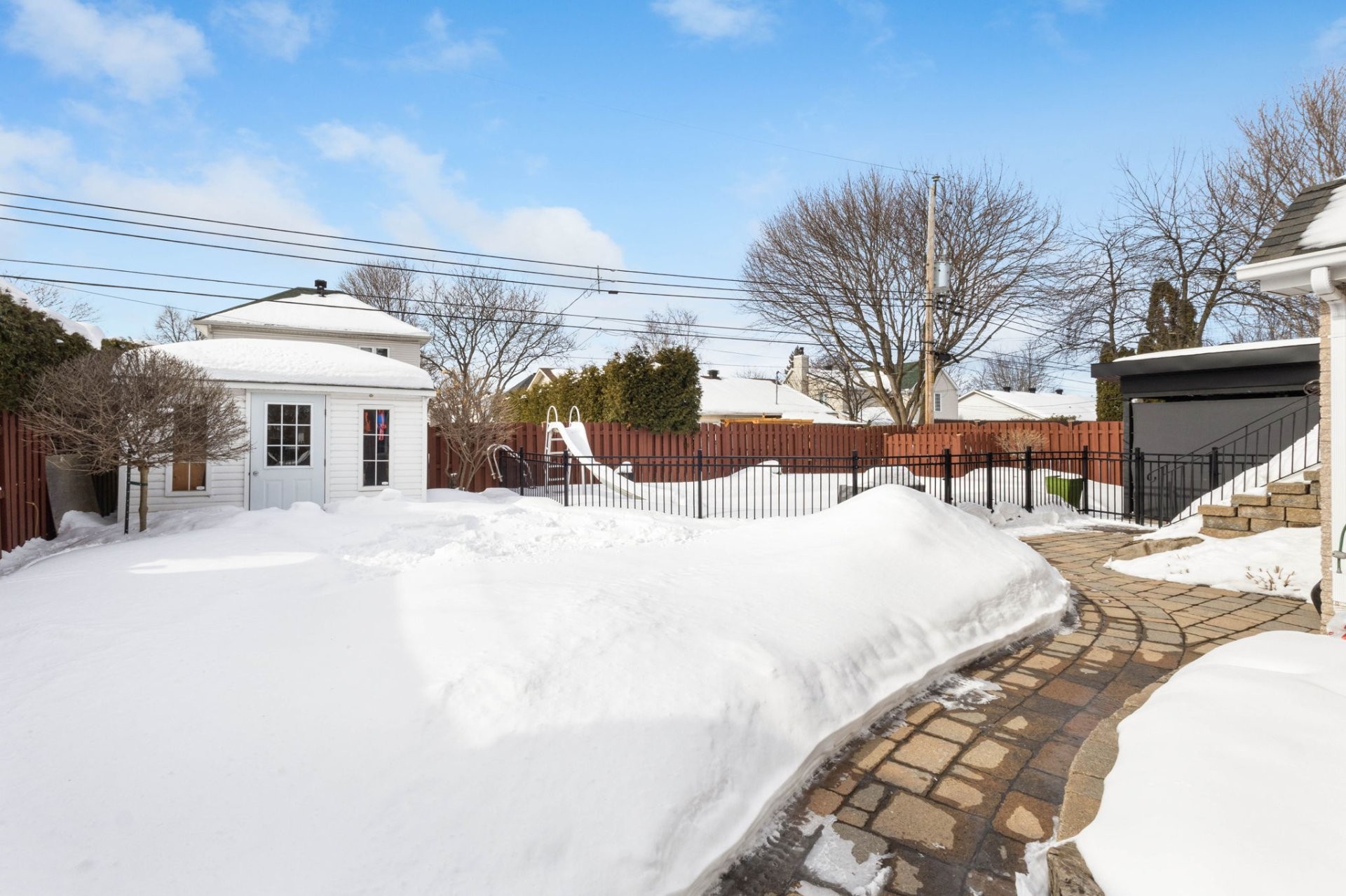 Outside, the meticulously landscaped, fully fenced backyard benefits from a south-west facing orientation, allowing for abundant sun throughout the day. The in-ground saltwater pool with slide, hot tub, gazebo, and storage cabana creates a true outdoor retreat -- perfect for entertaining or unwinding on warm summer days.