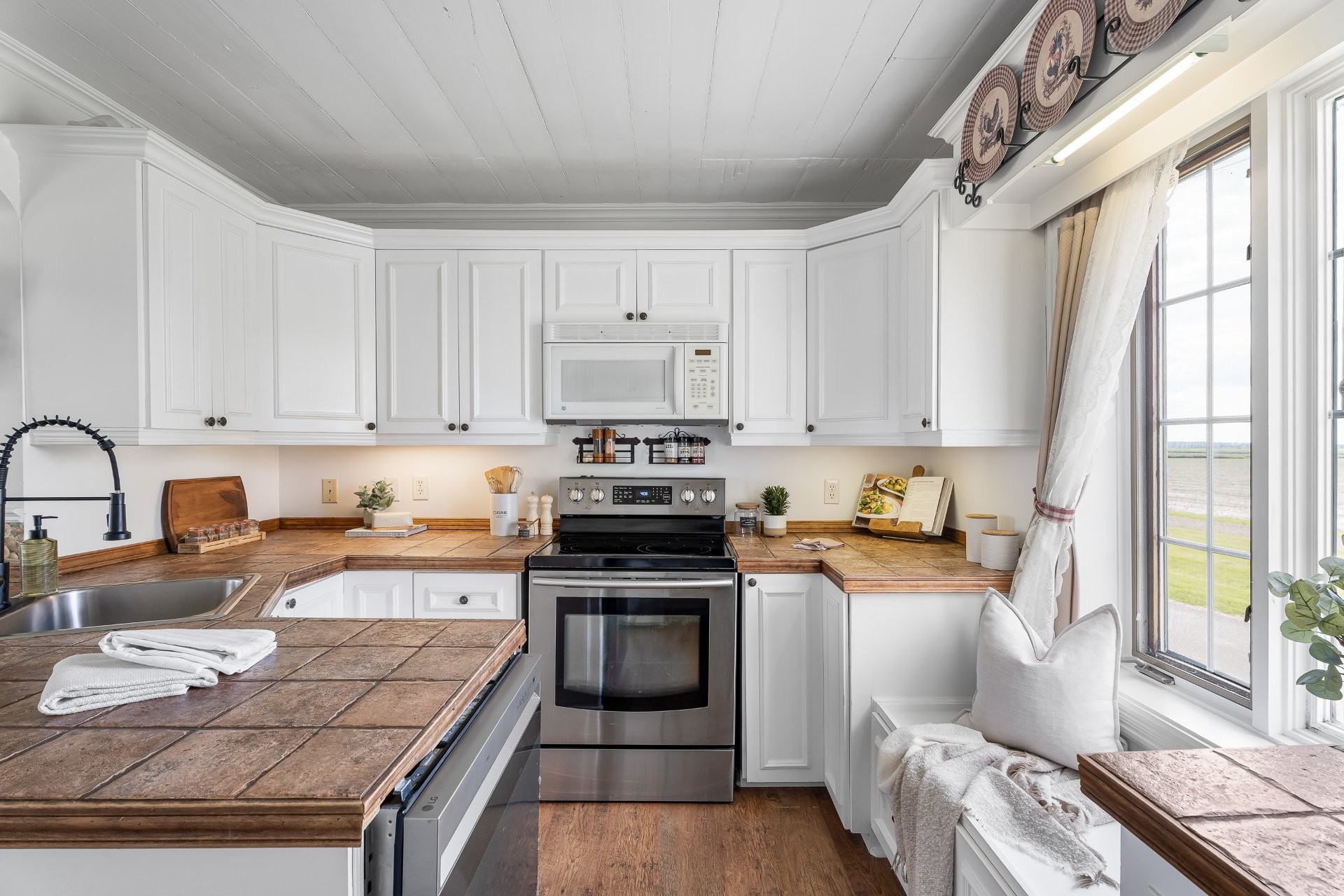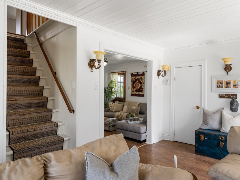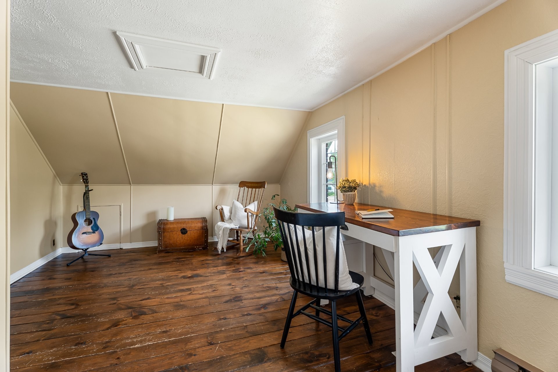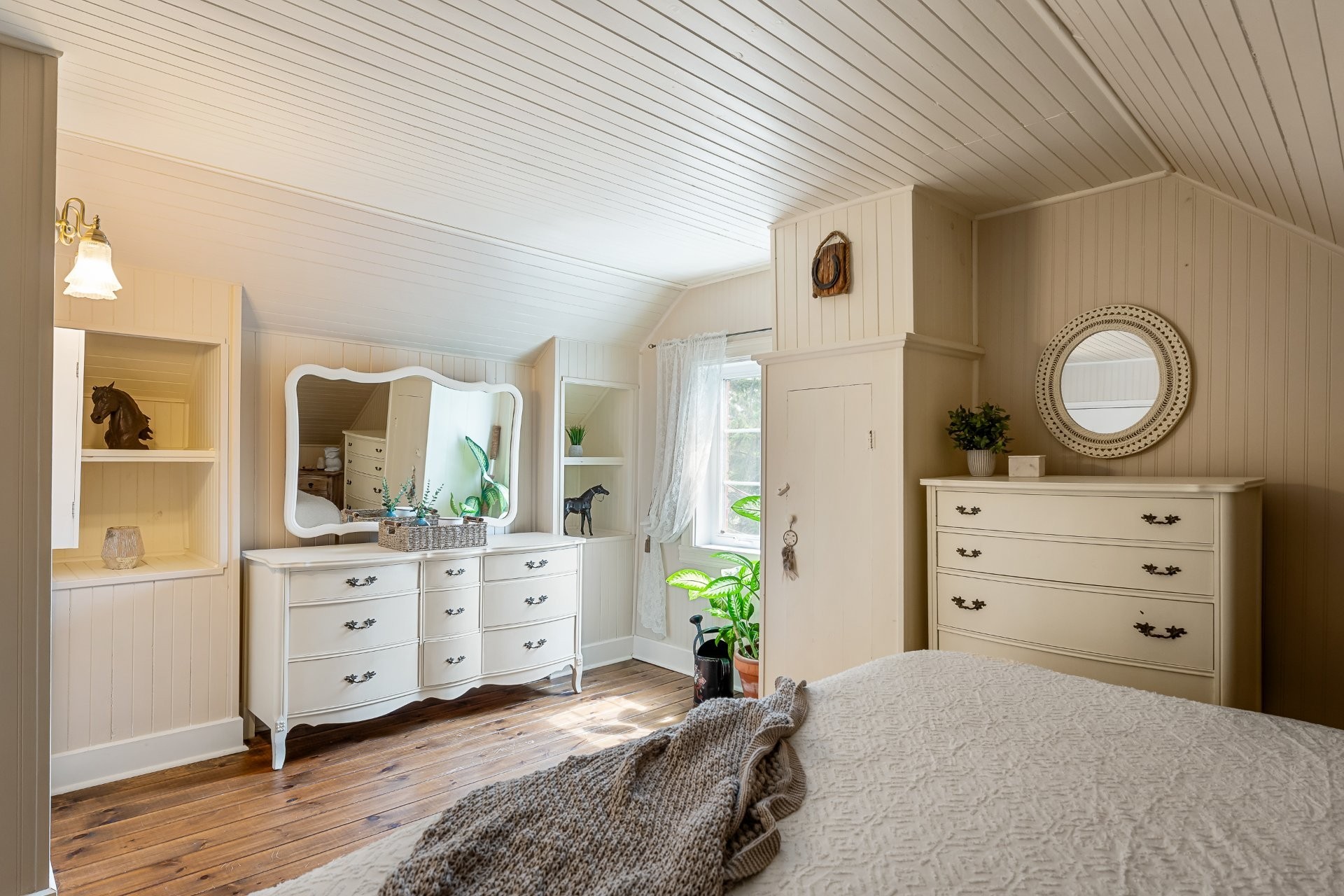 The cozy ancestral farmhouse offers three bedrooms and two full bathrooms, providing a warm and practical living space. A large workshop garage with two garage doors and a second-floor loft offers ample room for storage, equipment, or conversion to suit various needs.