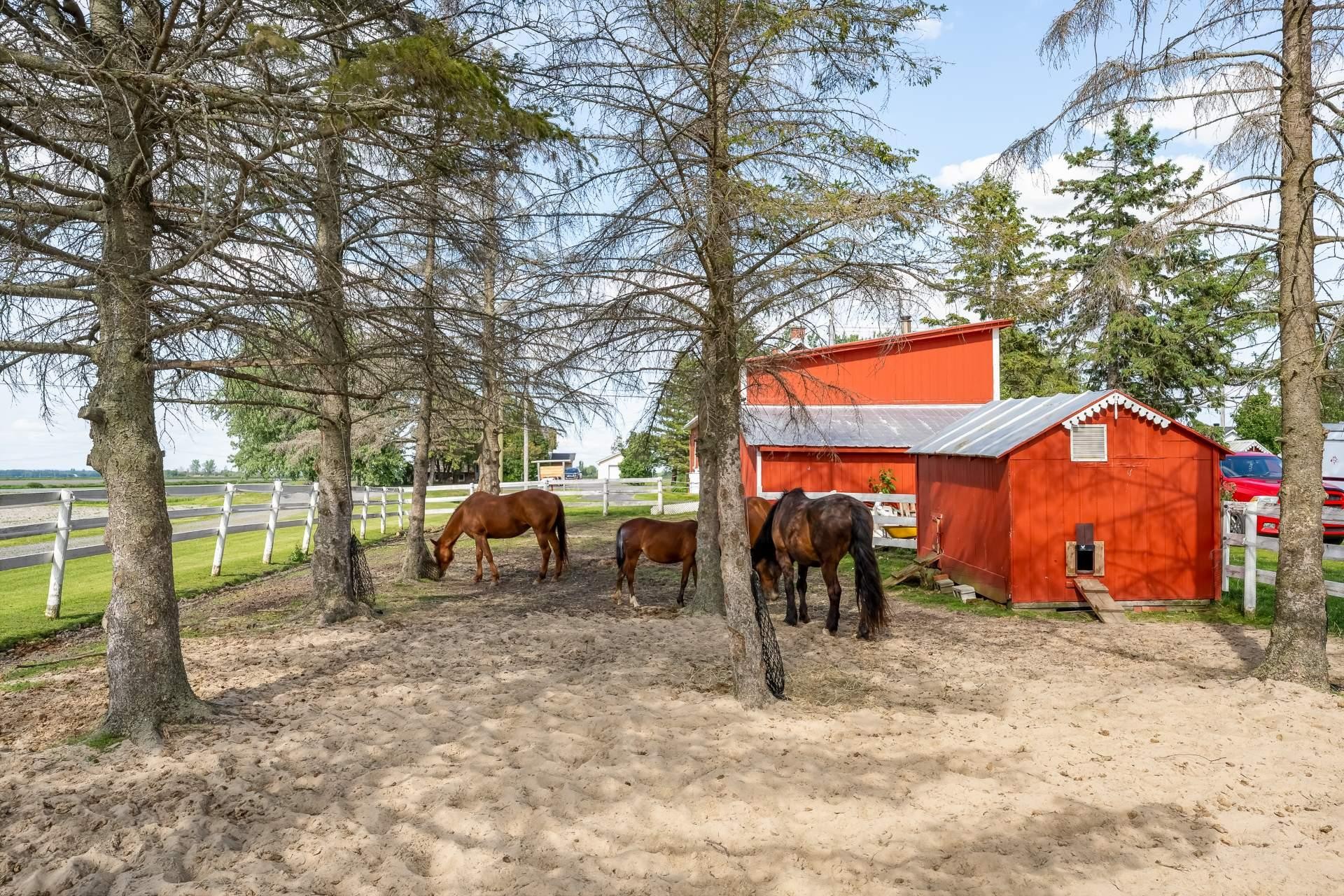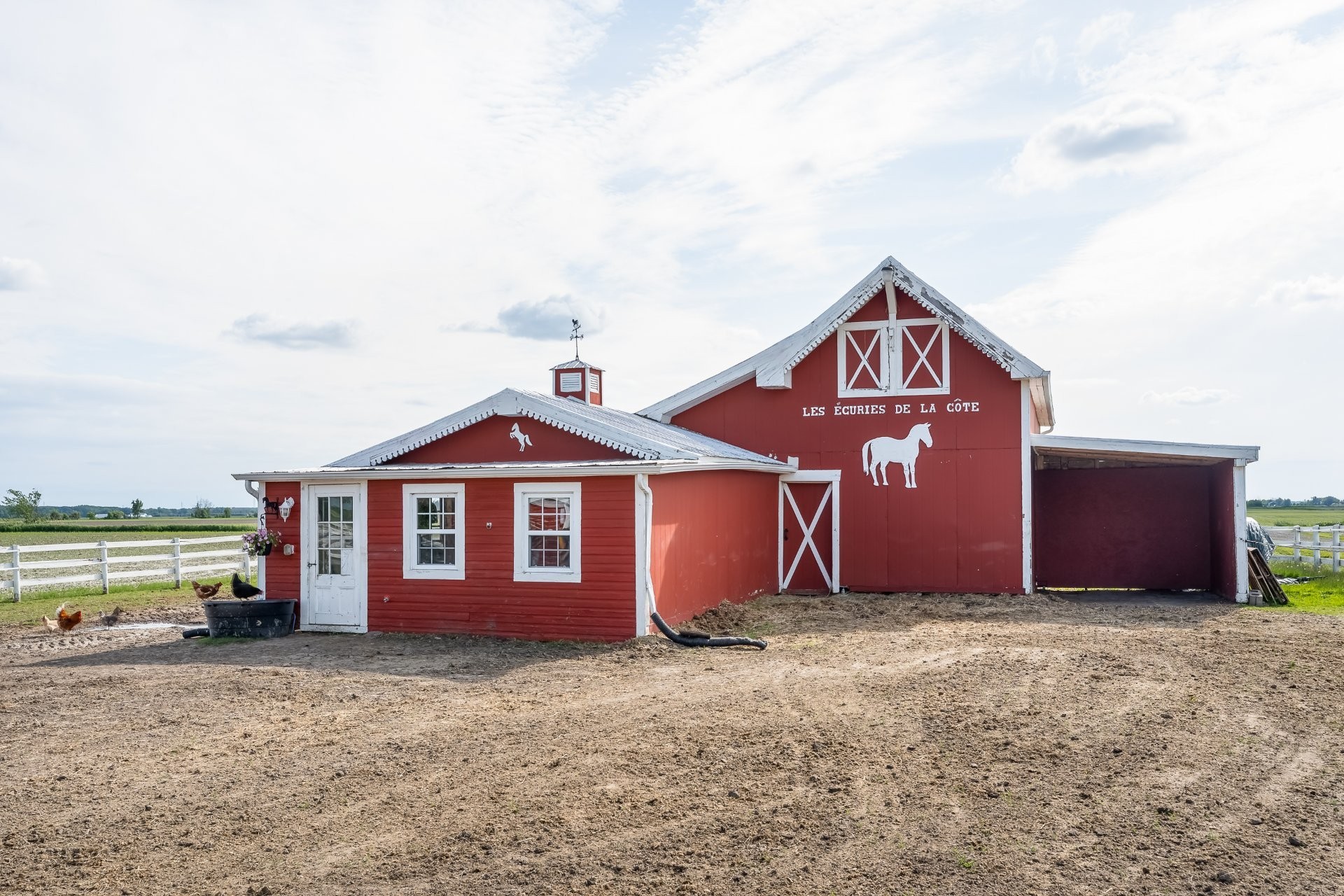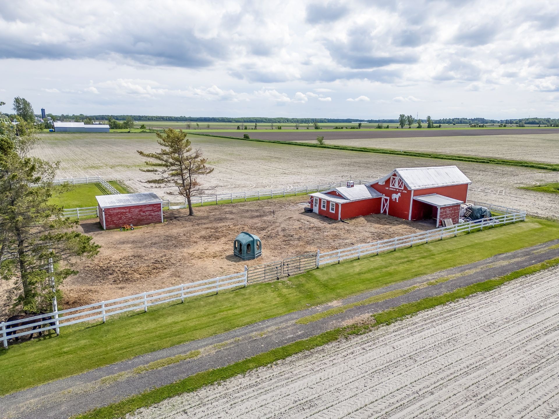 Unique opportunity to own an affordable hobby farm in Coteau-du-Lac, just a 5-minute drive from the Les Forestiers equestrian trails and ideally located near the trailer parking and access point. Situated on just over 50,000 square feet of land, this charming property is perfect for horse enthusiasts or anyone seeking a peaceful rural lifestyle with ready-to-use infrastructure.