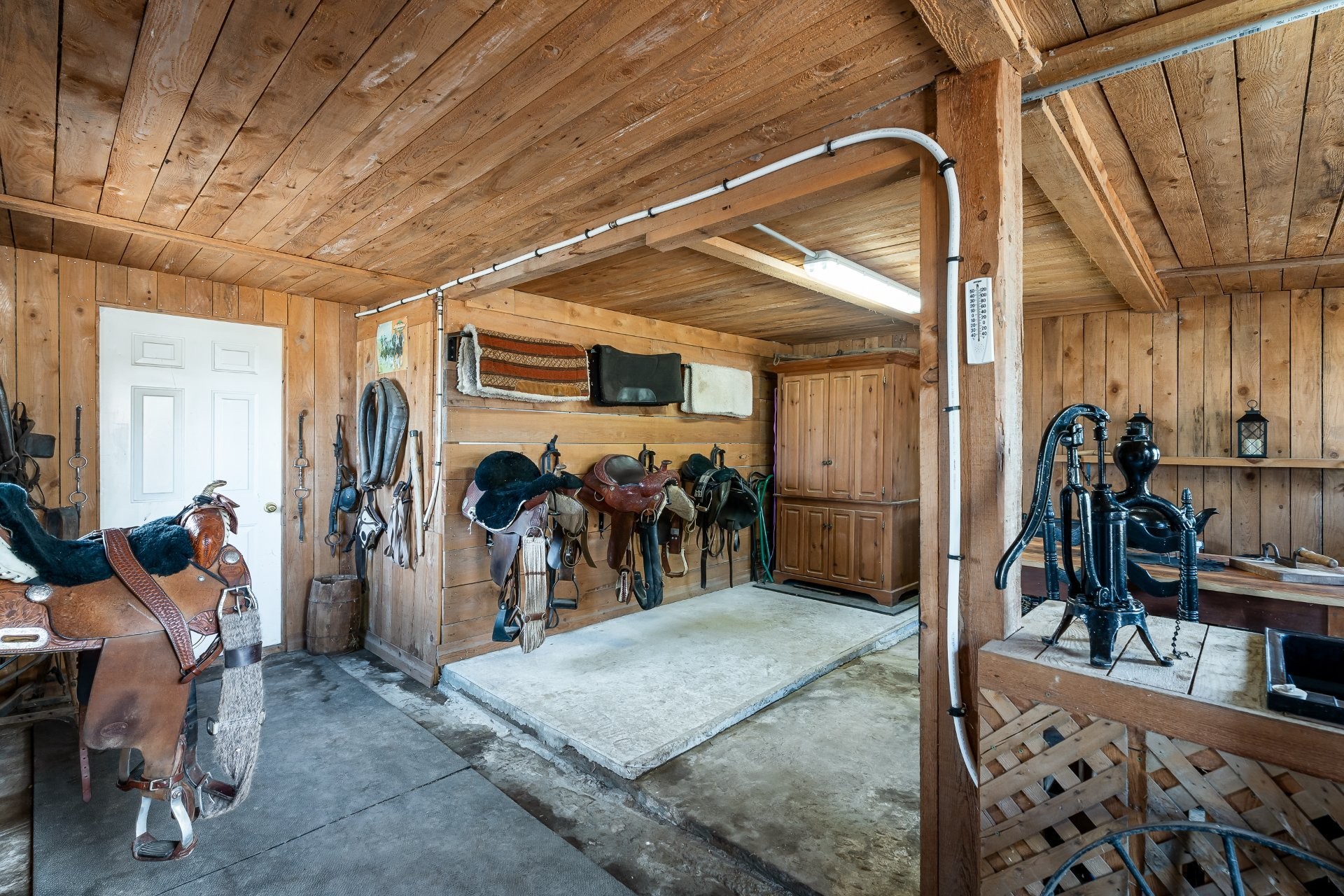 Hay remaining at the time of the sale, saddle racks, electric fencing, access gates, any remaining shavings at the time of the sale, barn floor mats, shelving in workshop, bench in workshop, dishwasher, light fixtures, 2 wall-mounted heat-pumps
