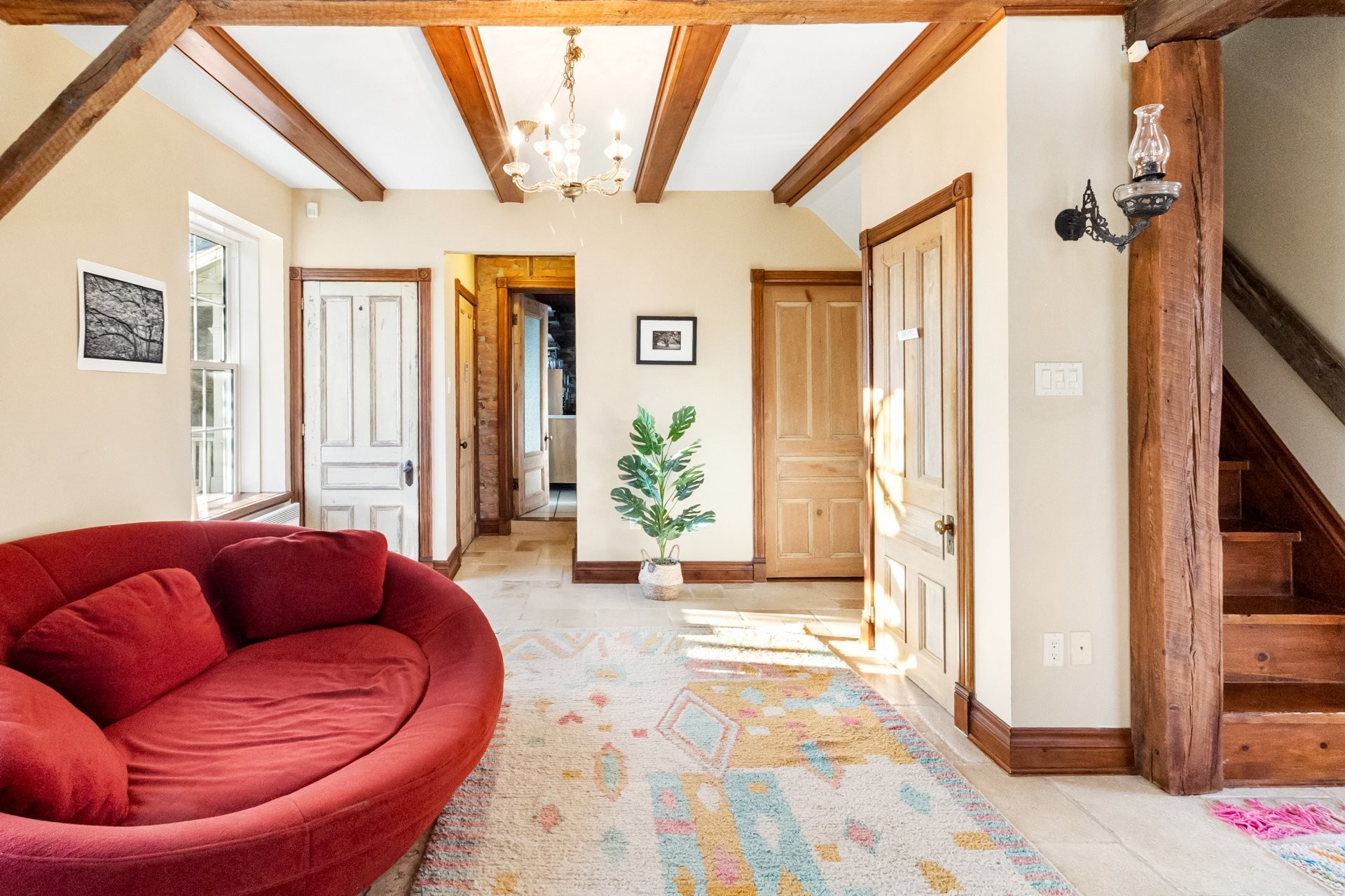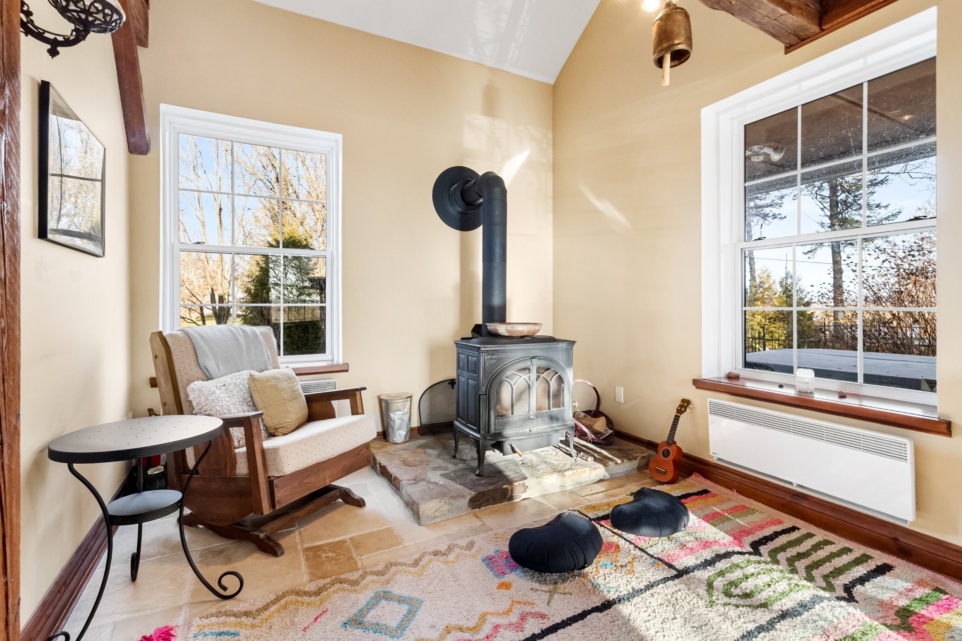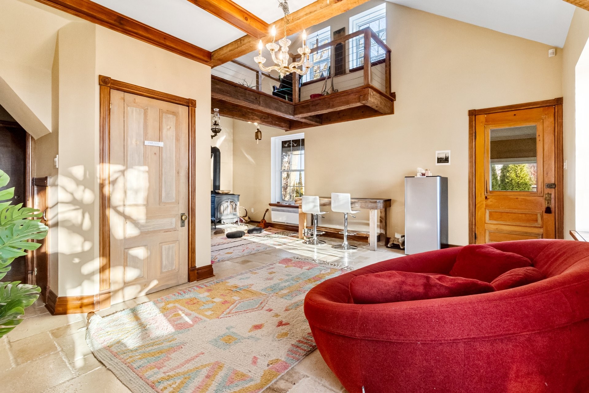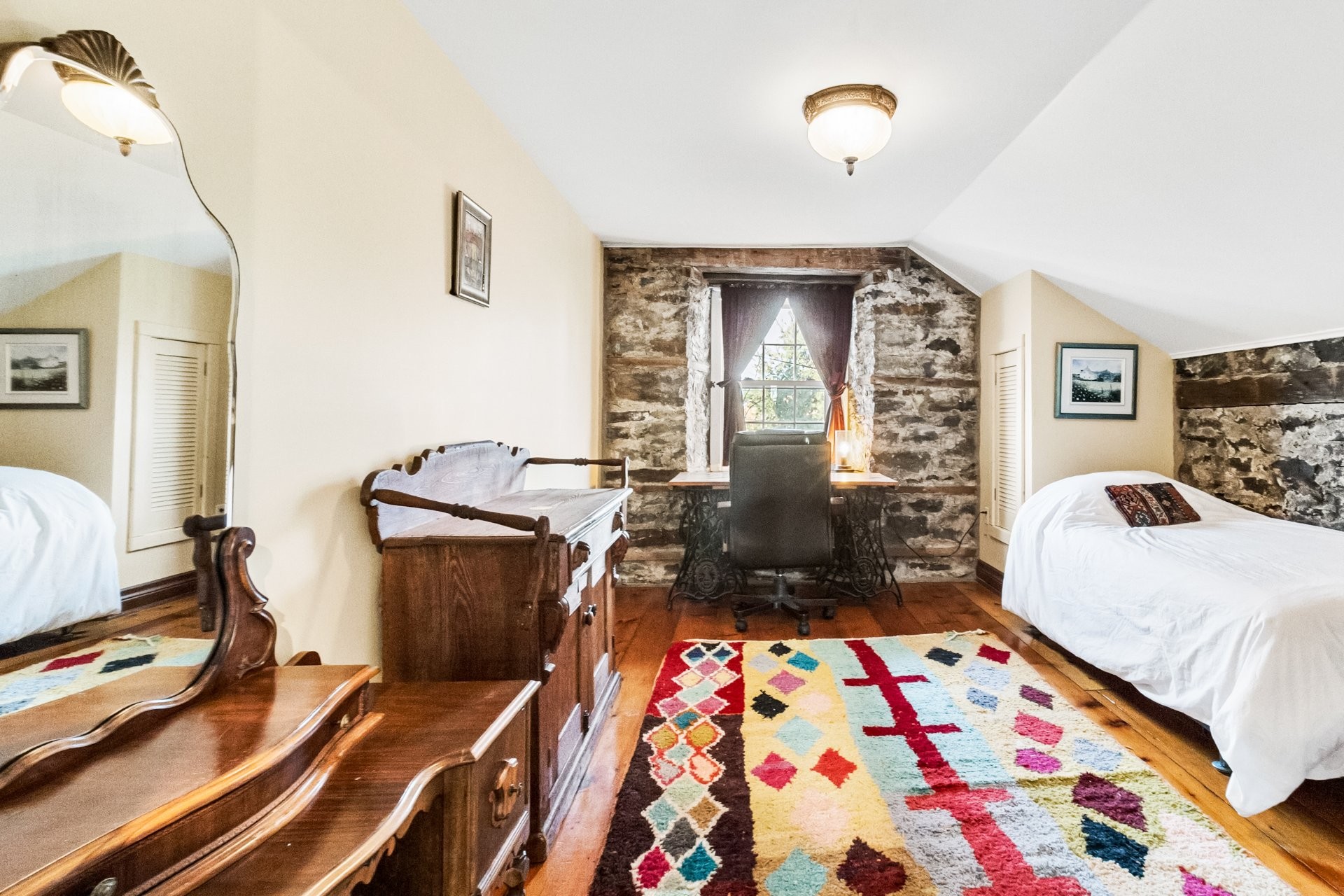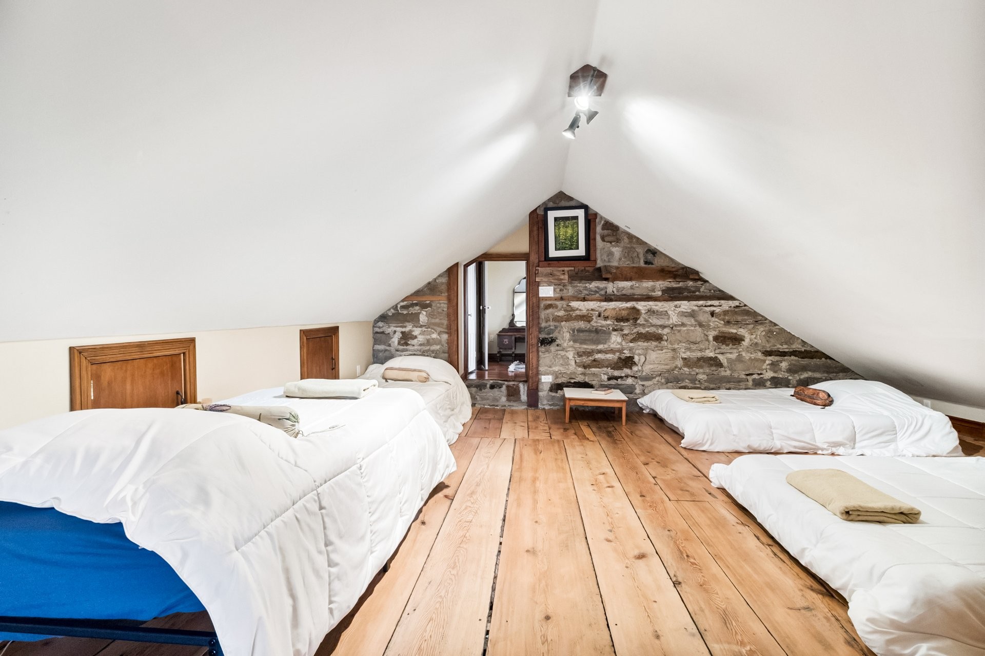 Set on a picturesque country lot in Hinchinbrooke, this exceptional stone residence offers a rare opportunity to combine heritage charm with established short-term rental and retreat use. Rich in character, the home features exposed stone walls, hand-hewn beams, wide plank wood floors, and multiple fireplaces, creating a warm and authentic atmosphere throughout.