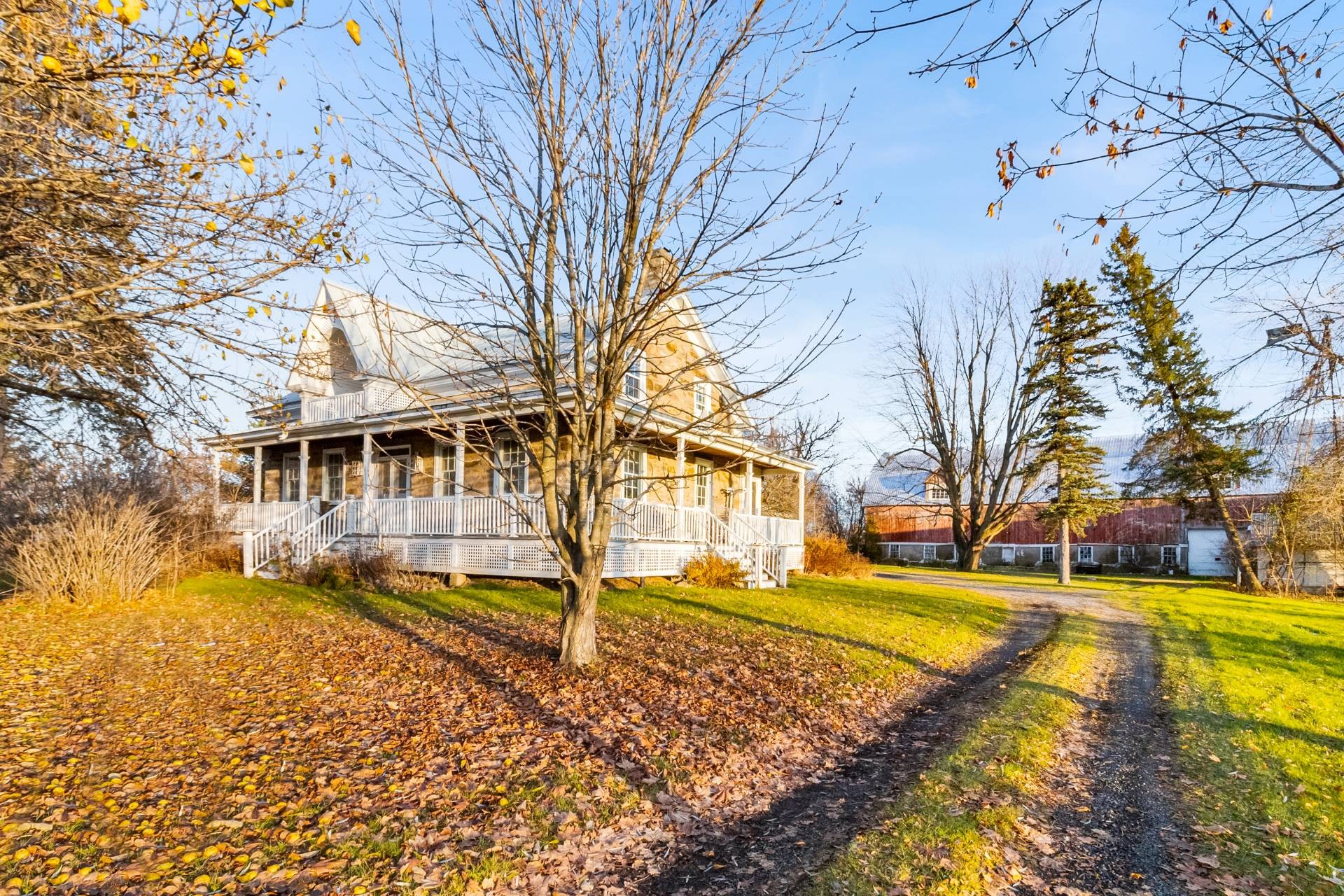 Distinctive character property offering an established short-term rental and retreat setup in a serene countryside setting. Featuring a commercial kitchen, five bedrooms, and expansive common areas designed for hosting, gathering, and relaxation. The home blends historic charm with functional spaces filled with natural light and views of the surrounding landscape. A spacious barn adds versatility and long-term potential, ideal for storage, creative use, workshops, or future enhancement projects. A unique opportunity combining character, scale, and lifestyle potential in the Haut-Saint-Laurent.