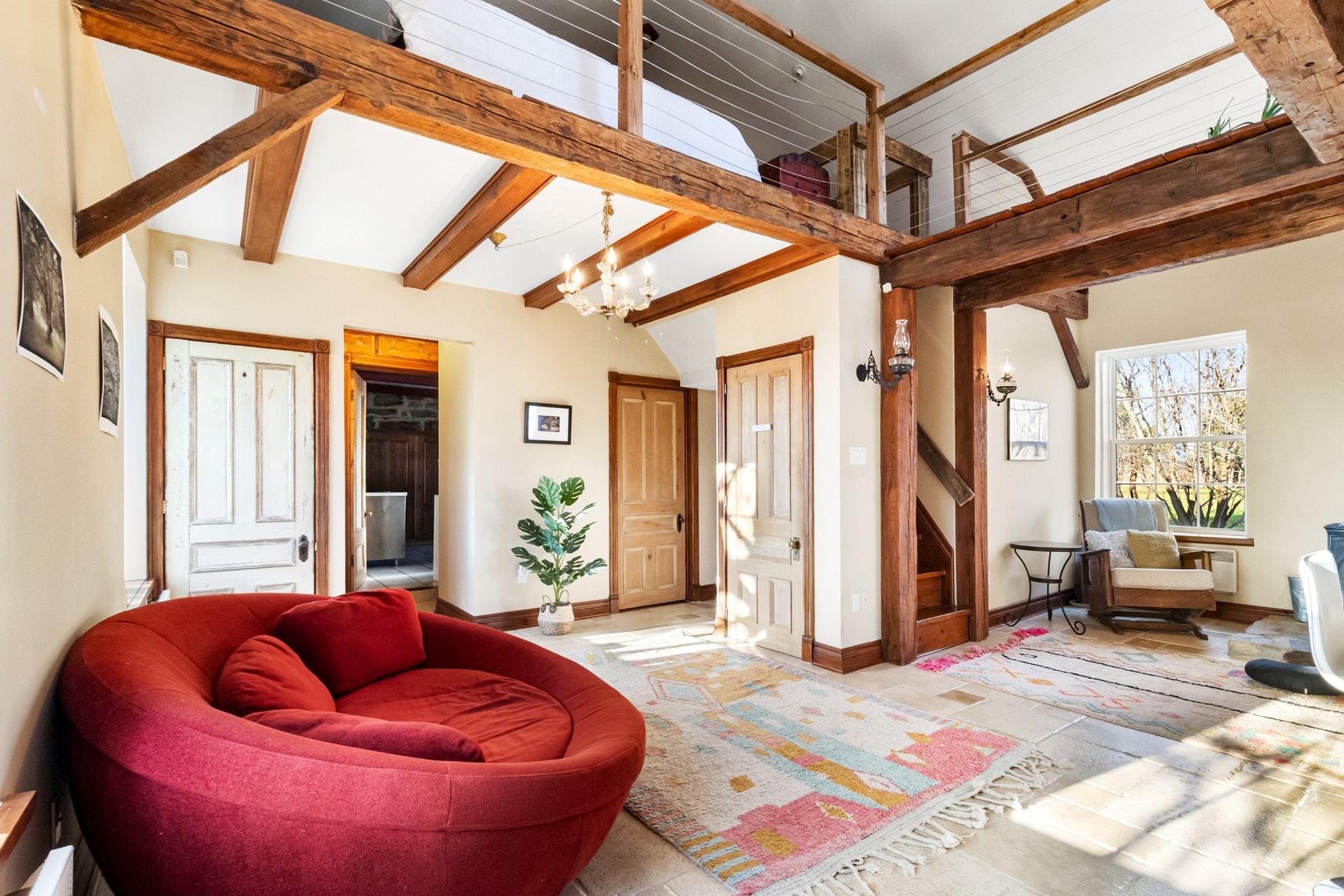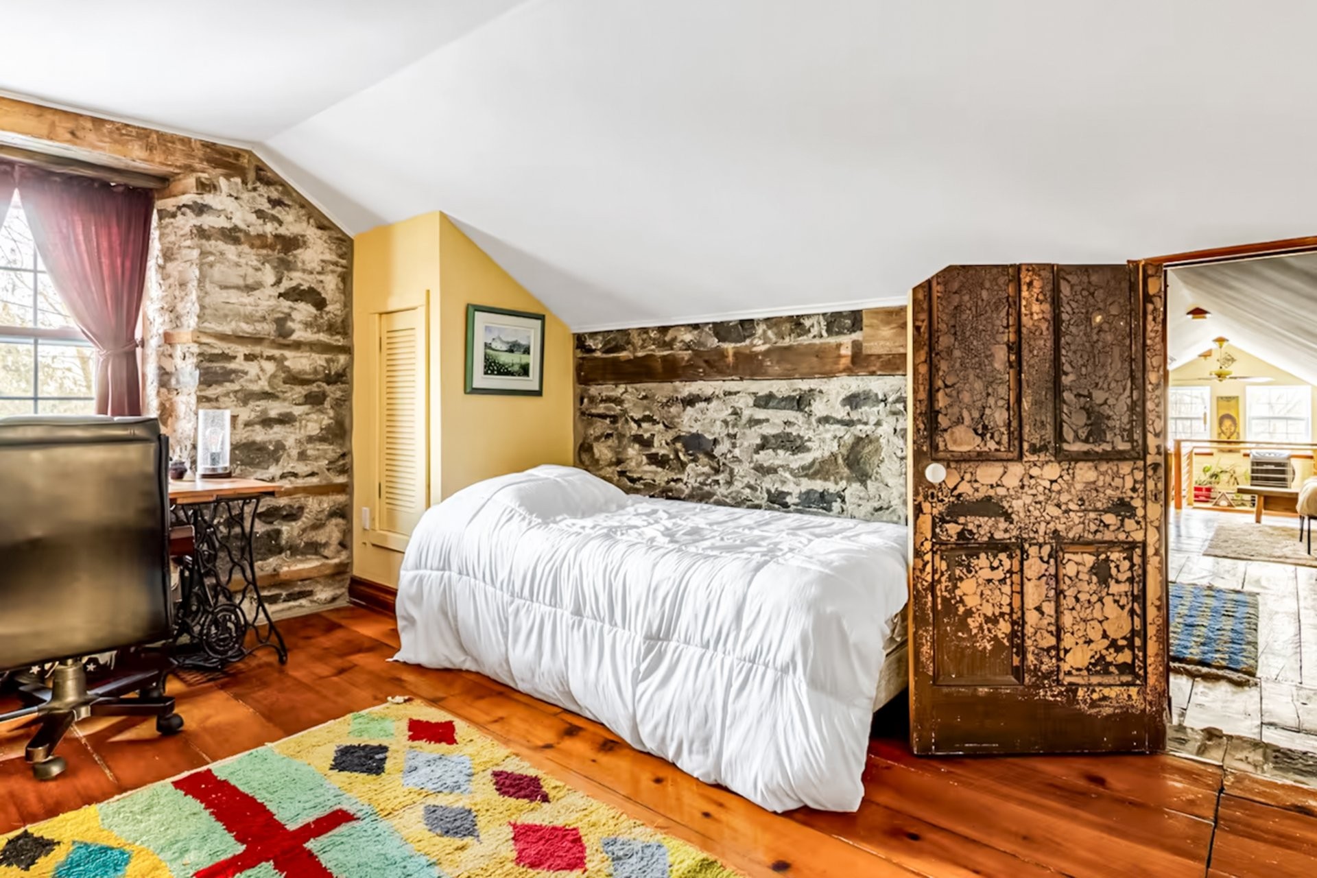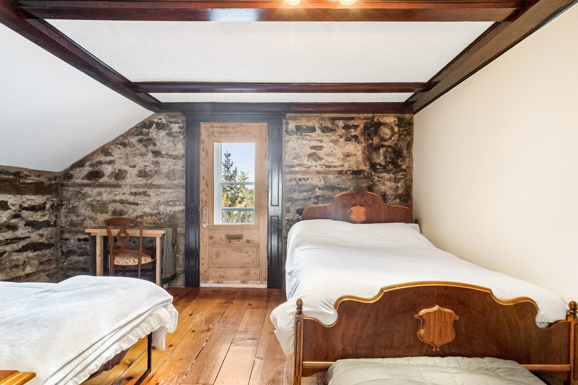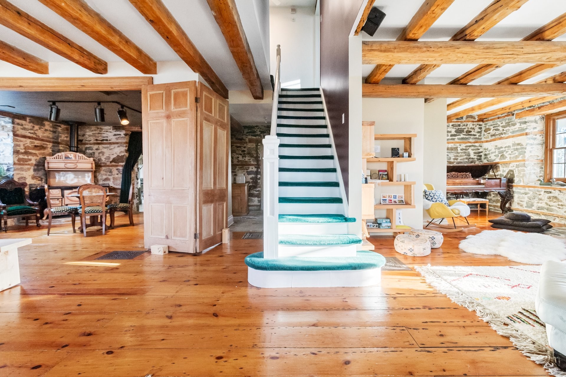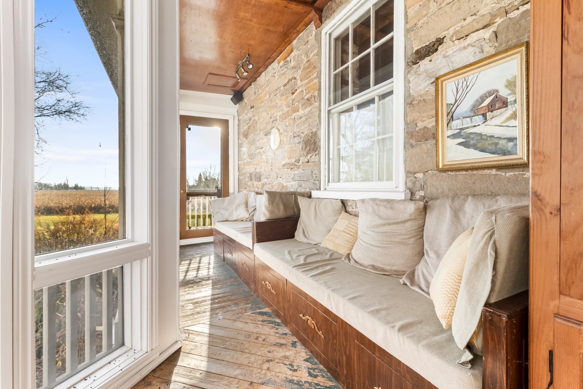 Set on a picturesque country lot in Hinchinbrooke, this exceptional stone residence offers a rare opportunity to combine heritage charm with established short-term rental and retreat use. Rich in character, the home features exposed stone walls, hand-hewn beams, wide plank wood floors, and multiple fireplaces, creating a warm and authentic atmosphere throughout.