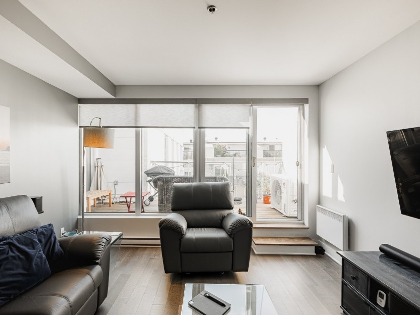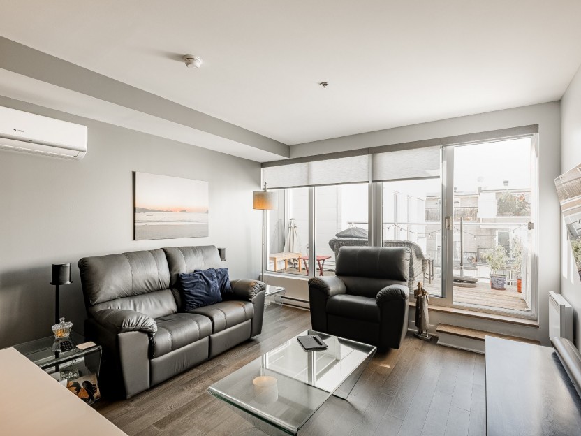 Condo of nearly 1 500 ft2 offering 3 real bedrooms and 2 full bathrooms, completely renovated in 2012. Exceptional brightness, hardwood floors, kitchen with quartz countertops and well-proportioned living spaces. Two private terraces, including an impressive roof terrace of more than 600 sq. ft, without vis-à-vis, with views of Mount Royal and the city center. Currently rented, this versatile property is ideal for a family, telecommuting or an investor looking for a quality asset in one of the most coveted areas of Montreal.