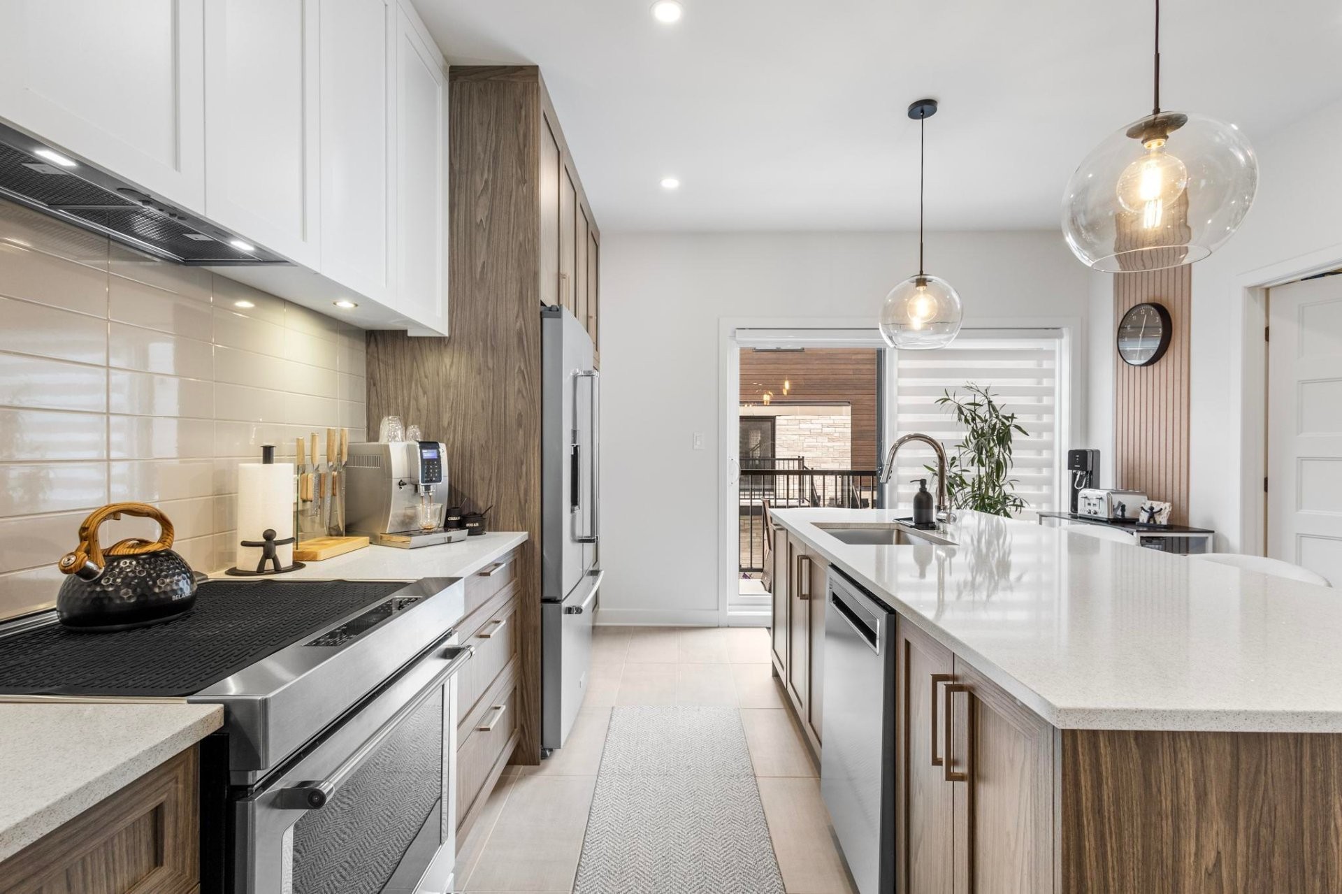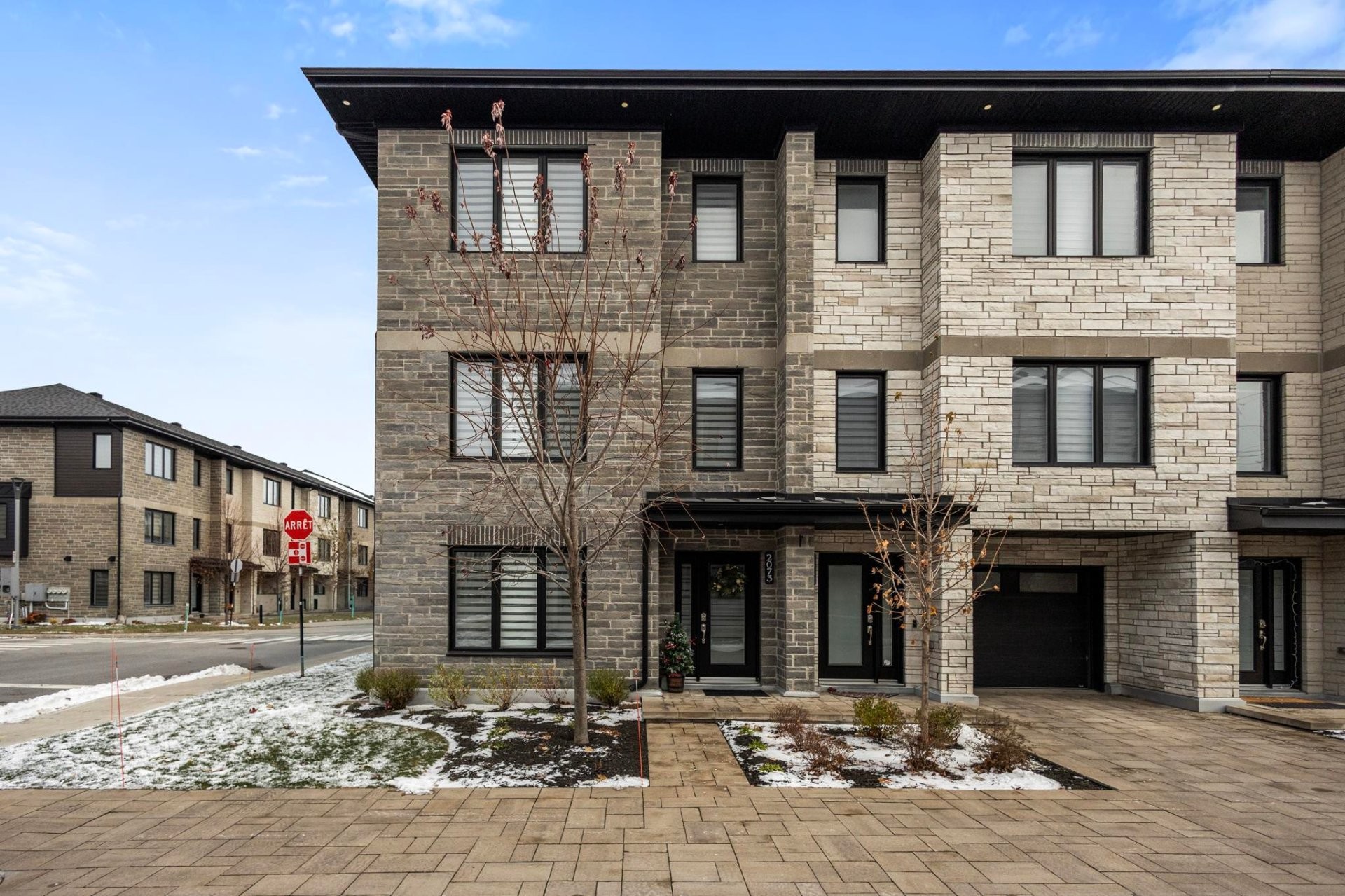 Beautiful corner-unit townhouse (2021) maintained with exceptional care. Quality materials, quartz countertops, soft-close cabinets, heated floors (kitchen, bathrooms, powder room), built-in closet organizers and -a cute touch - a little built-in cat house under the stairs! Fully equipped backyard: spa, terrace, L-shaped sofa, retractable awning, metal storage unit, BBQ, plus a cozy coffee nook on the upper balcony with private stairs. Immaculate double garage with epoxy floor, wall racks, and an outlet ready for an EV charging station. A turnkey, bright and inviting property offering superior comfort and rare inclusions. A must-see!