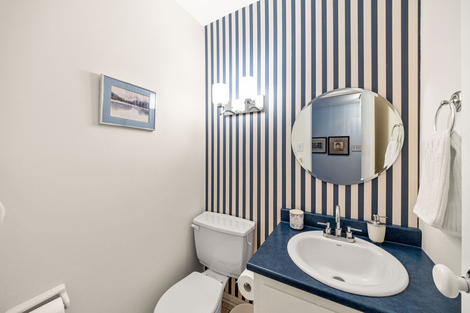 The main floor offers a bright, open-concept living and dining area, perfect for entertaining. Patio doors lead to a private balcony with the added convenience of an outdoor parking space located directly in front. The eat-in kitchen and powder room complete this level.