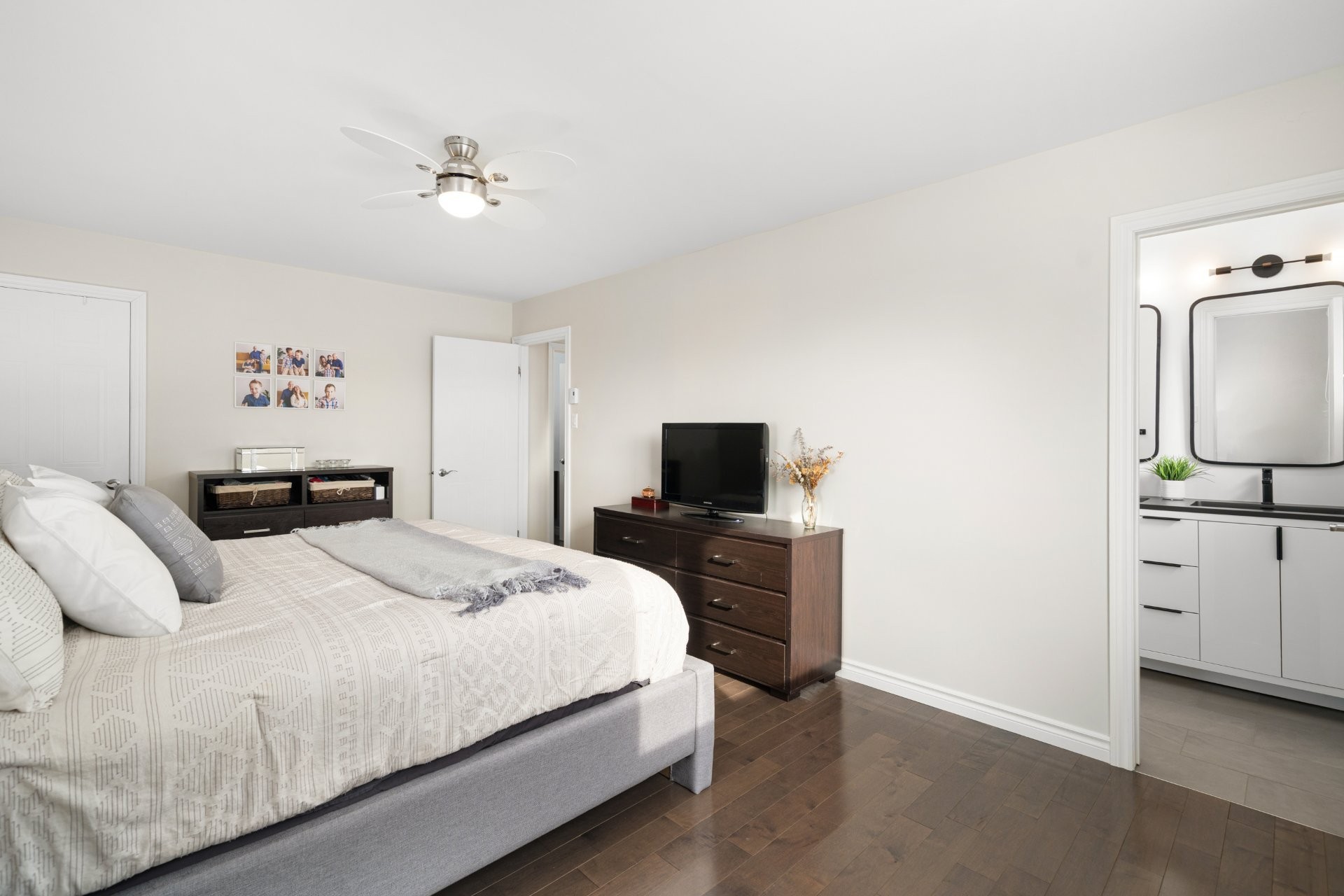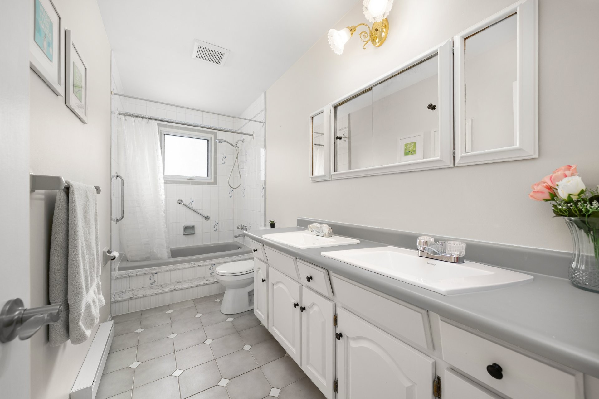 Upstairs, the spacious primary suite offers a renovated ensuite bathroom with heated floors and a walk-in closet. Three additional well-appointed bedrooms, each with its own walk-in closet, and a family bathroom complete the second level.