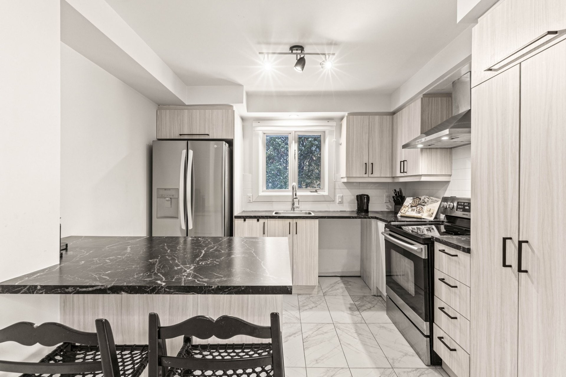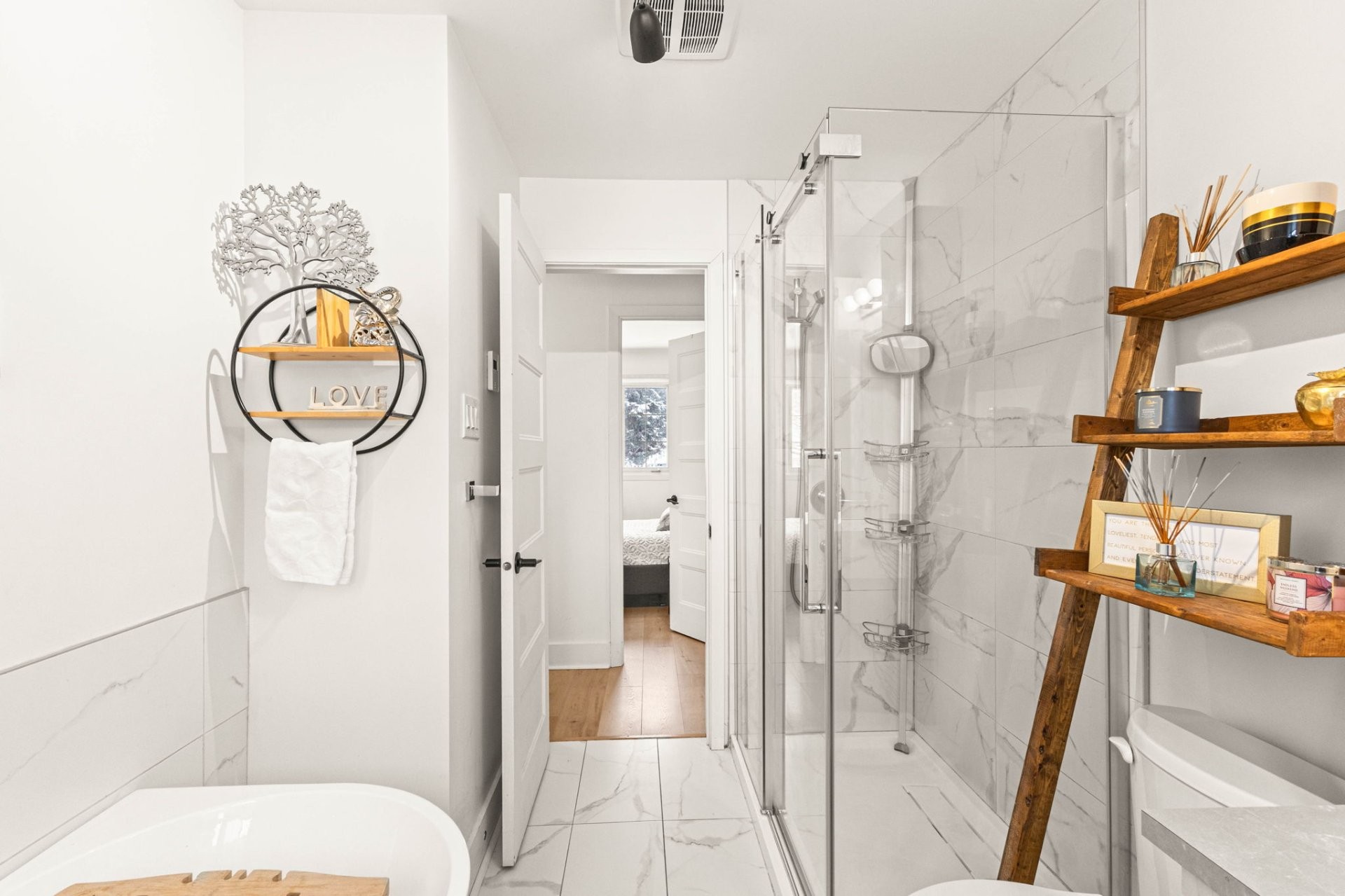 The main unit, fully renovated with a modern touch, offers bright and functional living areas. It includes four bedrooms, one of which is located in the basement and can easily be converted into a spacious family room, multipurpose area, or an ideal bedroom for a teenager. The main-floor bathroom features heated flooring, adding everyday comfort.