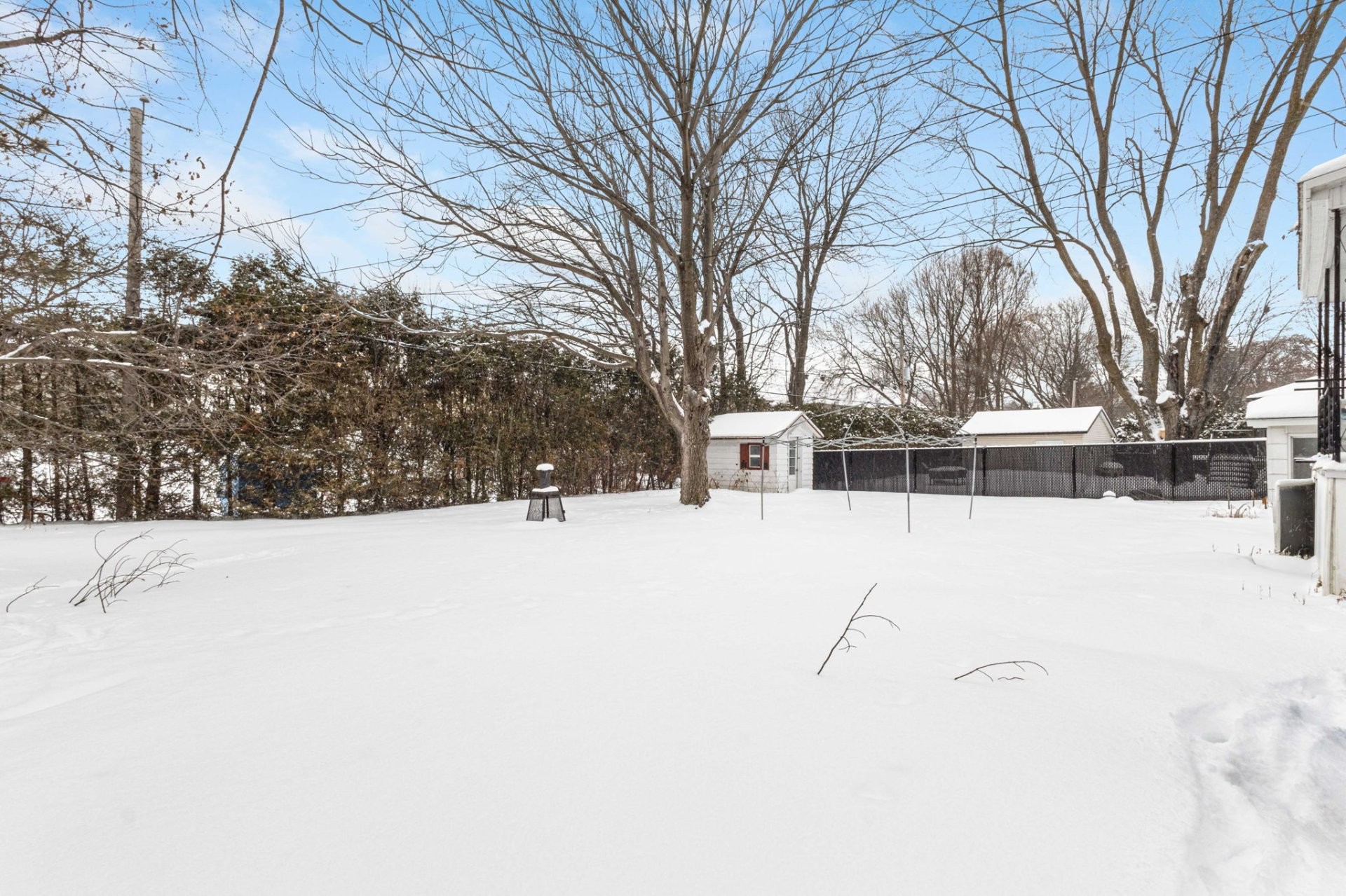 - Landscaping Fenced yard, Land / Yard lined with hedges