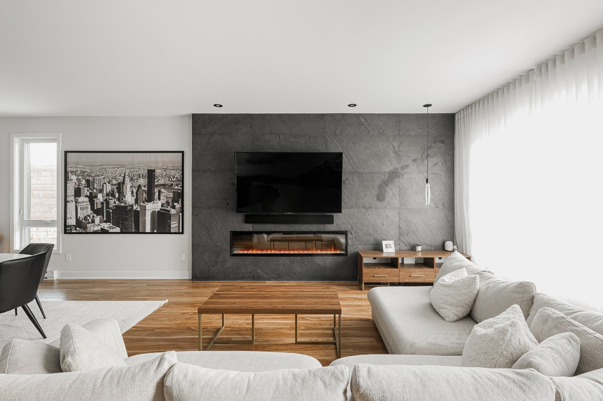 All light fixtures, all curtains, all blinds, dishwasher, the New York wall frame in the dining room, the soundbar under the television in the living room, the Ring doorbell.