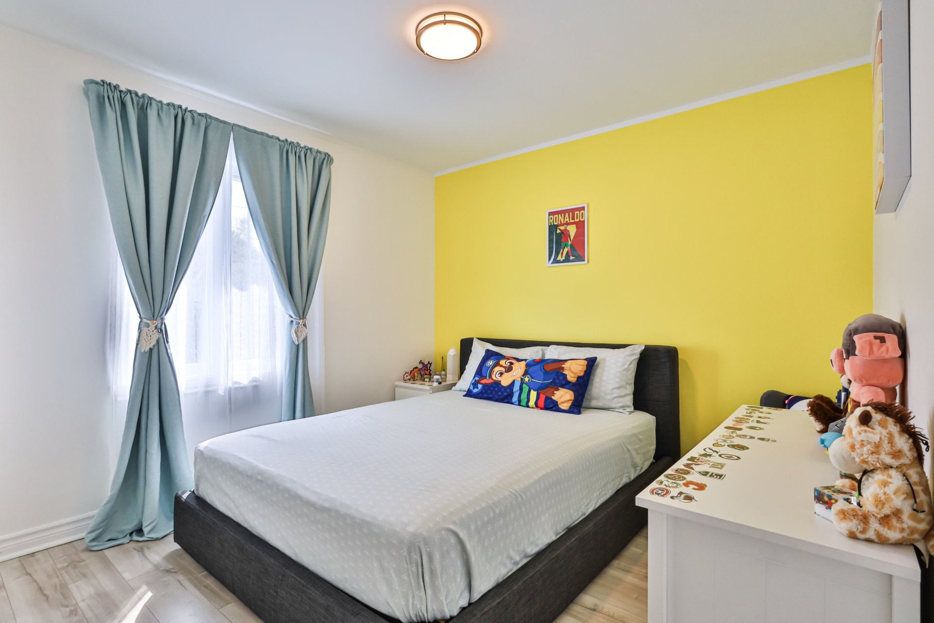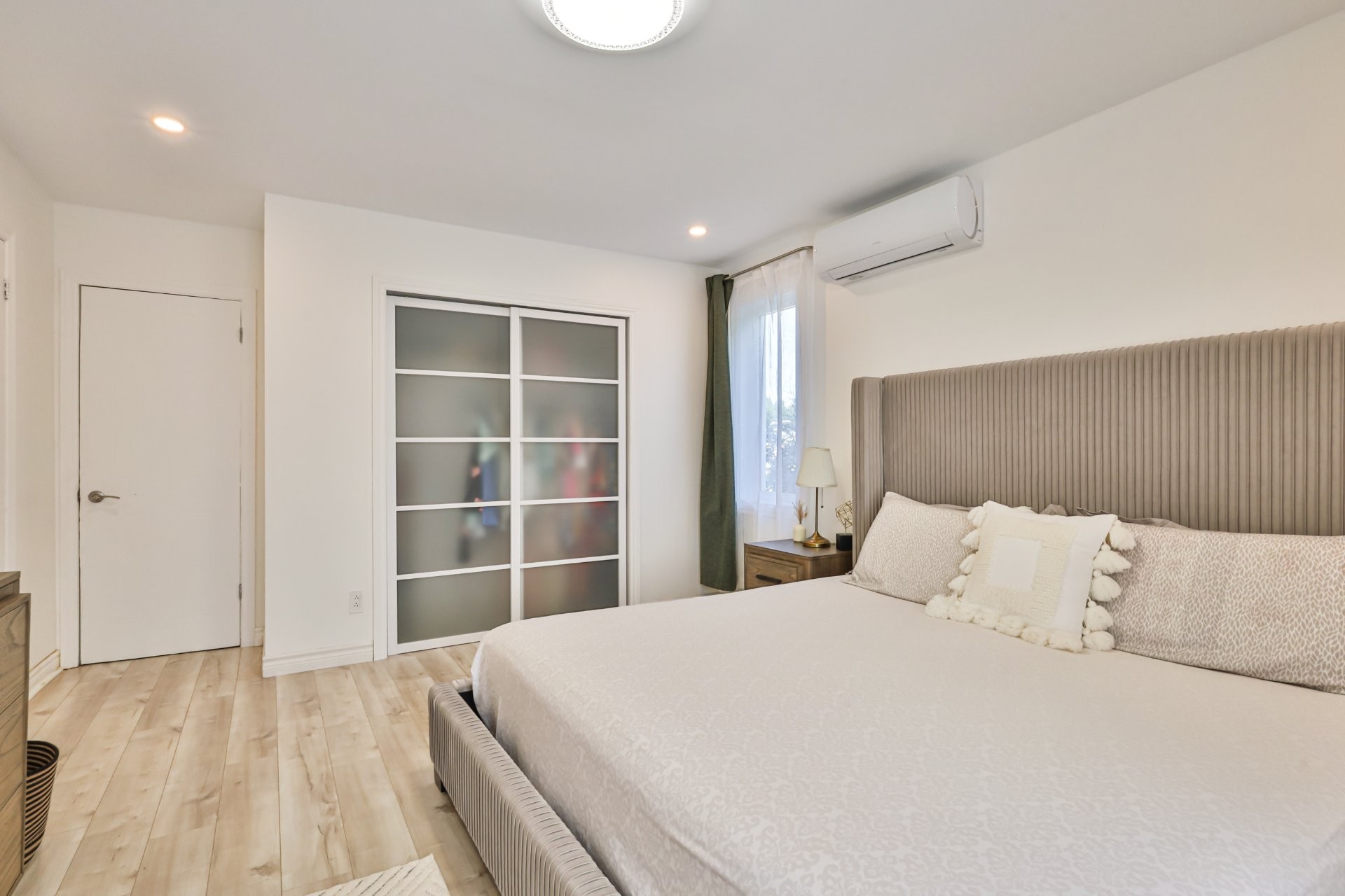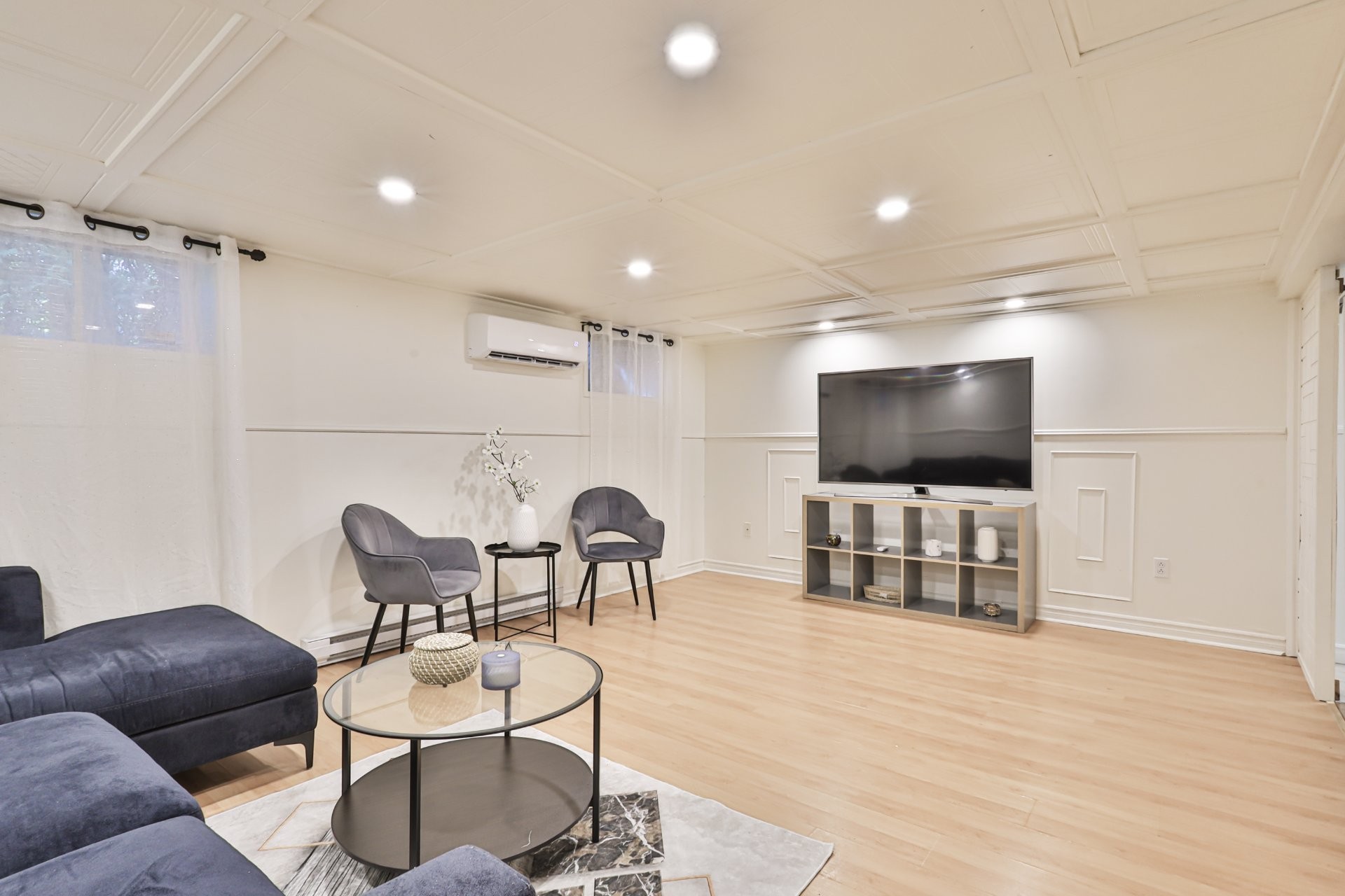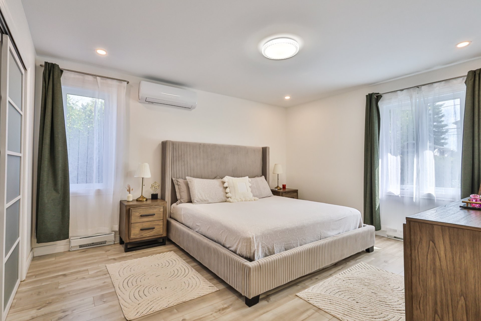 Superb two-storey home located in a sought-after family-friendly neighborhood, just steps away from Académie Lafontaine, schools, parks, and with immediate access to Highway 15. From the moment you walk in, you'll be charmed by the bright living room with cathedral ceilings and a wood-burning fireplace, as well as the spacious kitchen designed for entertaining. The home is heated and cooled with a heat pump featuring three heads (one per floor) and is equipped with a smart home system (Hylo, Bell Smart Home). Upstairs, you'll find three bedrooms and a bathroom with a freestanding tub. The ground floor offers an additional bedroom, a large family room, and a versatile space that can serve as either a bedroom or an office, depending on your needs. The finished basement includes a full bathroom. The garage is equipped with an installation for an electric vehicle charging station. The private backyard, designed as a true oasis, features a heated inground pool, allowing you to enjoy swimming from April through October. A turnkey property, fully renovated and modern, perfectly combining comfort and quality of life!