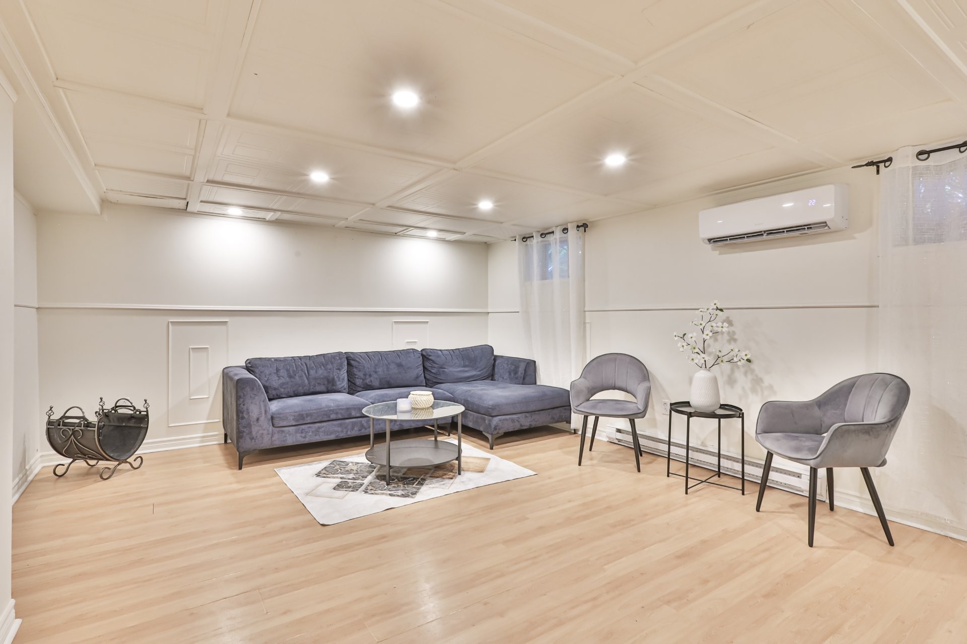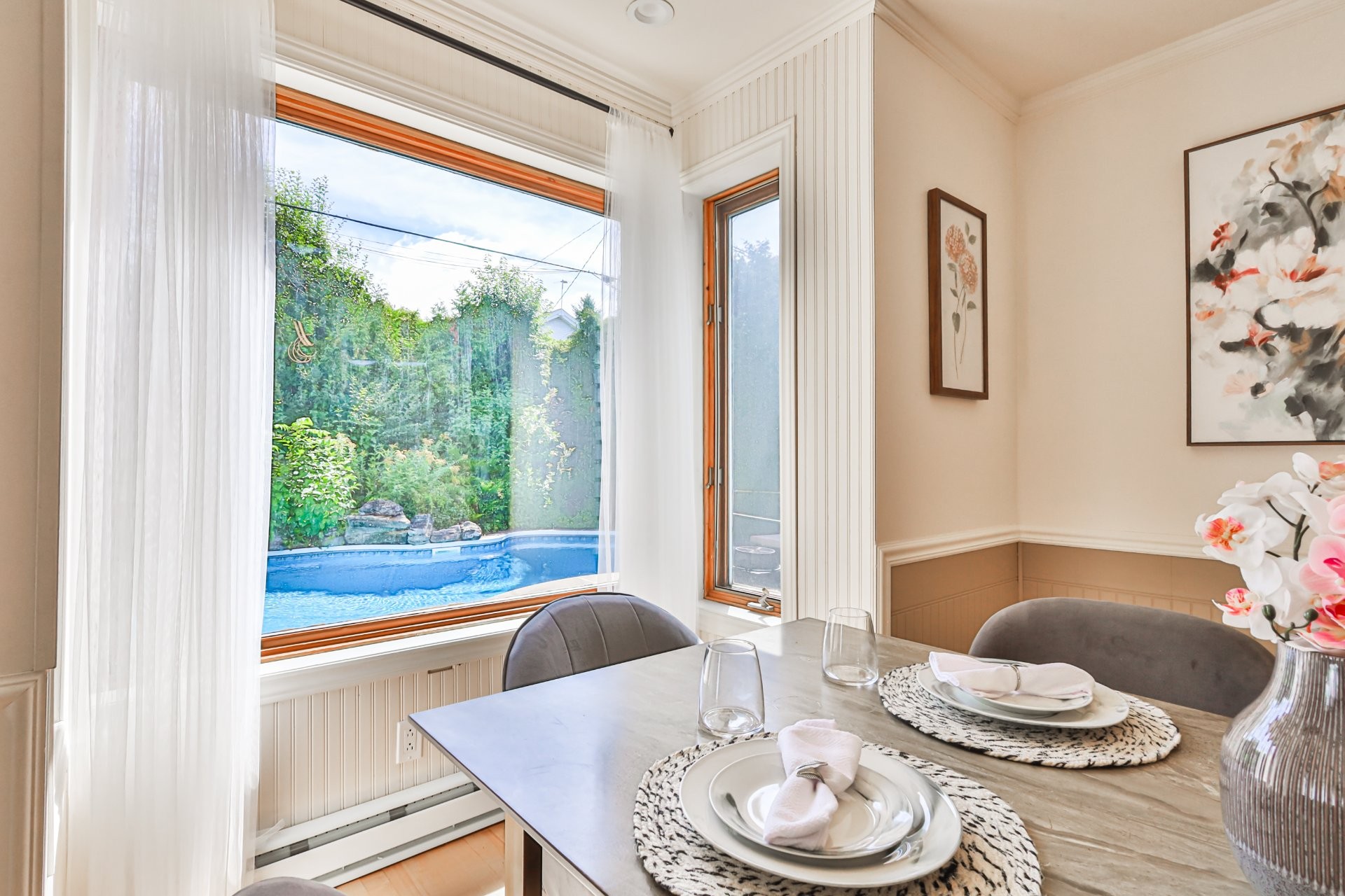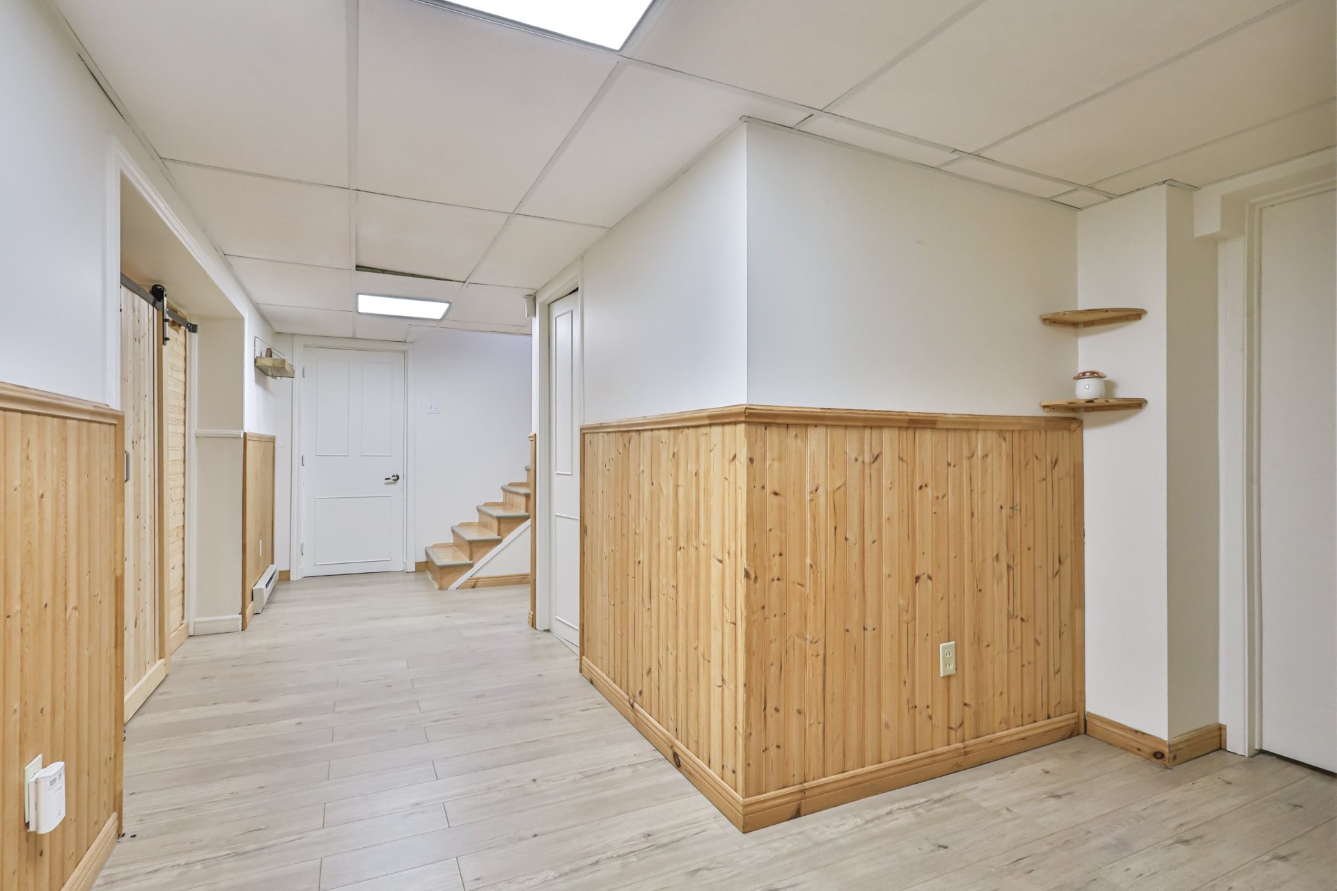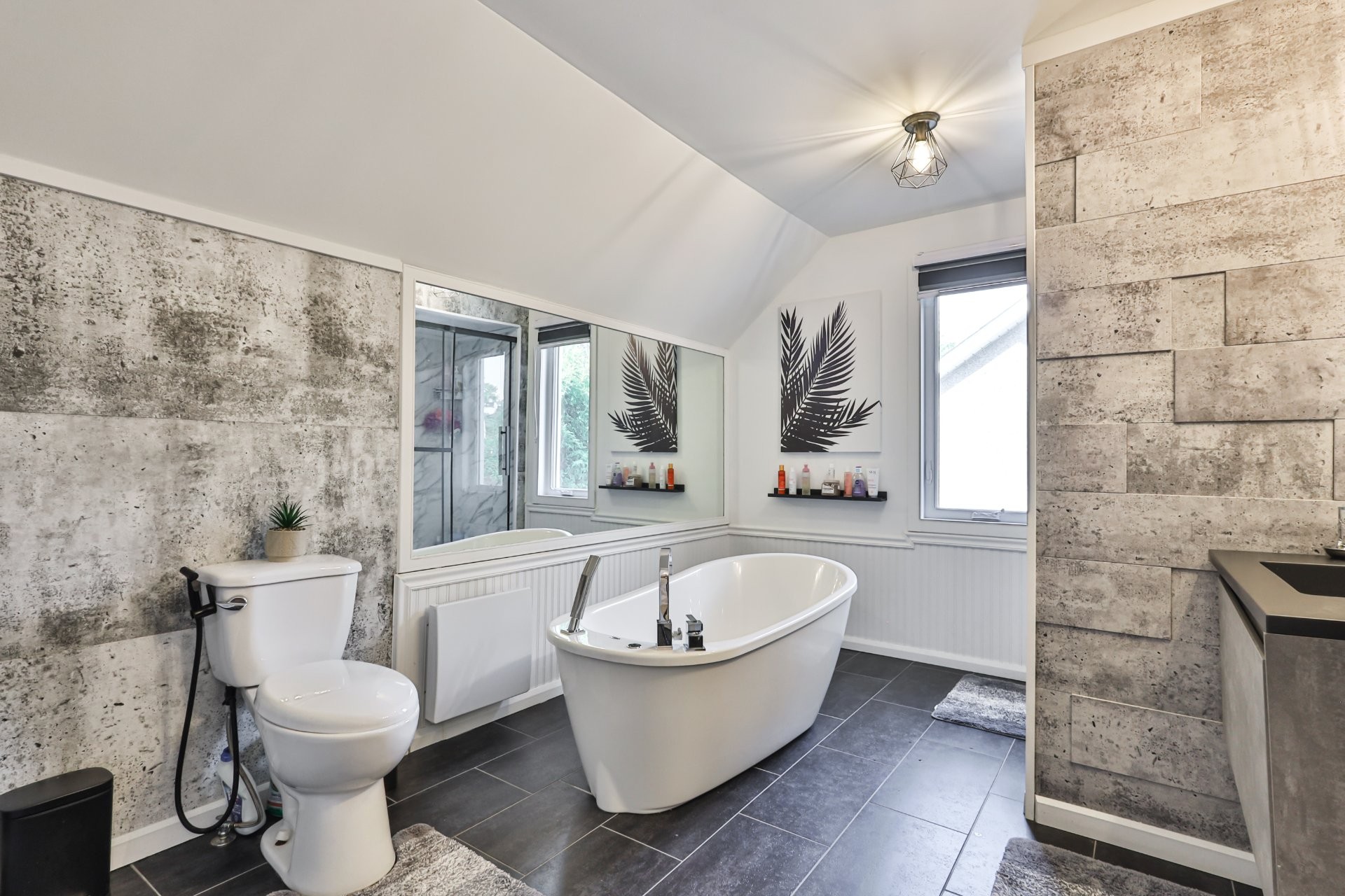 Superb two-storey home located in a sought-after family-friendly neighborhood, just steps away from Académie Lafontaine, schools, parks, and with immediate access to Highway 15. From the moment you walk in, you'll be charmed by the bright living room with cathedral ceilings and a wood-burning fireplace, as well as the spacious kitchen designed for entertaining. The home is heated and cooled with a heat pump featuring three heads (one per floor) and is equipped with a smart home system (Hylo, Bell Smart Home). Upstairs, you'll find three bedrooms and a bathroom with a freestanding tub. The ground floor offers an additional bedroom, a large family room, and a versatile space that can serve as either a bedroom or an office, depending on your needs. The finished basement includes a full bathroom. The garage is equipped with an installation for an electric vehicle charging station. The private backyard, designed as a true oasis, features a heated inground pool, allowing you to enjoy swimming from April through October. A turnkey property, fully renovated and modern, perfectly combining comfort and quality of life!