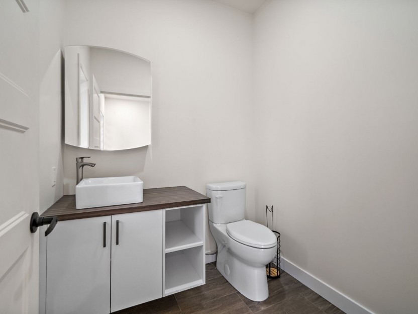 - A large fully renovated kitchen with patio door access to the backyard and new ceramic floors