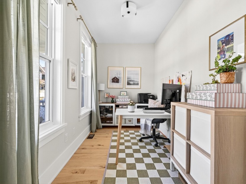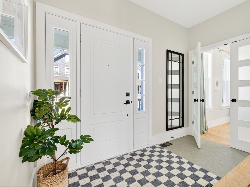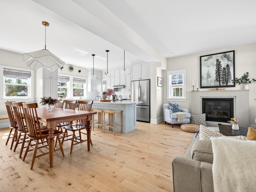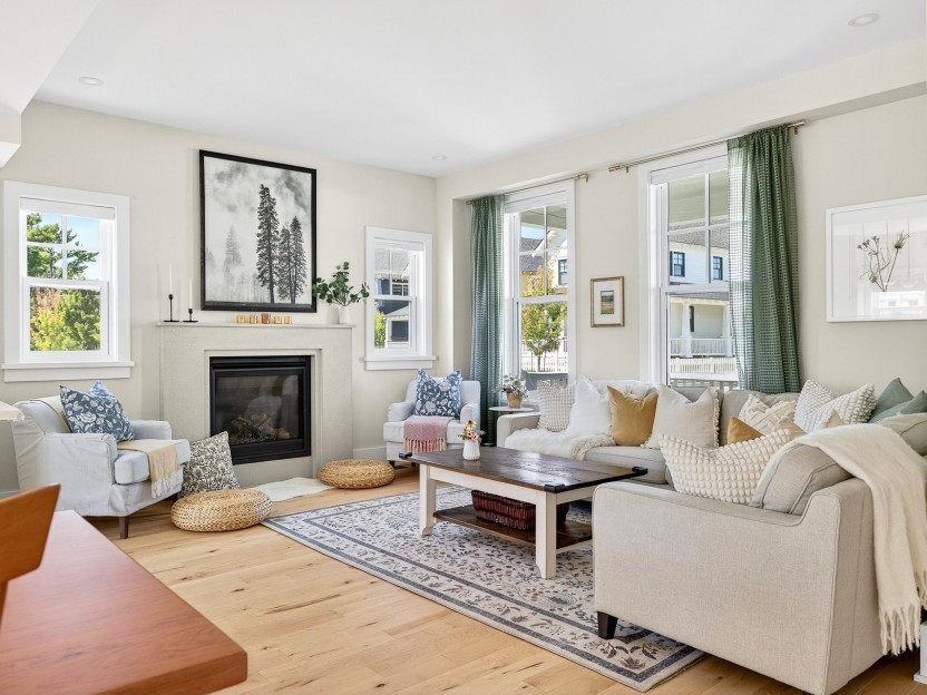 Hendrick Farm - New construction: curate your interiors from a considered palette of exceptional finishes. French Colonial architecture: stacked porches oriented to the Gatineau Hills, with board-and-batten cladding and shiplap detailing for a warm, timeless silhouette. Main level (~1,460 sq ft): open-plan living with 10-ft ceilings and expansive glazing that bathes the space in light. High-spec finishes: wide-plank floors, bespoke cabinetry, quartz worktops, large-format tile, architect-grade fittings and designer lighting. Show home available to view by appointment.