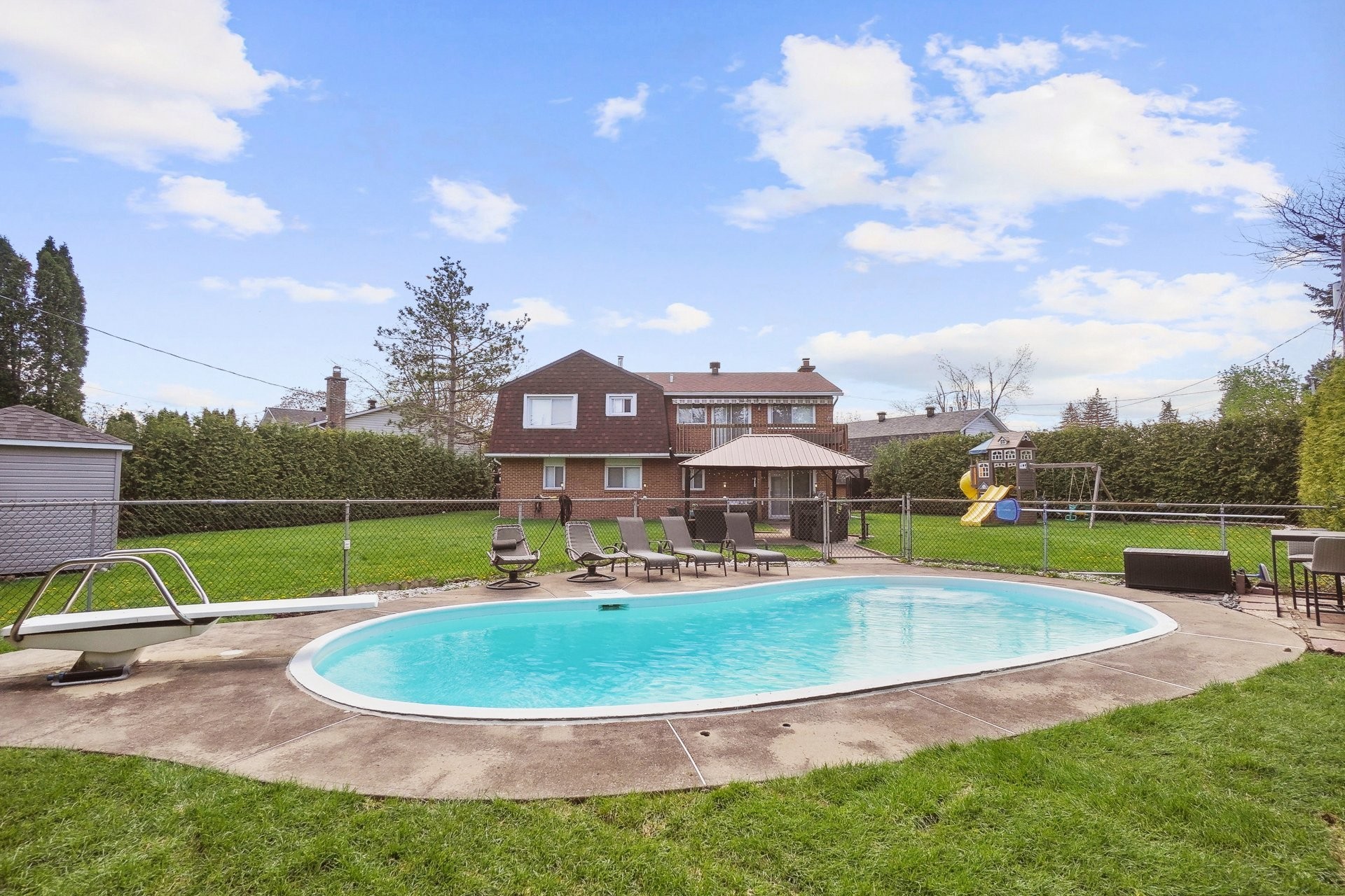 Freezer and fridge in garage are included AS IS, mini fridge in bar area is included AS IS. Play structure in backyard is included AS IS.