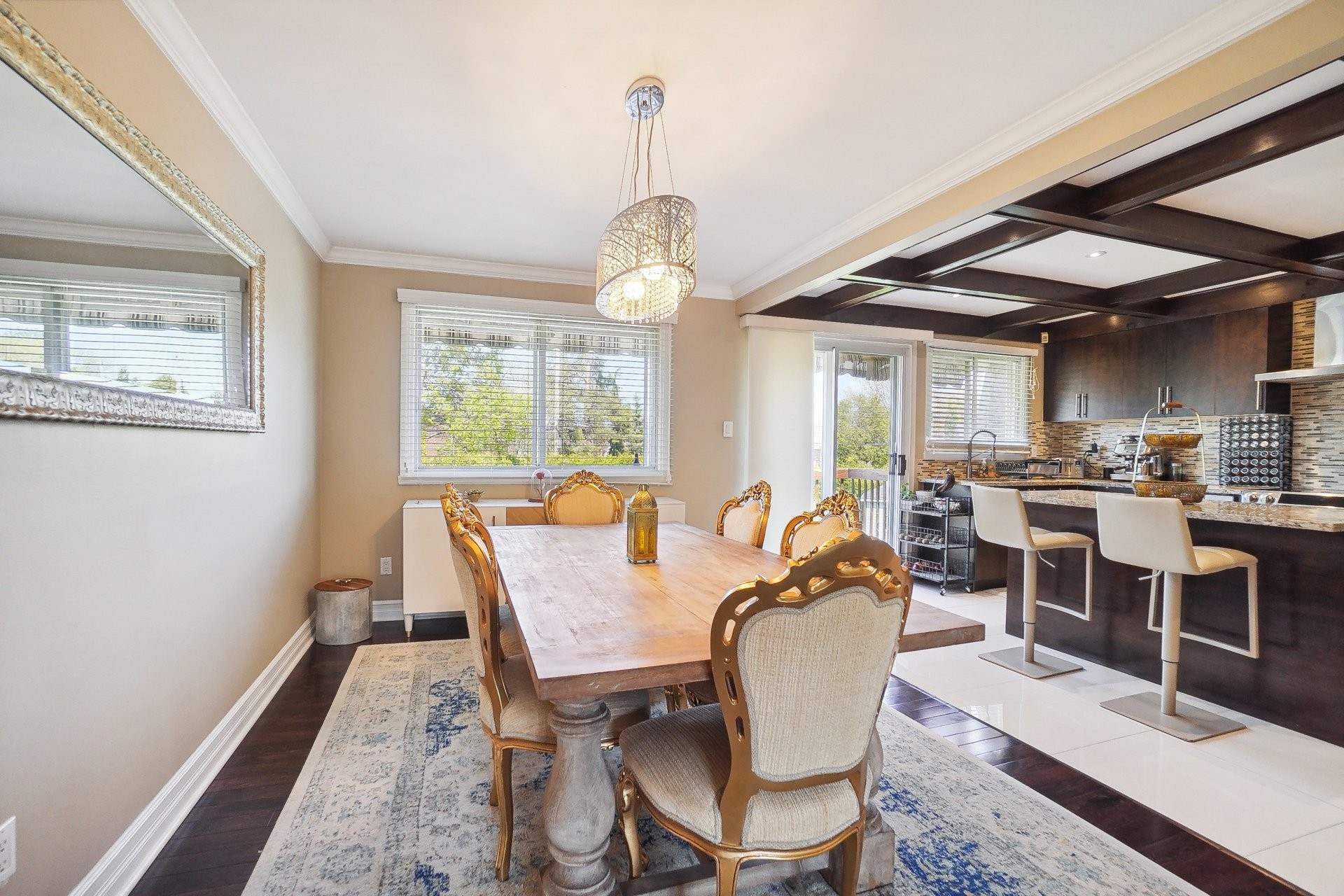 This beautiful and bright raised bungalow in DDO welcomes you into a recently renovated 5 bedroom, 2 1/2 bathroom home positioned on a huge fenced in property featuring a large in-ground pool with plenty of space to entertain throughout the yard. Gorgeous hardwood flooring covers both floors of this home, additional wood beams highlight the ceilings of this home once entering through the hallway straight into the kitchen. Double parking garage, and 4 car driveway. A must see !