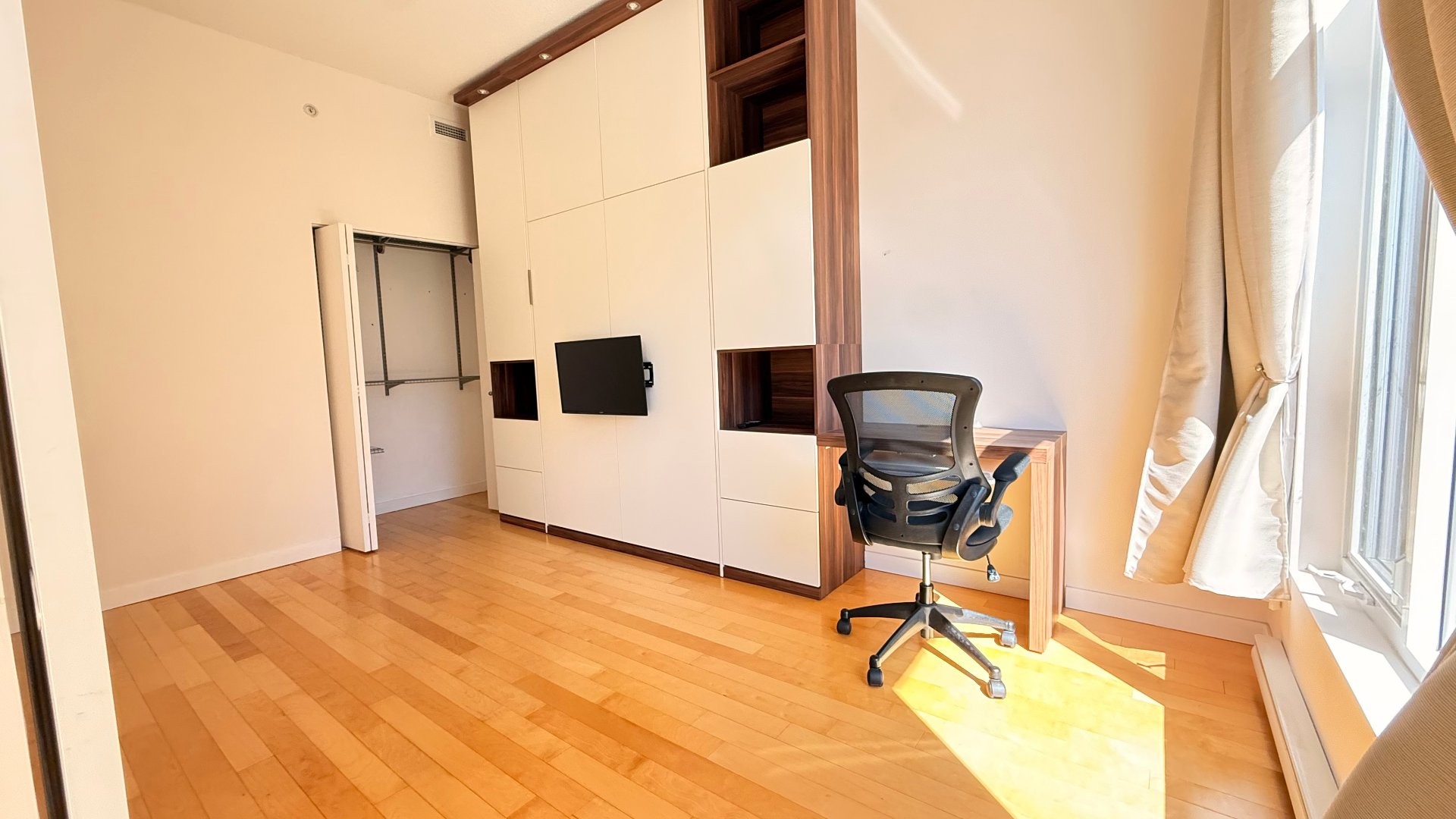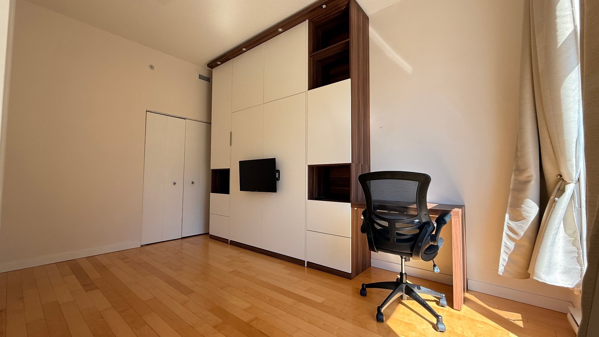 Fridge, Stove, Dishwasher, Washer/Dryer, Murphy Bed, Curtain Rods, Queen size bed frame, 2 Night Stands, 2 Drawer sets, TV Media Stand, TV mounting Bracket, Office Chair, Indoor Parking, Water leak detection system.
