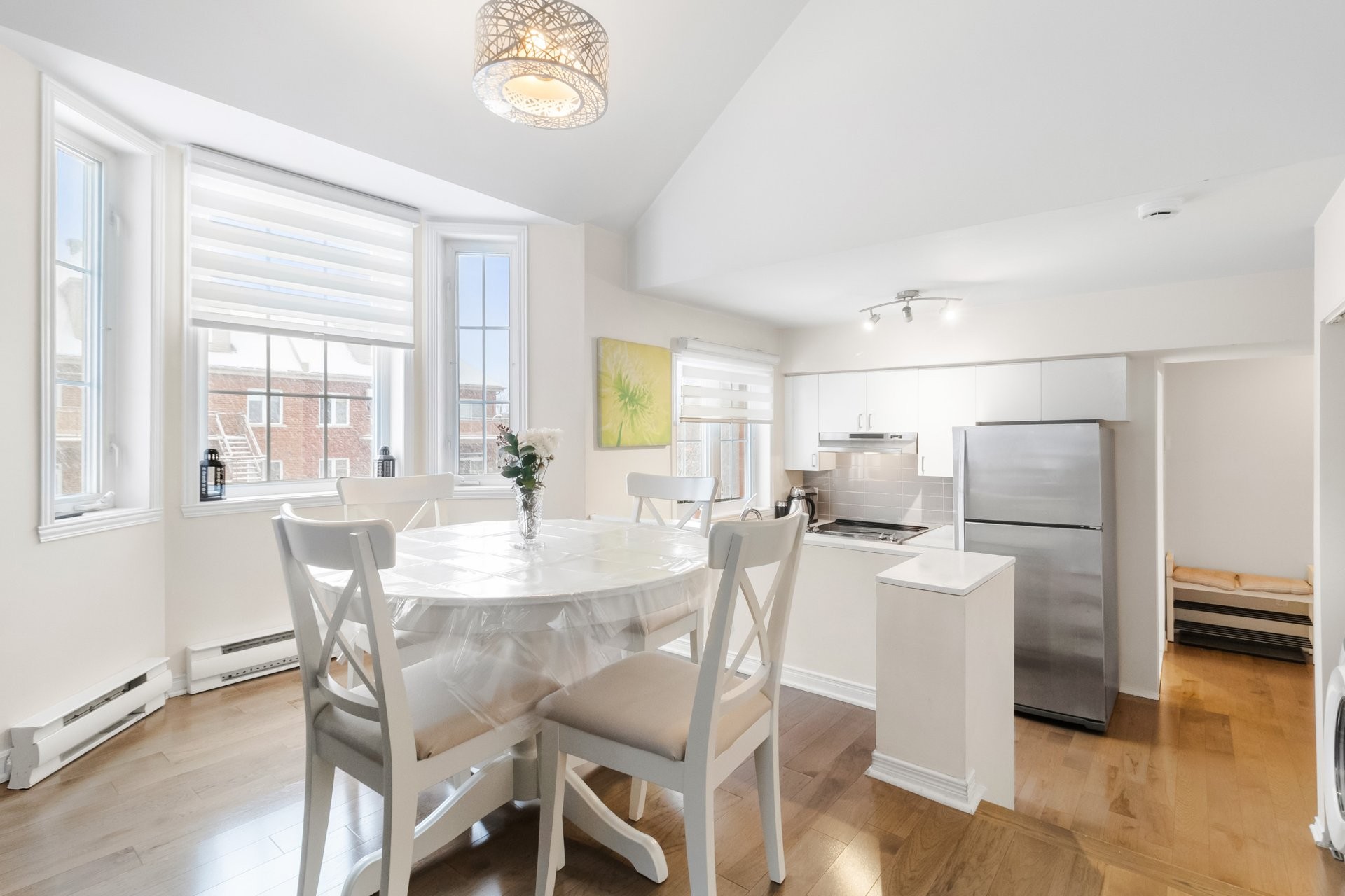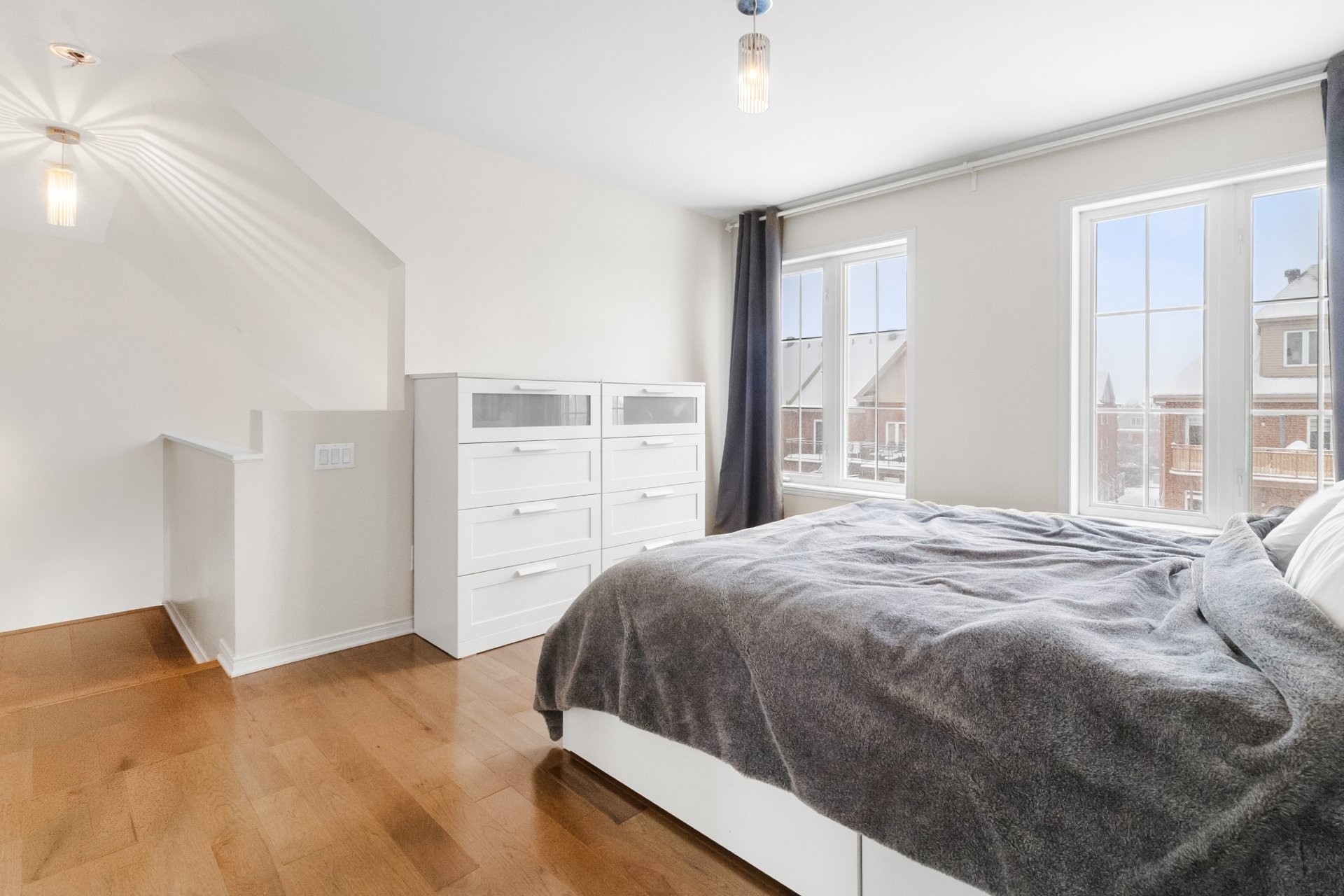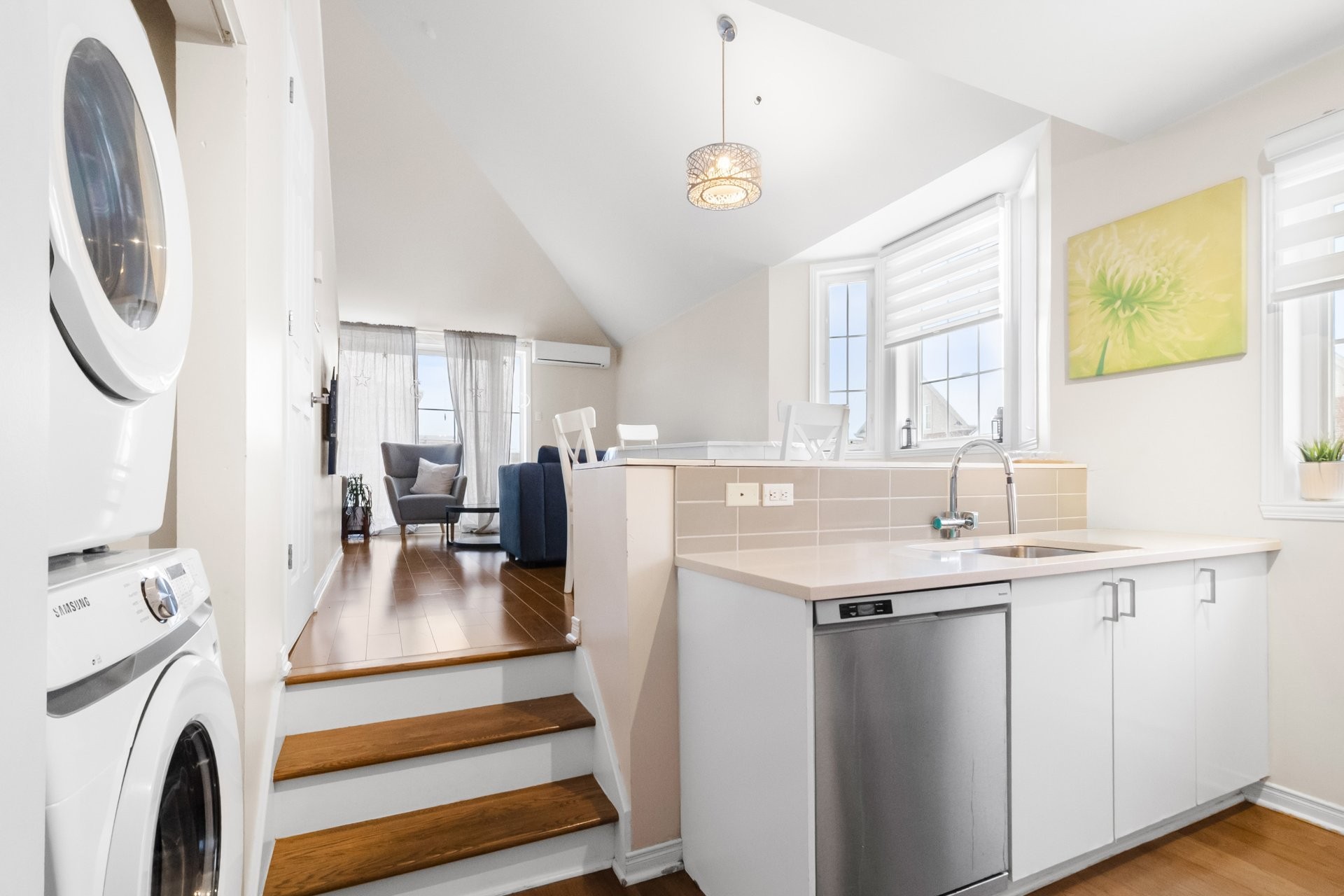 Bright and airy 1-bedroom, 2-level unit featuring a mezzanine bedroom with 15-ft ceilings. Enjoy an updated kitchen with quartz countertops, a dining area with a bay window, and a renovated bathroom. The unit includes 1 indoor parking space, a storage unit, and a wall-mounted air conditioner for comfort. Conveniently located just 8 minutes from the Bois Franc REM station, with easy access to public transportation and major highways. Close to YUL International Airport, a variety of restaurants within a 5-minute drive, bakeries and grocery stores within walking distance, and multiple gyms nearby. Available for occupancy as of July 1st.