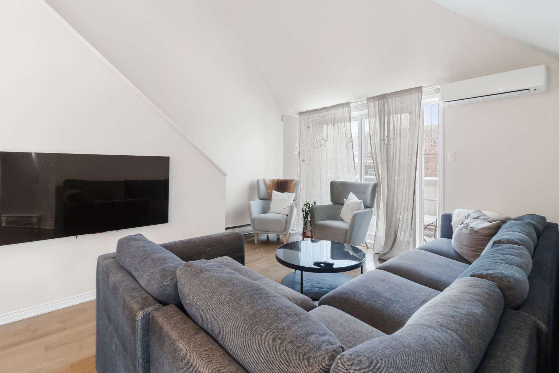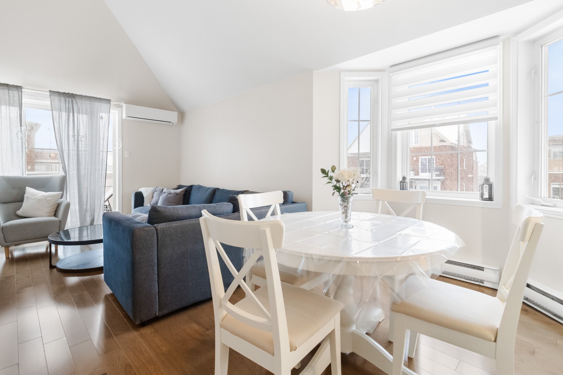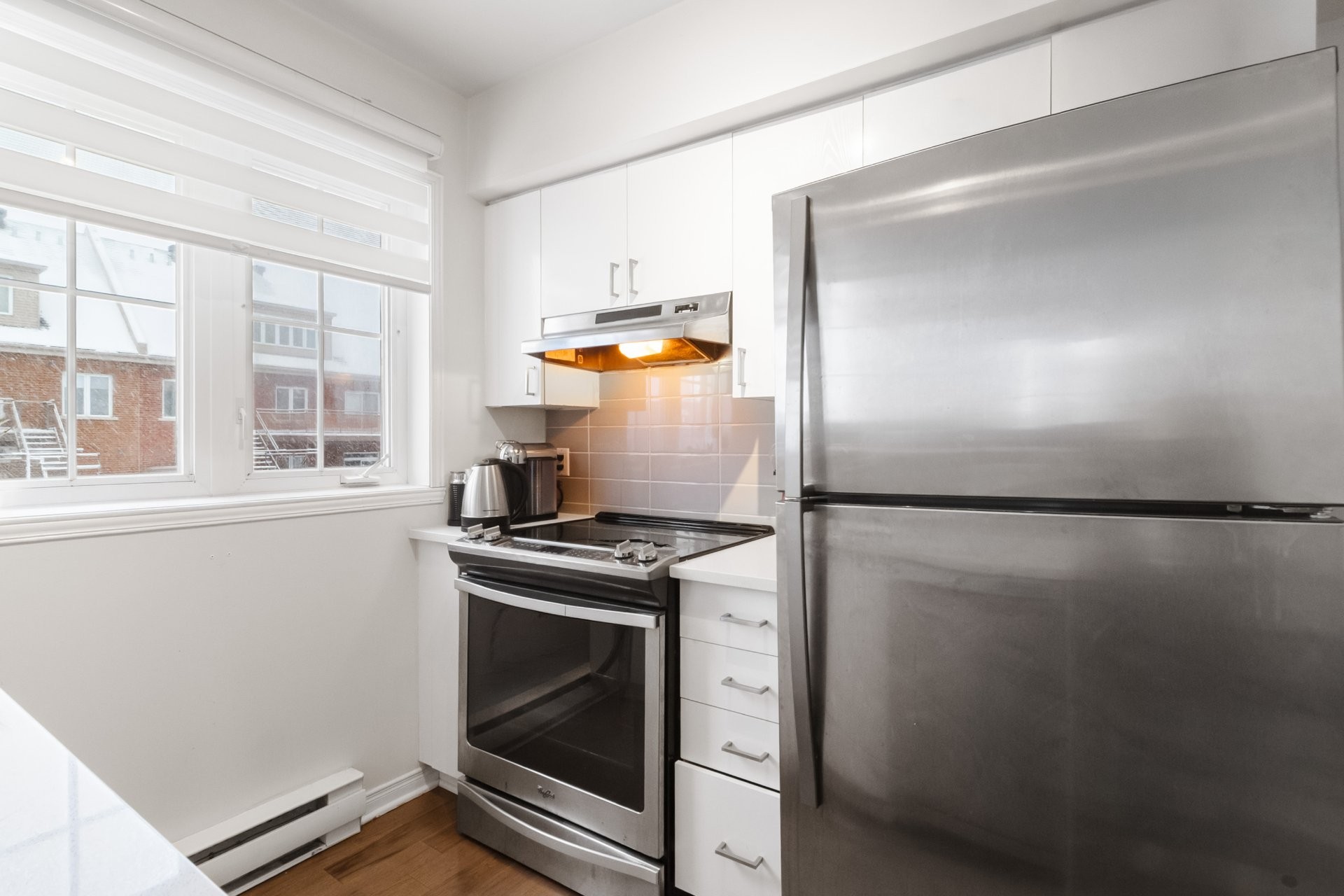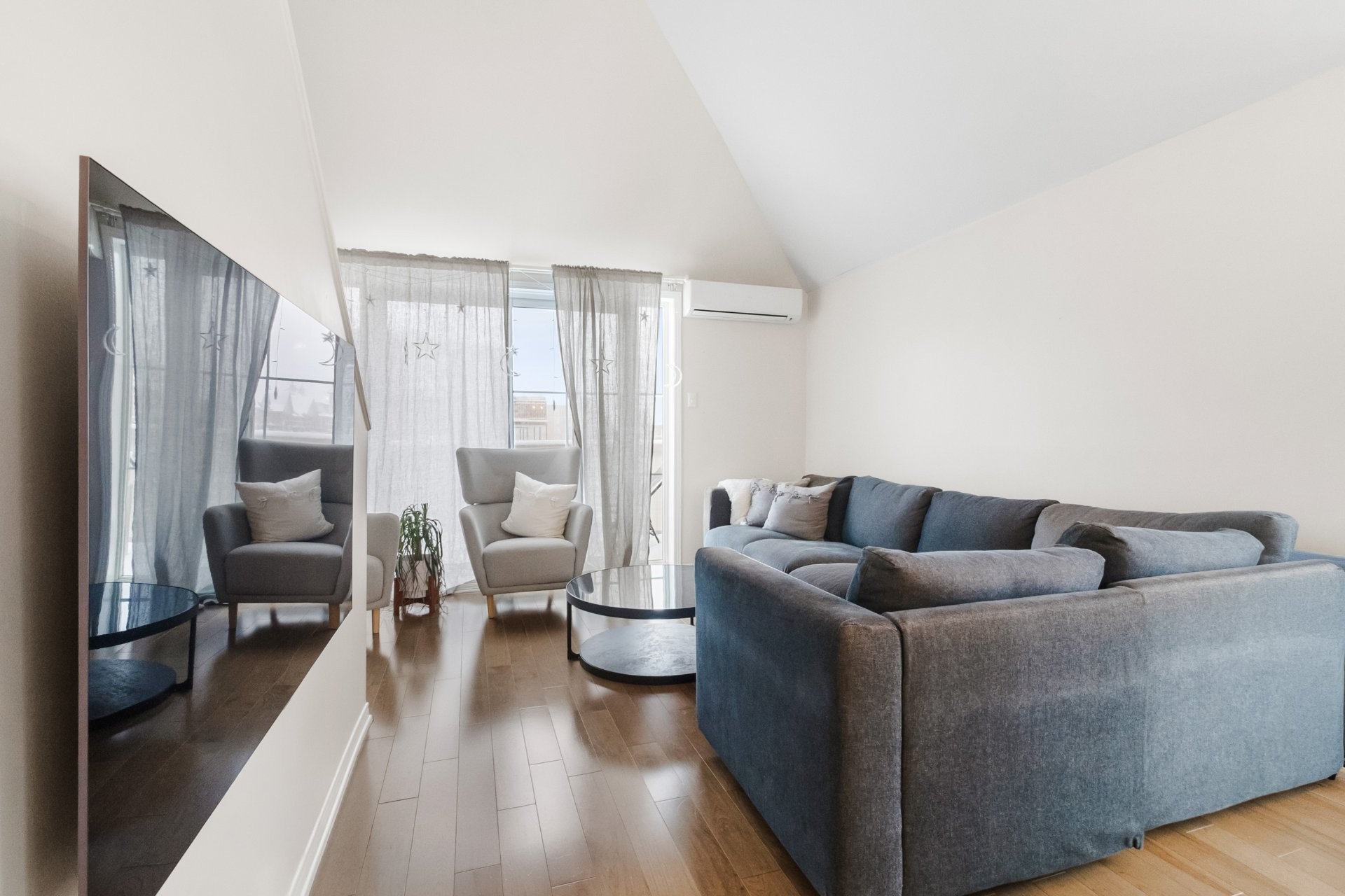 Bright and airy 1-bedroom, 2-level unit featuring a mezzanine bedroom with 15-ft ceilings. Enjoy an updated kitchen with quartz countertops, a dining area with a bay window, and a renovated bathroom. The unit includes 1 indoor parking space, a storage unit, and a wall-mounted air conditioner for comfort. Conveniently located just 8 minutes from the Bois Franc REM station, with easy access to public transportation and major highways. Close to YUL International Airport, a variety of restaurants within a 5-minute drive, bakeries and grocery stores within walking distance, and multiple gyms nearby. Available for occupancy as of July 1st.