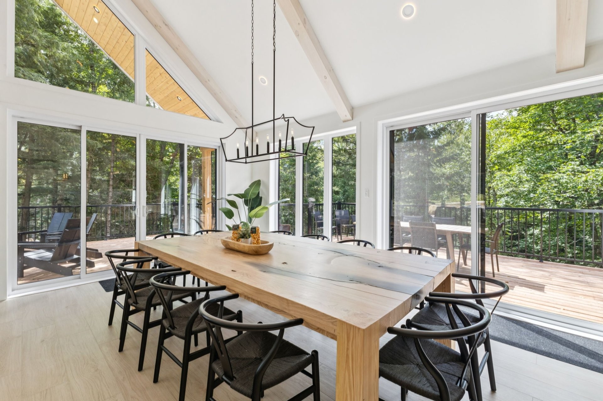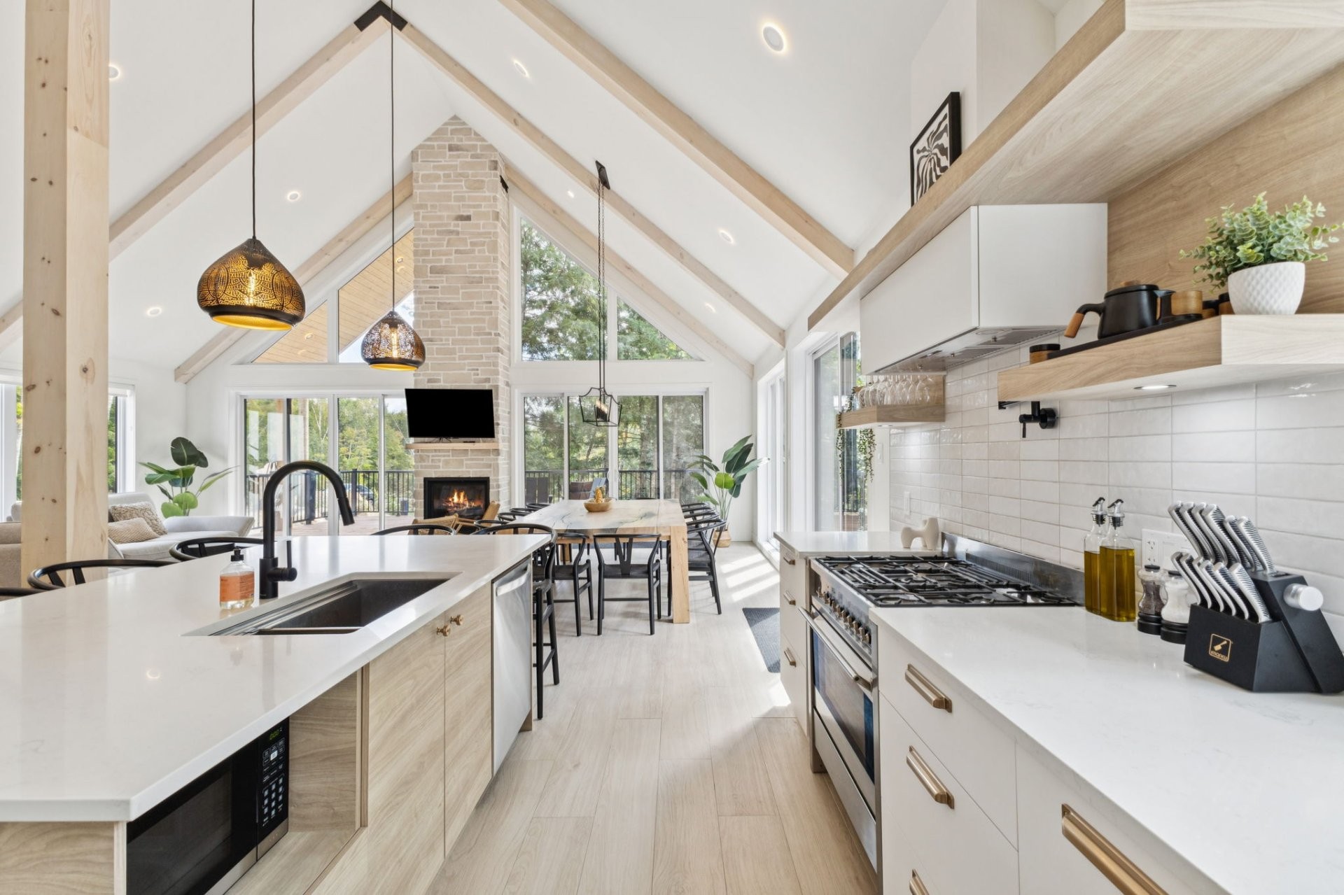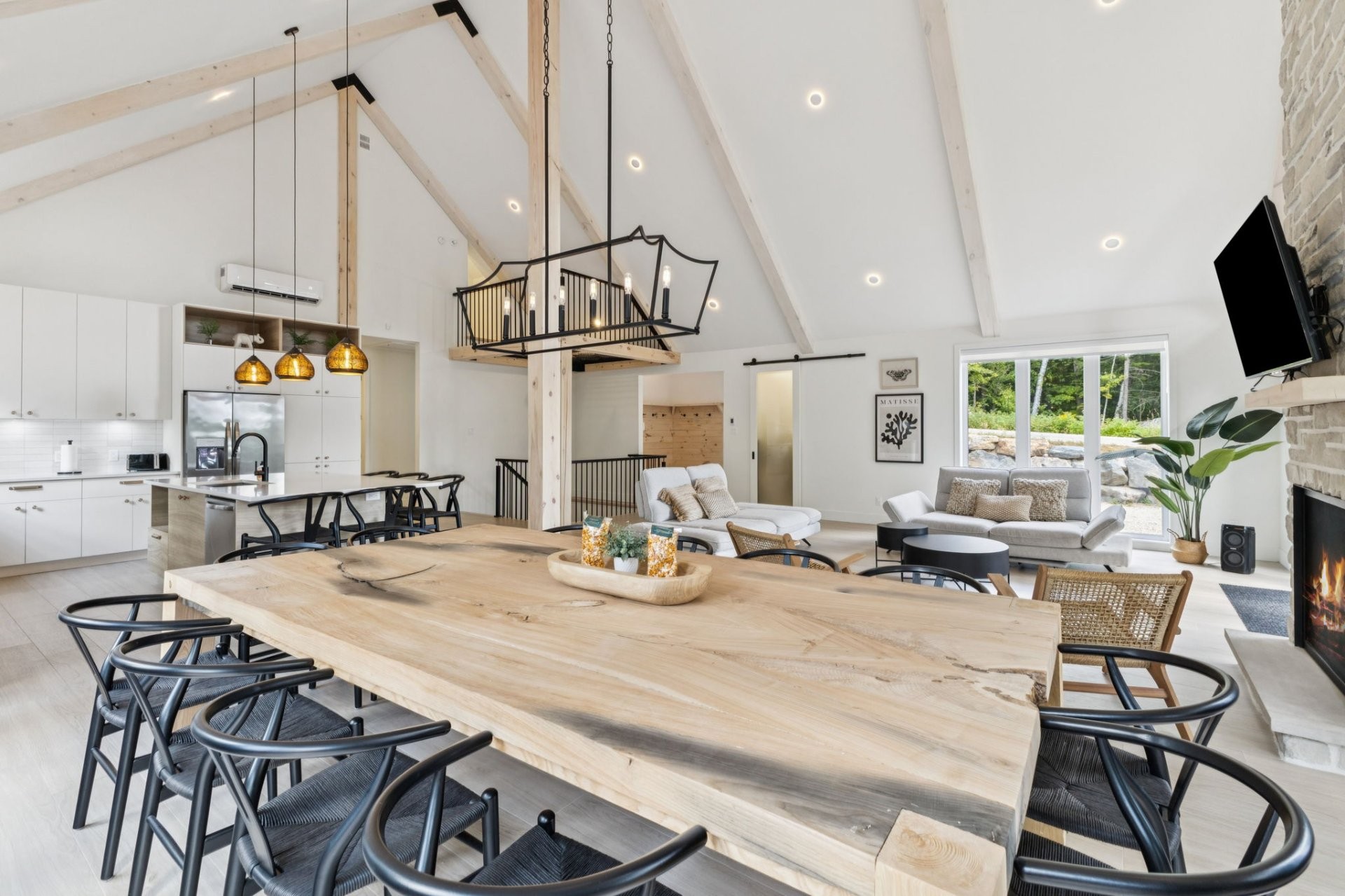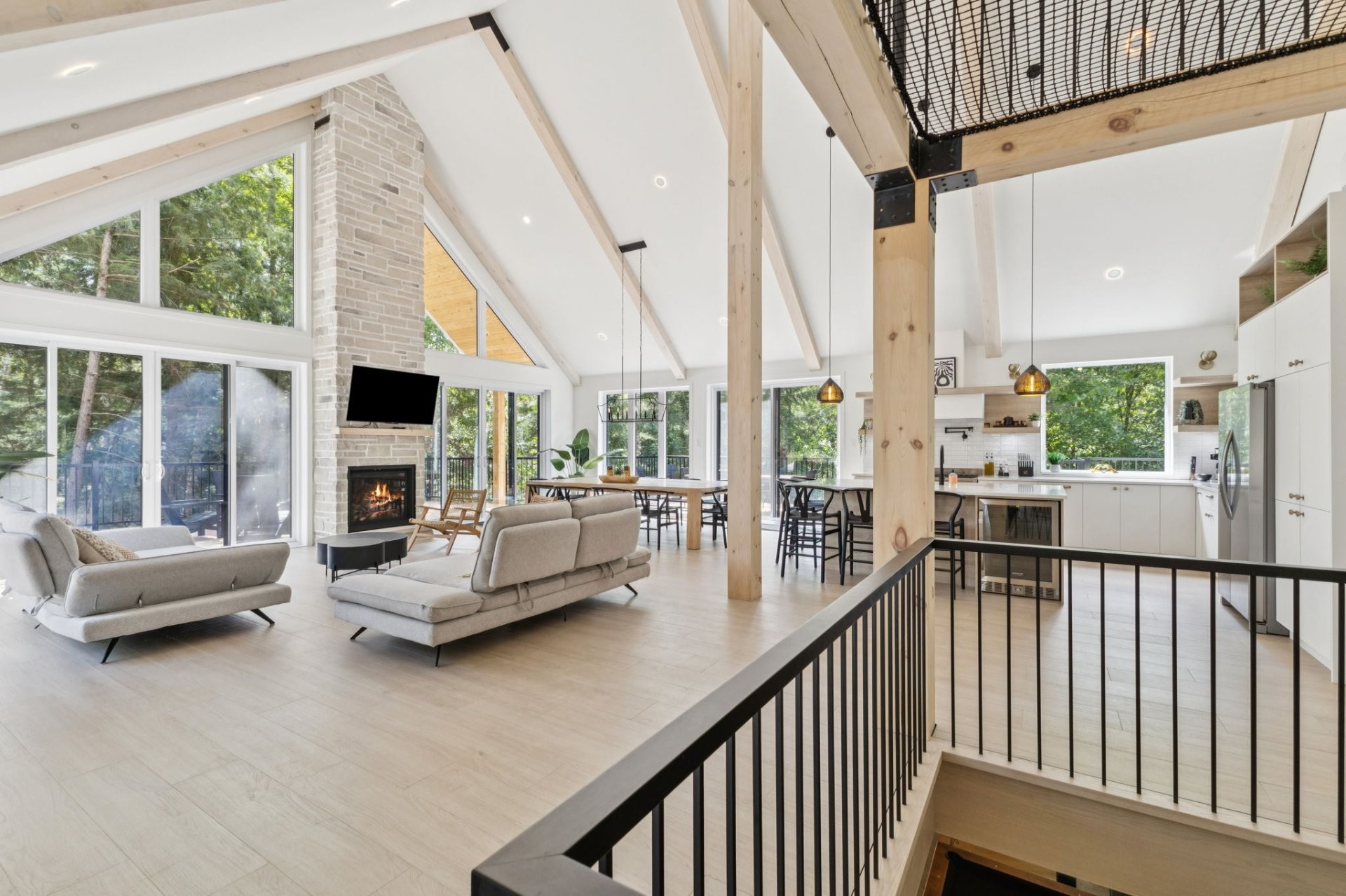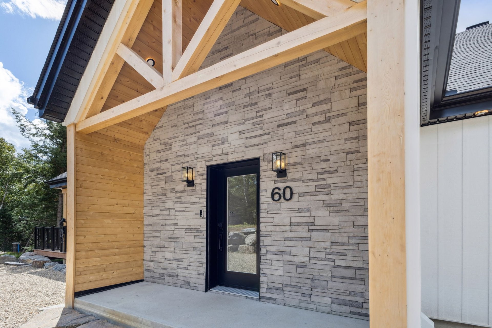 SHORT-TERM RENTALS PERMITTED! Stunning luxury chalet with 5 bedrooms, 4 bathrooms, and 1 powder room, located just 12 minutes from Mont-Tremblant. Modern design, high-end materials, heated floors, large terrace with jacuzzi. A perfect balance between comfort, nature, and performance. A turnkey investment combining pleasure and profitability, in the heart of the ChicShack domain!