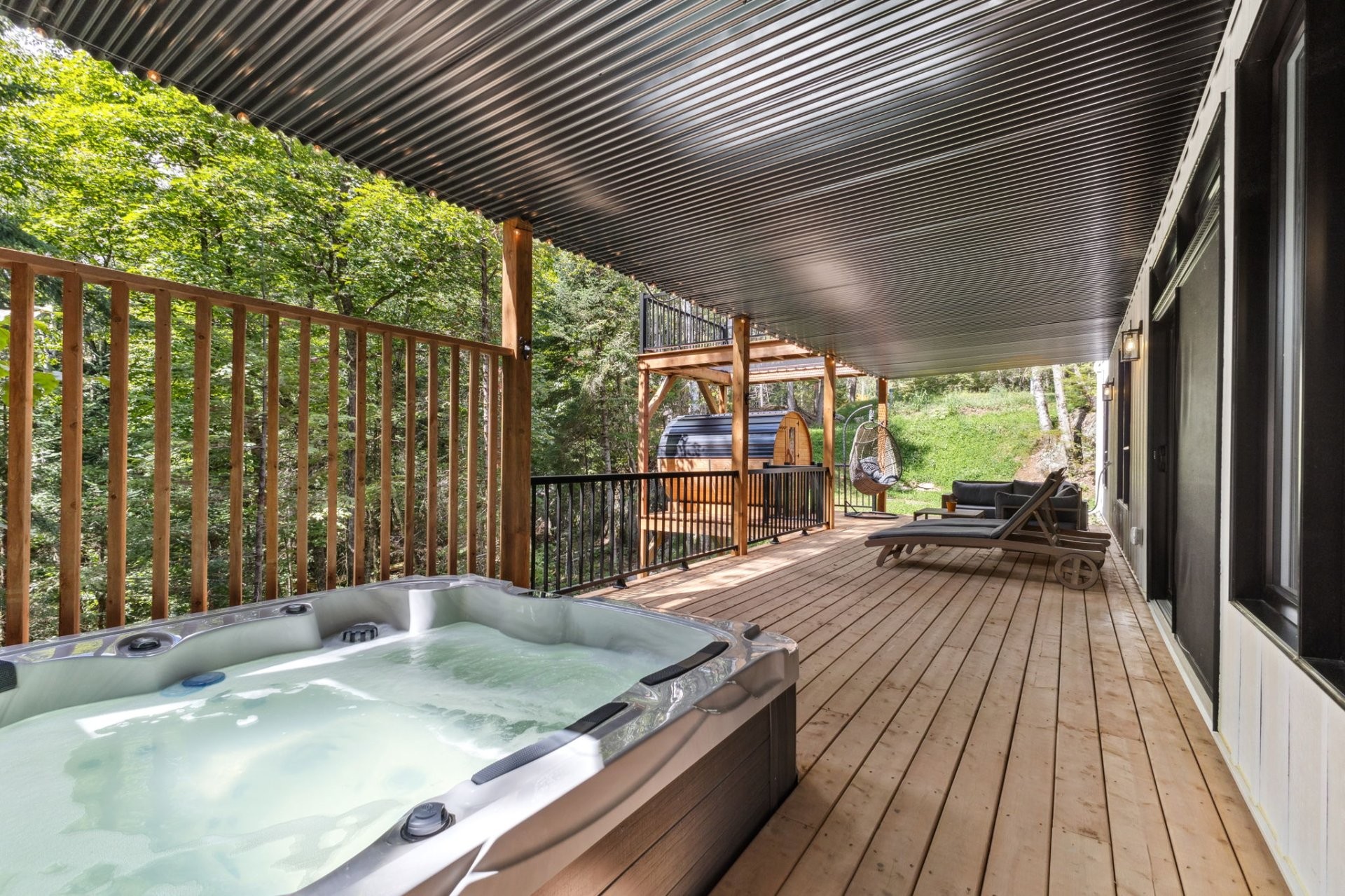 Jacuzzi, 1 wall-mounted heat pump, wooden deck, cathedral ceiling finish, loft.