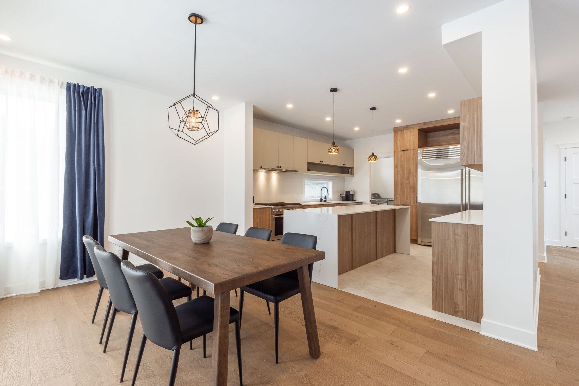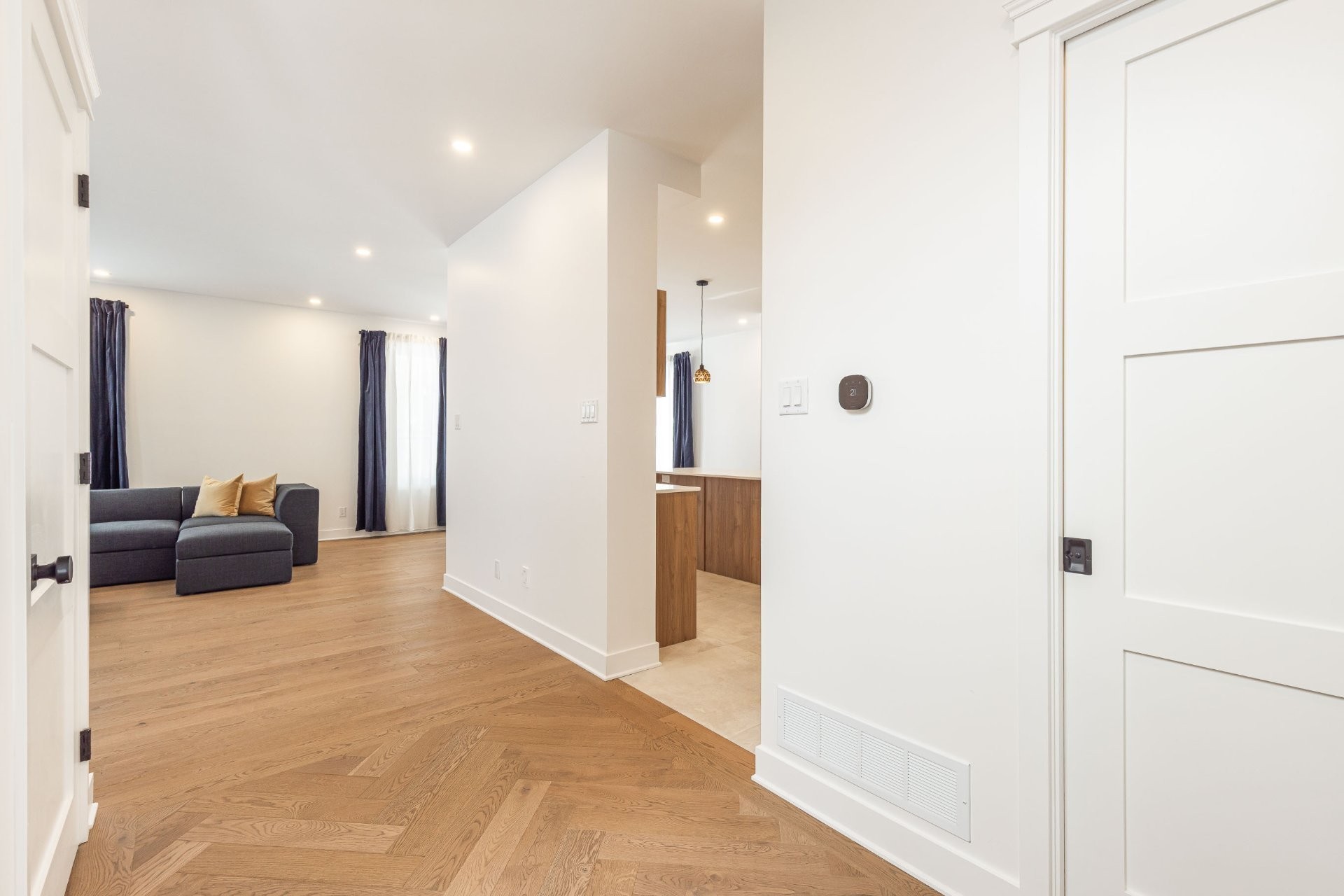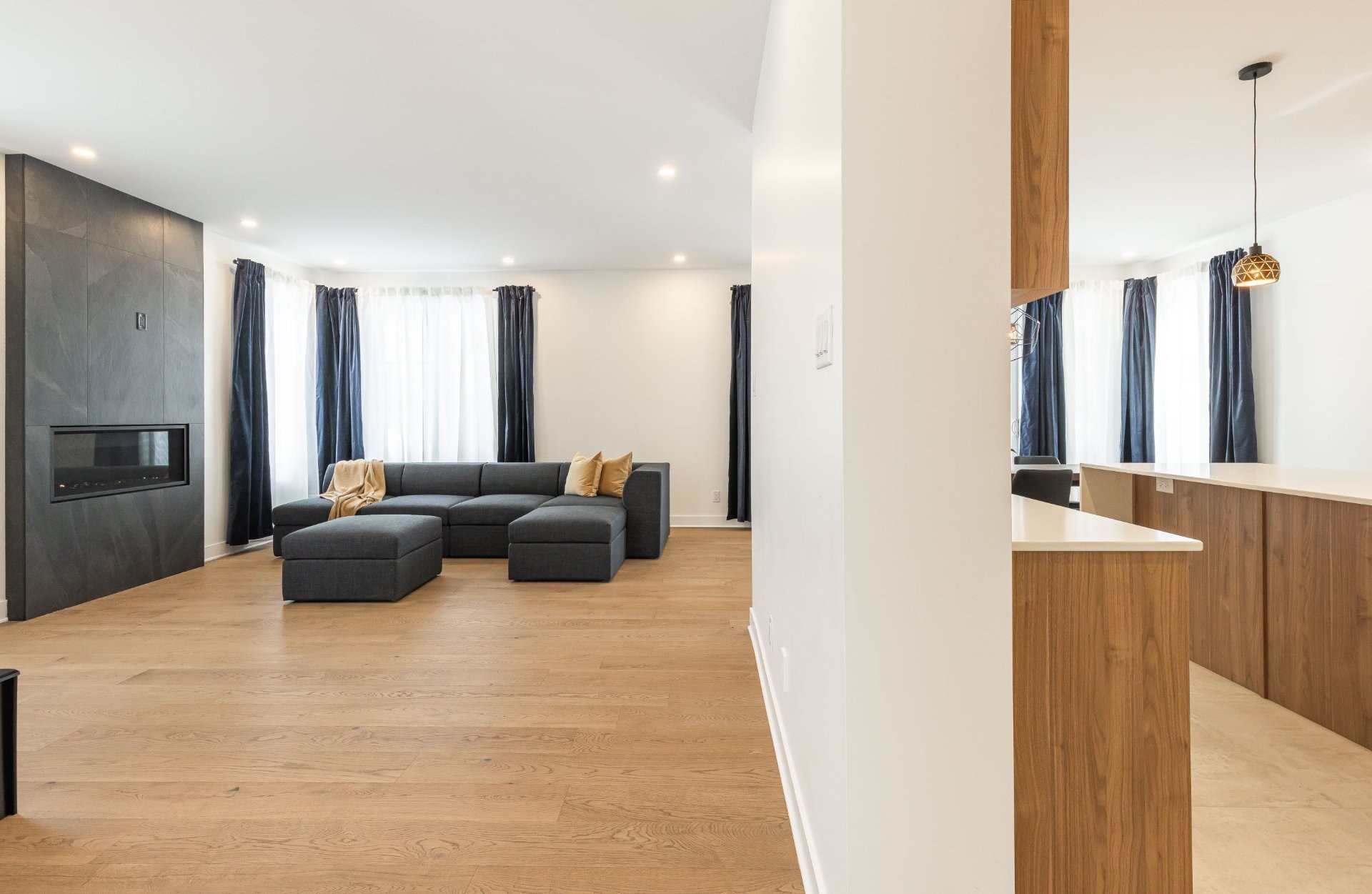 Welcome to 2443 Boulevard Perrot! This stunning modern farmhouse with a Scandinavian twist is located in a highly sought-after area of NDIP. Thoughtfully designed, this custom 4-bedroom, 3.5-bathroom home features high-end finishes and built-in luxury appliances. Enjoy a double garage with vaulted ceilings, a finished basement with extra-large storage, a full third bathroom, and the potential for additional bedrooms. Highlights include a heat pump, electric forced-air furnace, central vacuum, white oak wood floors, and two custom wood staircases with sleek modern railings.