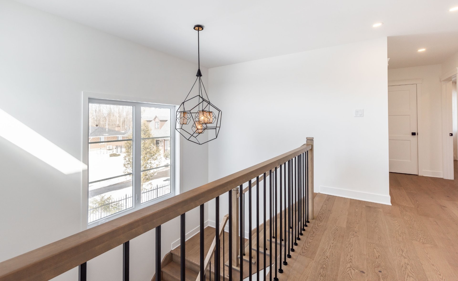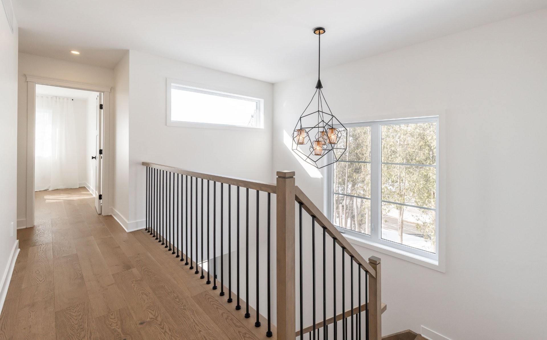 Bright & airy landing/hallways above the gorgeous wooden staircase. Large windows allow the space to flood with natural light. Beautiful green views through each window which remind us of the mature and established surroundings.