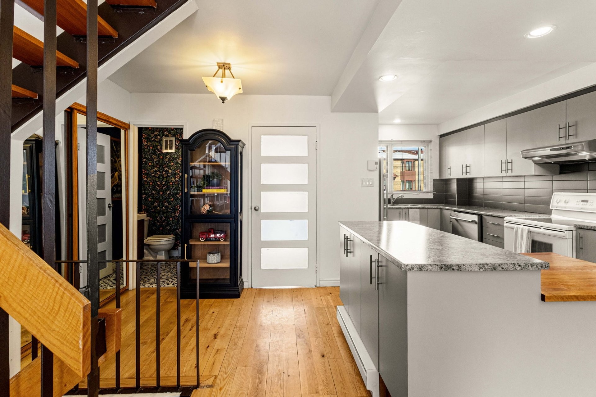 Welcome to 2462 Rue Robichaud, a beautiful corner townhouse in Saint-Laurent featuring three generously sized bedrooms, a full bathroom, and powder room! The bright open-concept main floor offers seamless living and dining areas, highlighted by a modern kitchen with a well-sized island. Upstairs, the contemporary full bathroom serves the spacious bedrooms. The finished basement includes a comfortable family room and laundry closet. Enjoy a great-sized backyard, perfect for entertaining, play, or quiet evenings outdoors. In proximity to all amenities, grocery stores, highways, parks, schools, and public transportation.