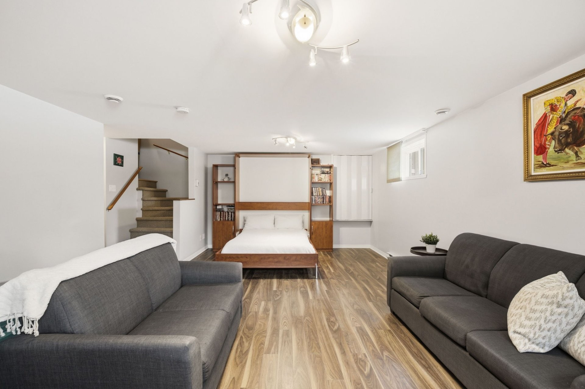 The fully finished basement provides additional versatile living space, ideal for a family room, playroom, or home office. This level also includes extra storage, a Murphy bed for guests, and a full bathroom.