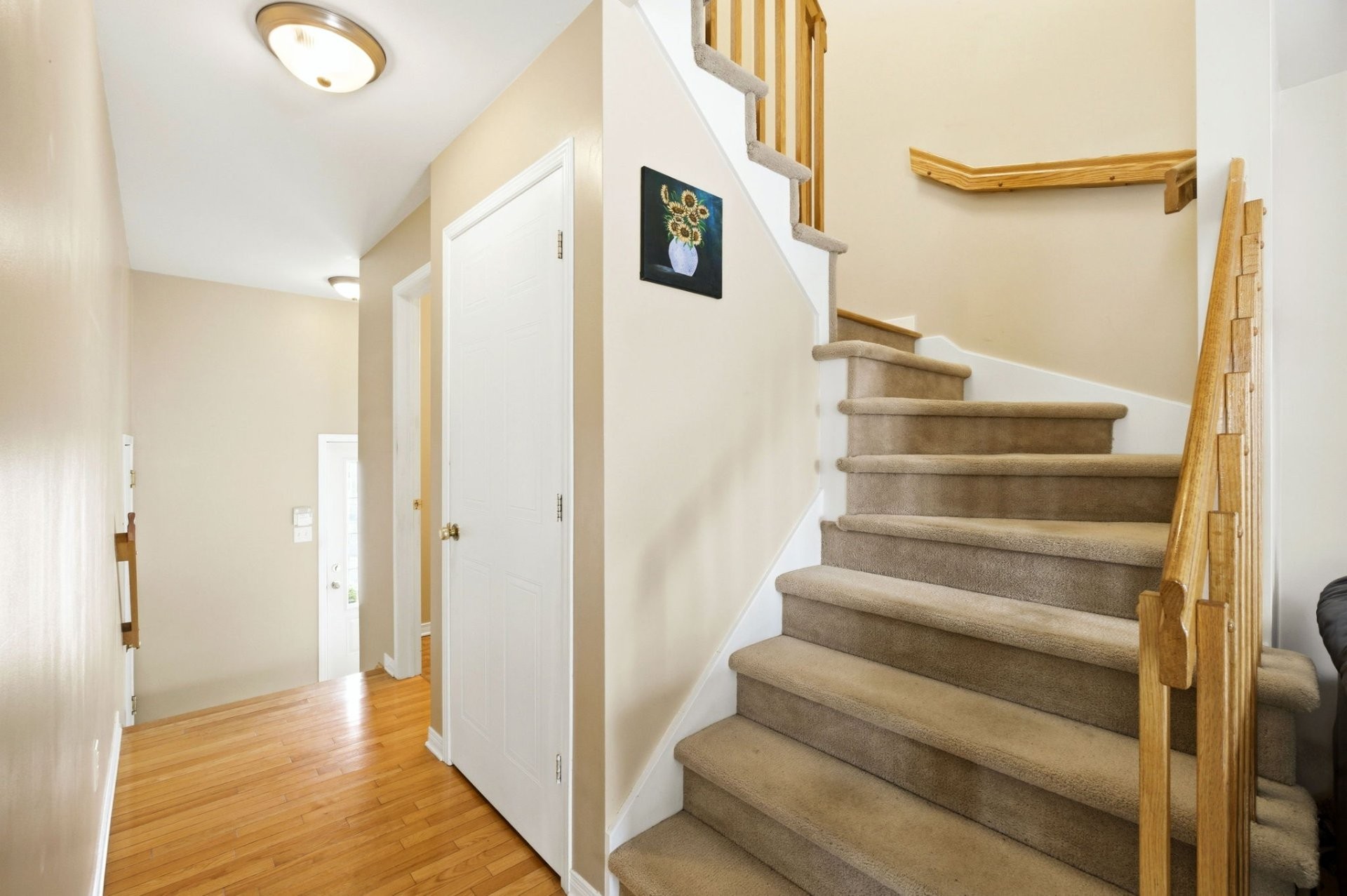 The main floor features a bright open-concept layout that seamlessly connects the kitchen, dining room, and living room. Hardwood floors run throughout the space, creating a warm and inviting atmosphere that is perfect for both family living and entertaining. A convenient powder room completes this level.