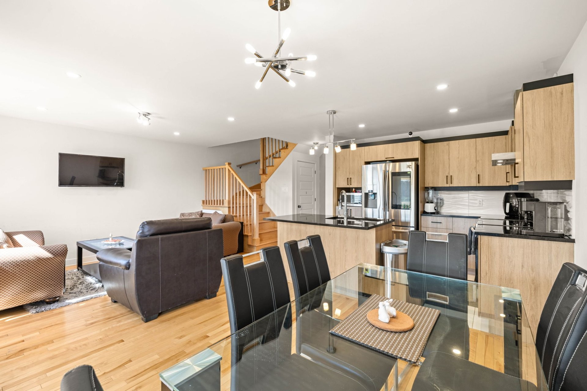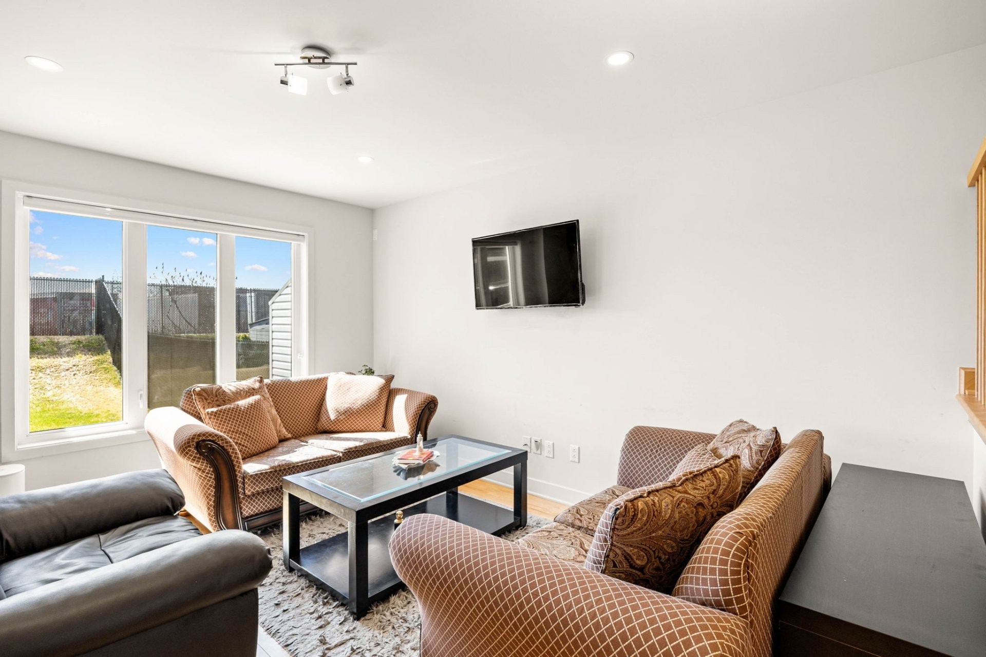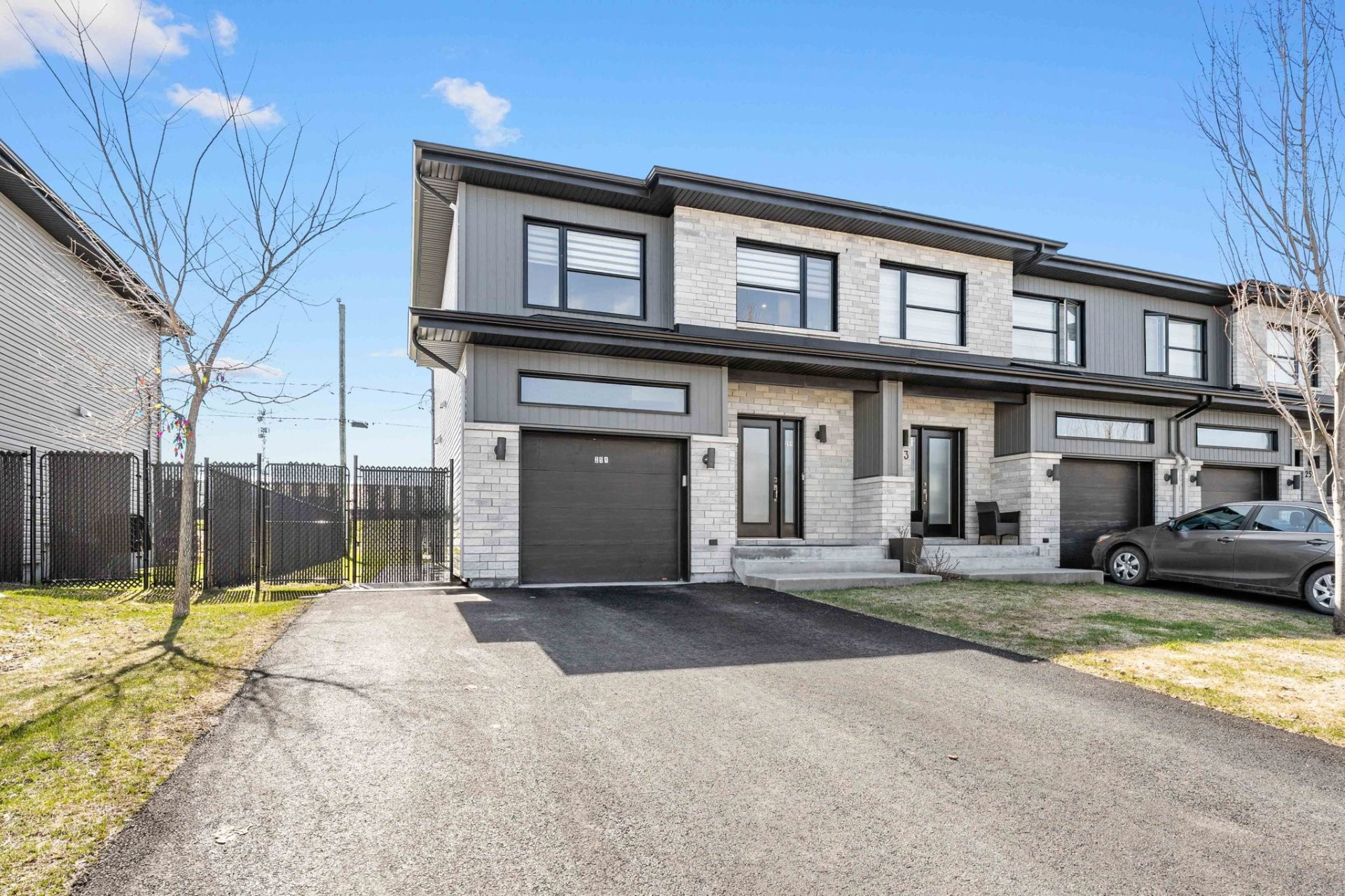 Welcome to 251 Claude-Léveillée, a semi-detached corner-unit townhouse offering numerous upgrades throughout. The main floor features an open-concept kitchen, dinette, and living area with black quartz countertops and a large island, plus a full bathroom with shower. Enjoy a landscaped, fenced yard with a covered deck and paved patio. Upstairs offers a primary suite with walk-in closet, two additional bedrooms, and a full bathroom. The basement includes a full bath, laundry room, and storage. Turnkey and move-in ready.