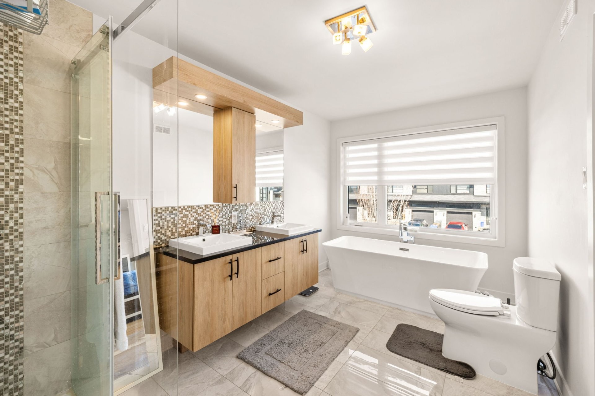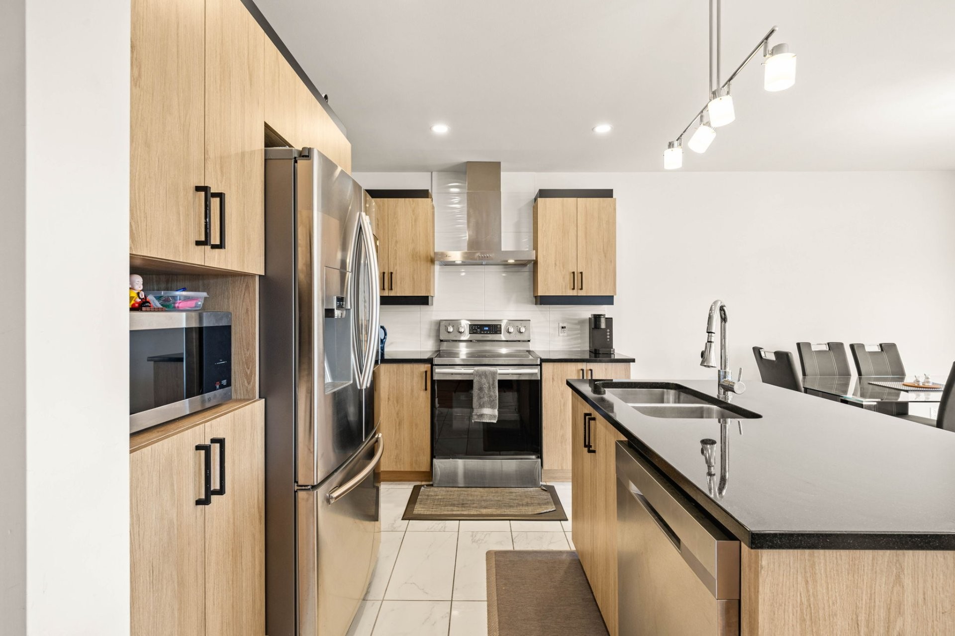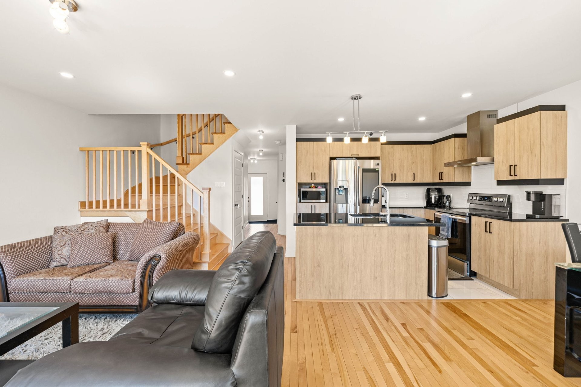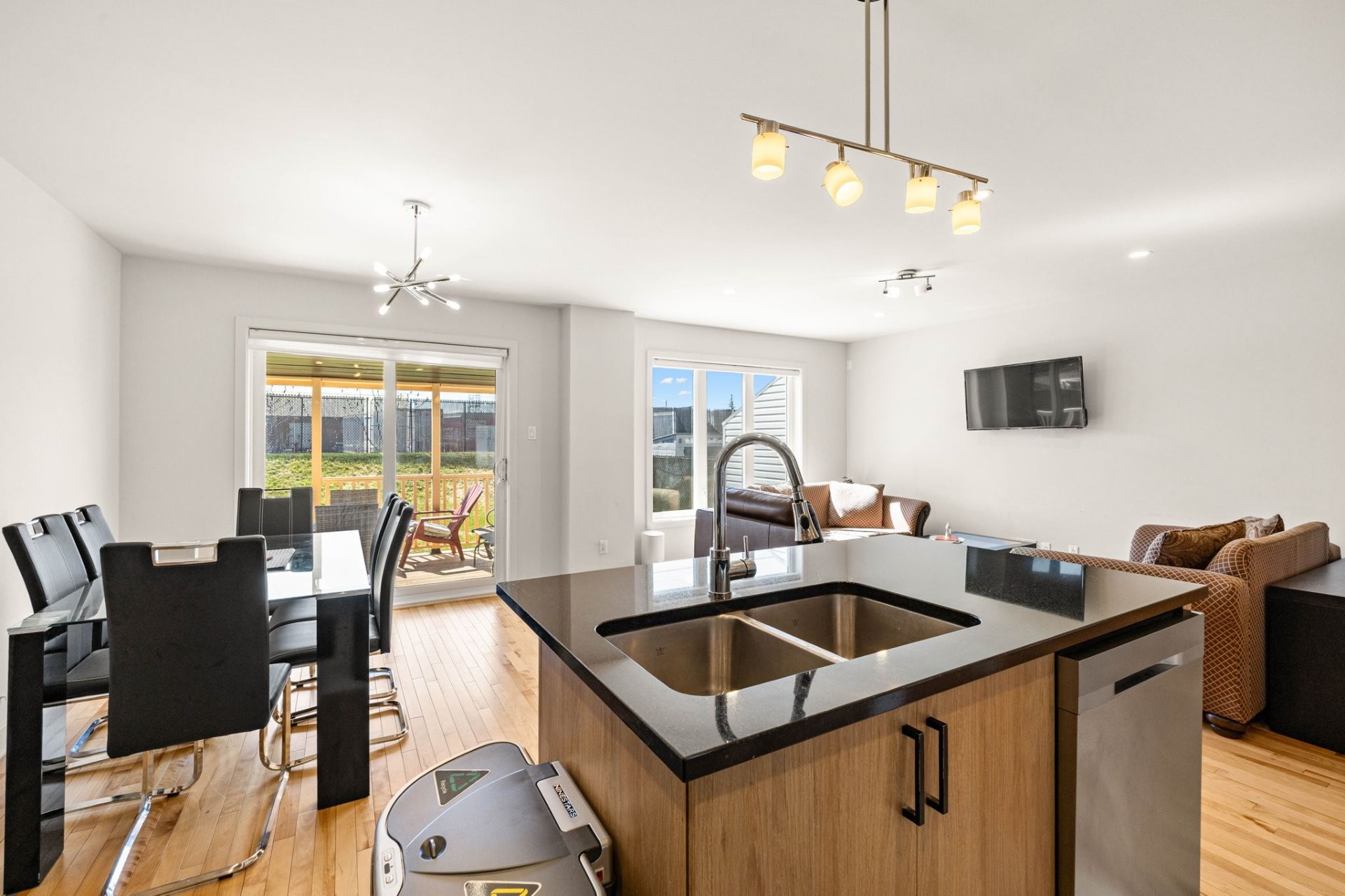 Welcome to 251 Claude-Léveillée, a semi-detached corner-unit townhouse offering numerous upgrades throughout. The main floor features an open-concept kitchen, dinette, and living area with black quartz countertops and a large island, plus a full bathroom with shower. Enjoy a landscaped, fenced yard with a covered deck and paved patio. Upstairs offers a primary suite with walk-in closet, two additional bedrooms, and a full bathroom. The basement includes a full bath, laundry room, and storage. Turnkey and move-in ready.