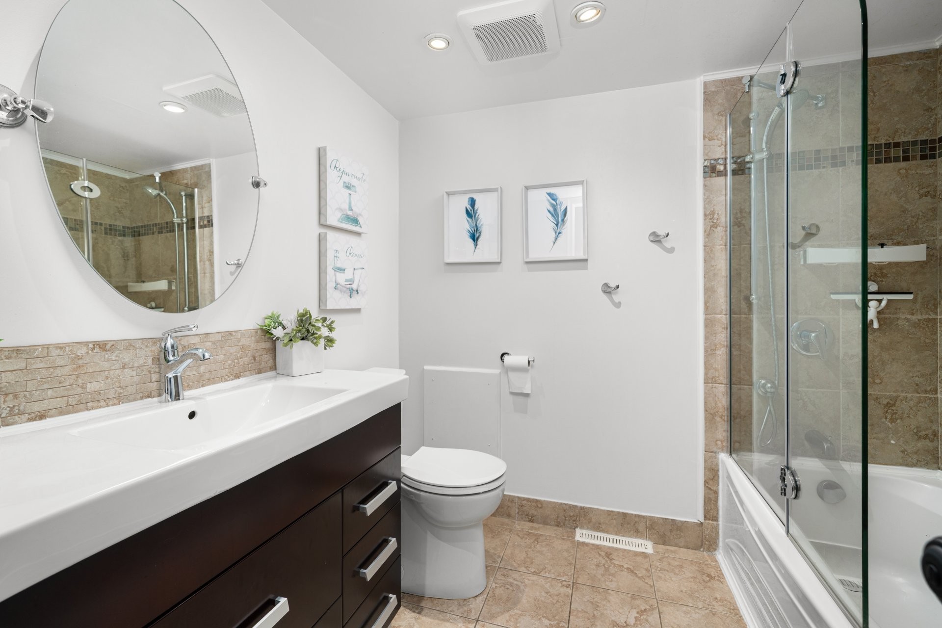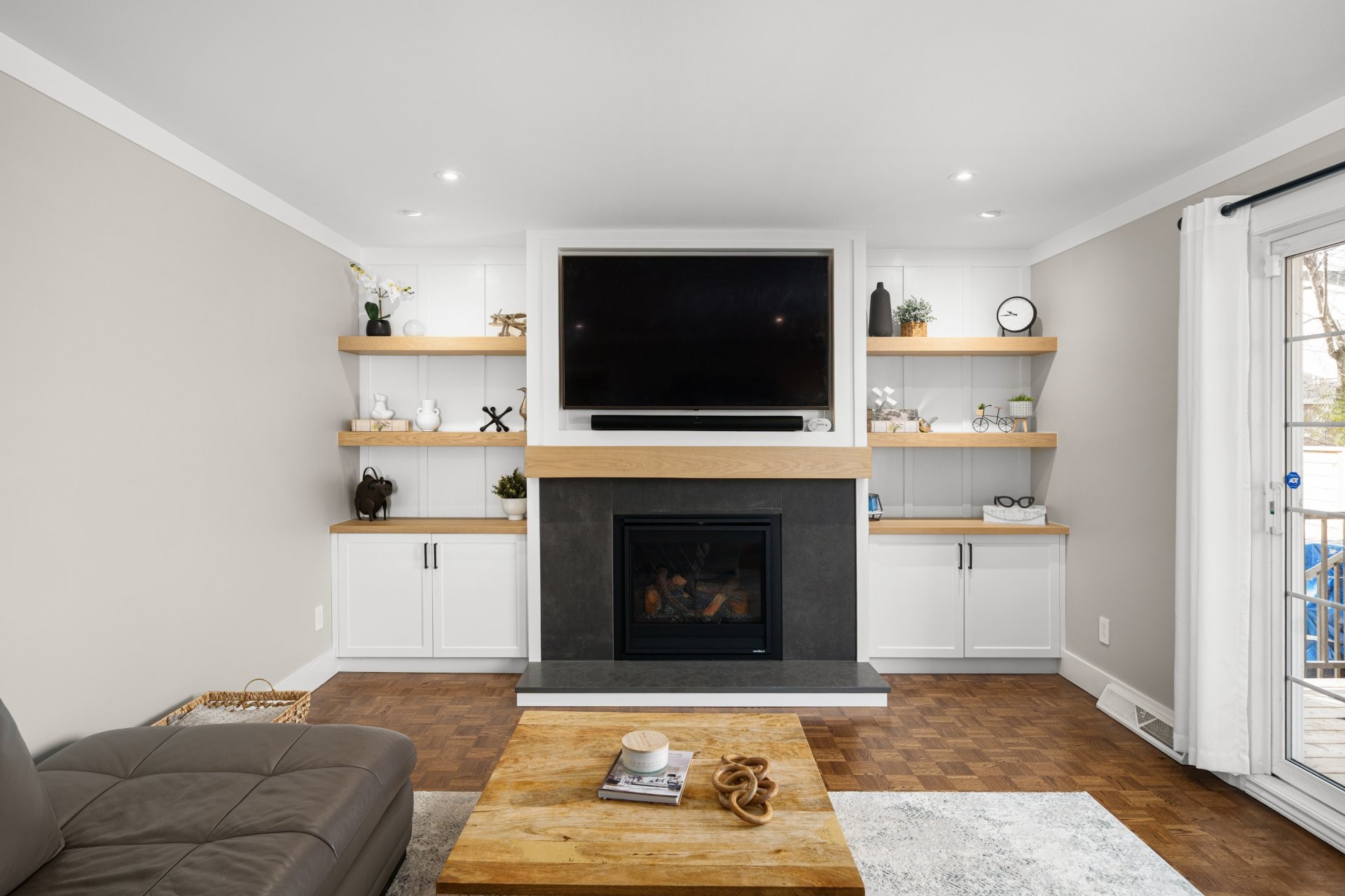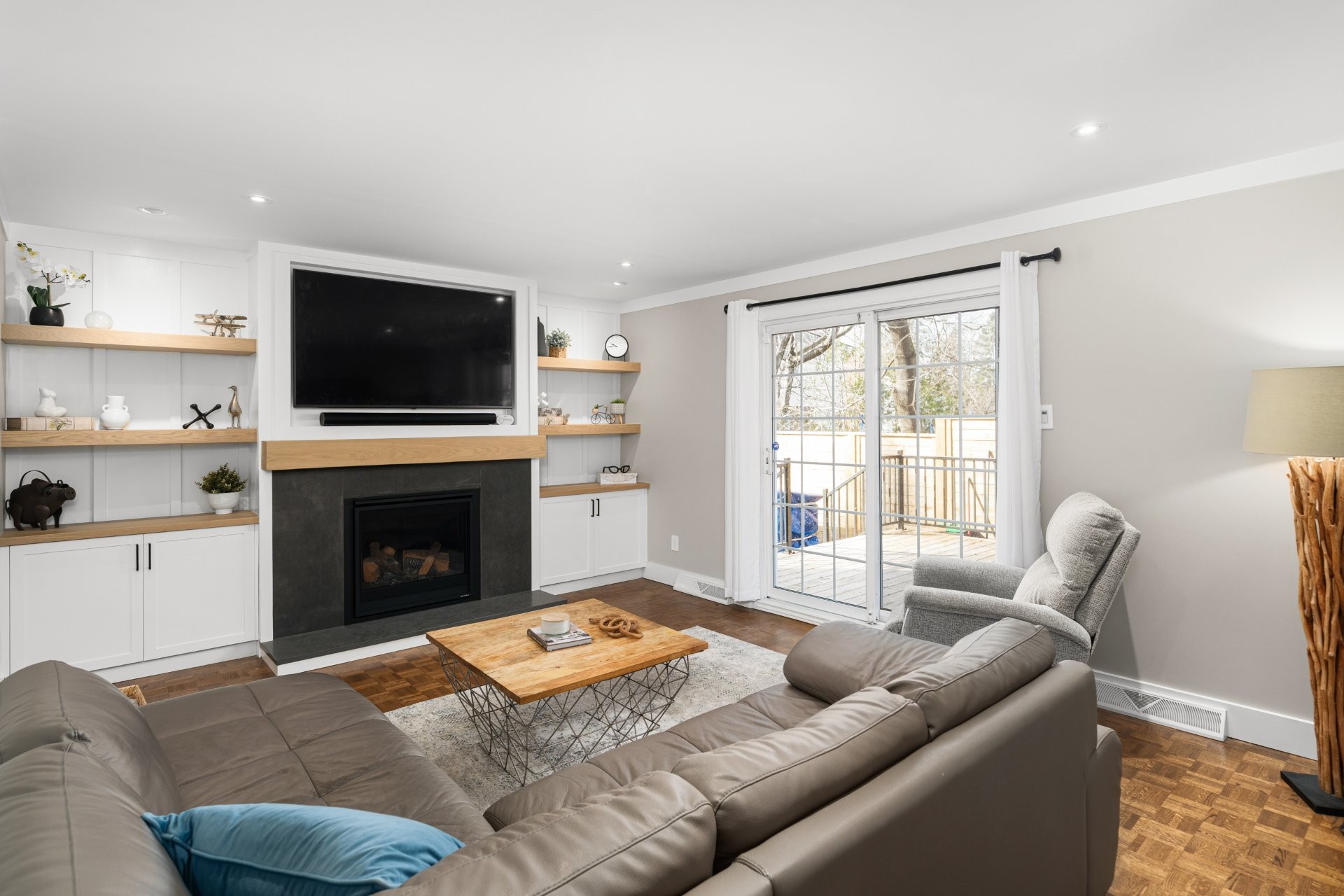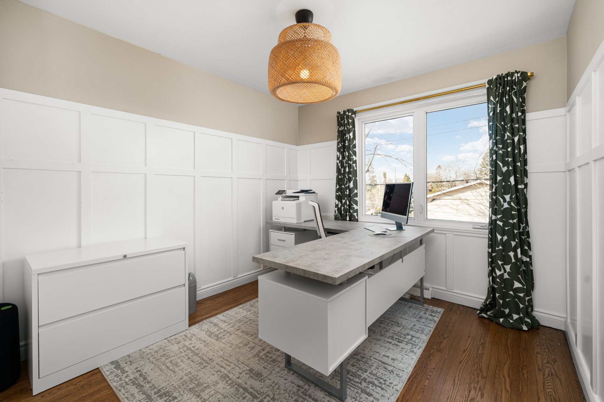 The fully renovated basement adds valuable living space, including a large playroom, a fifth bedroom or home office equipped with a convenient Murphy bed, and a stylish full bathroom with heated floors.