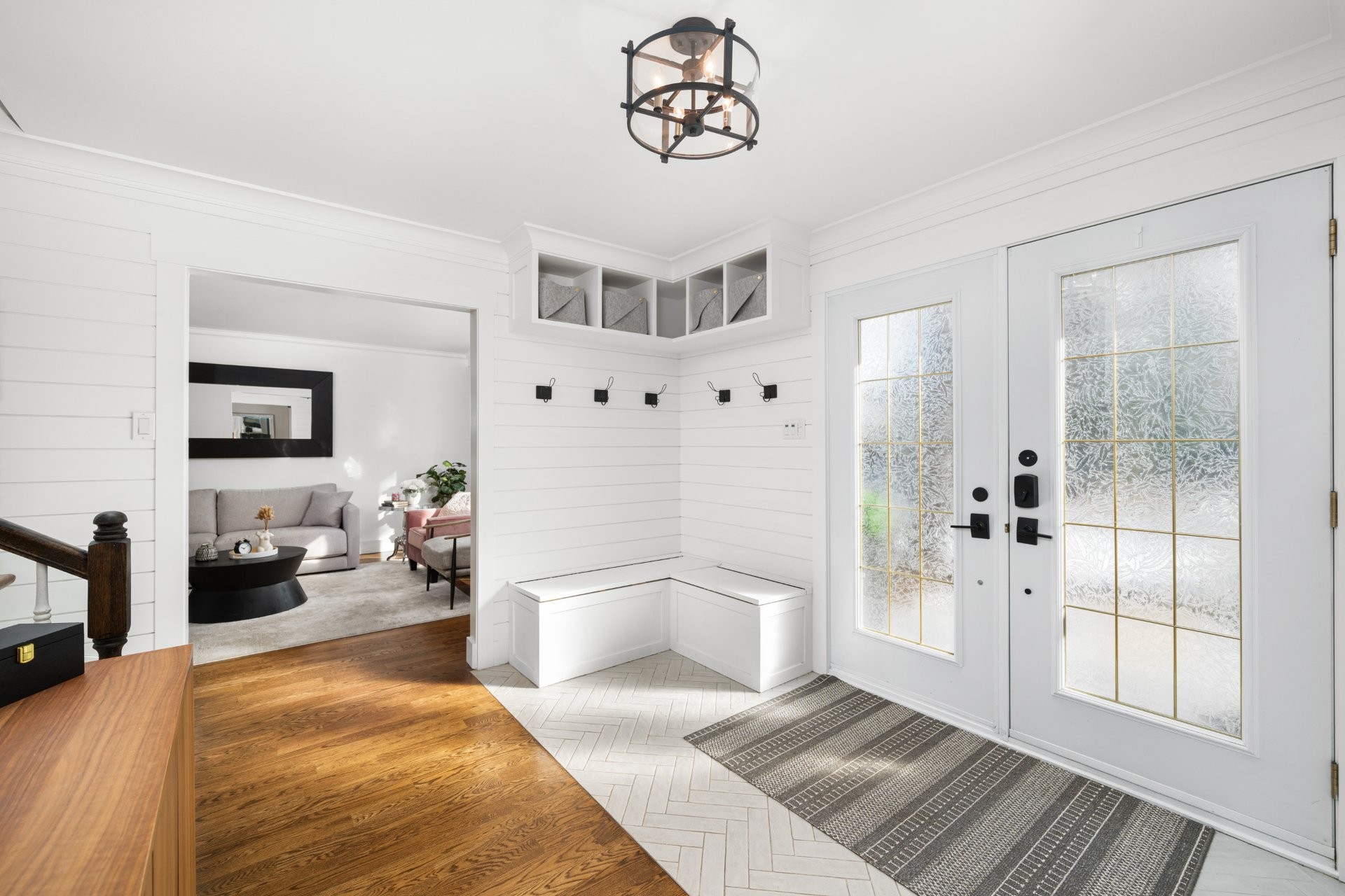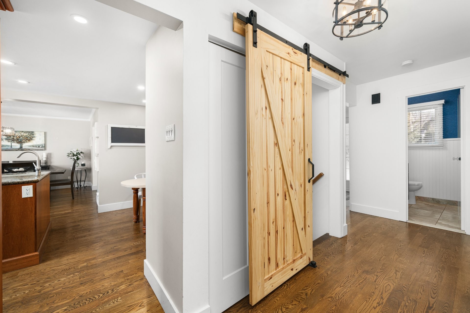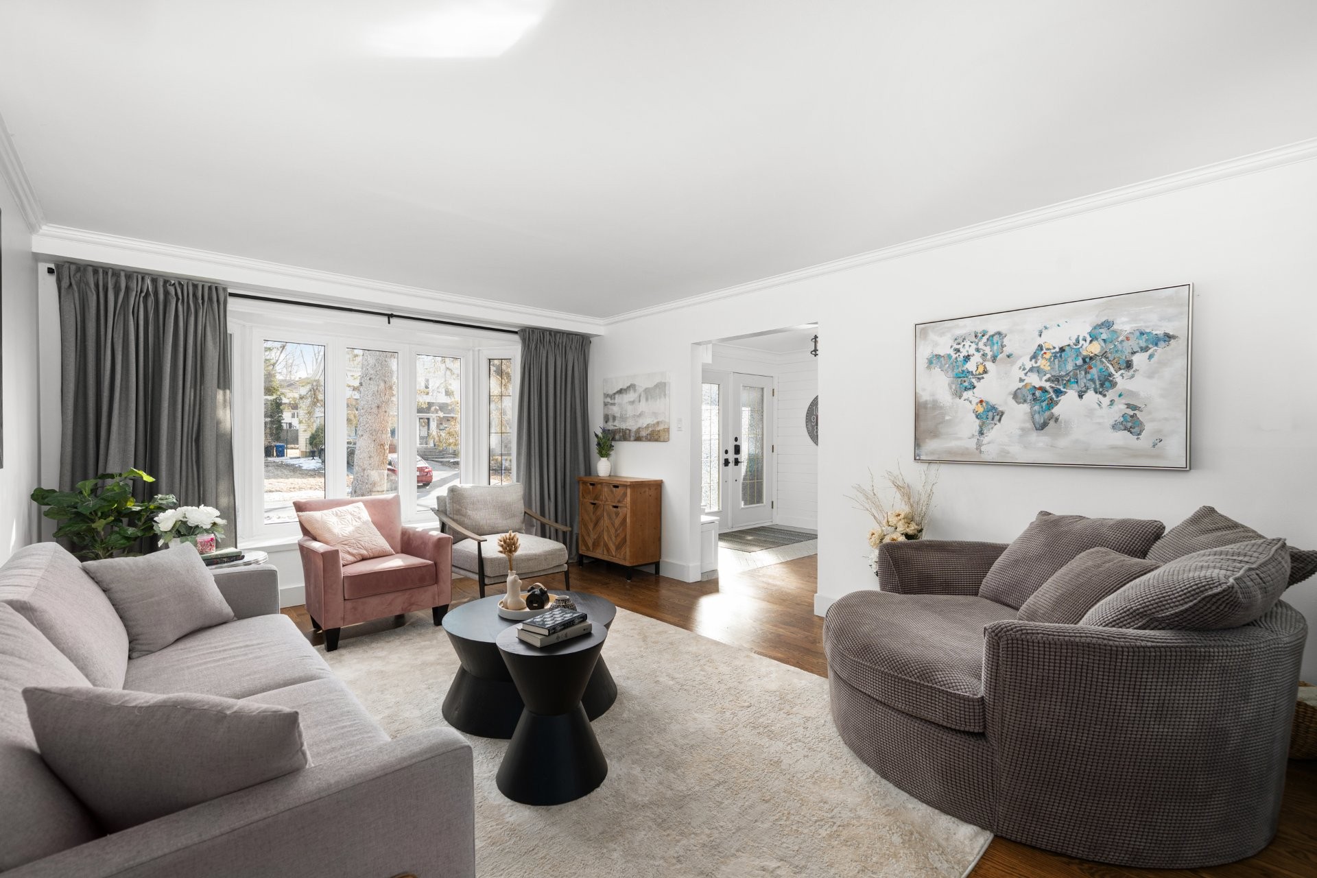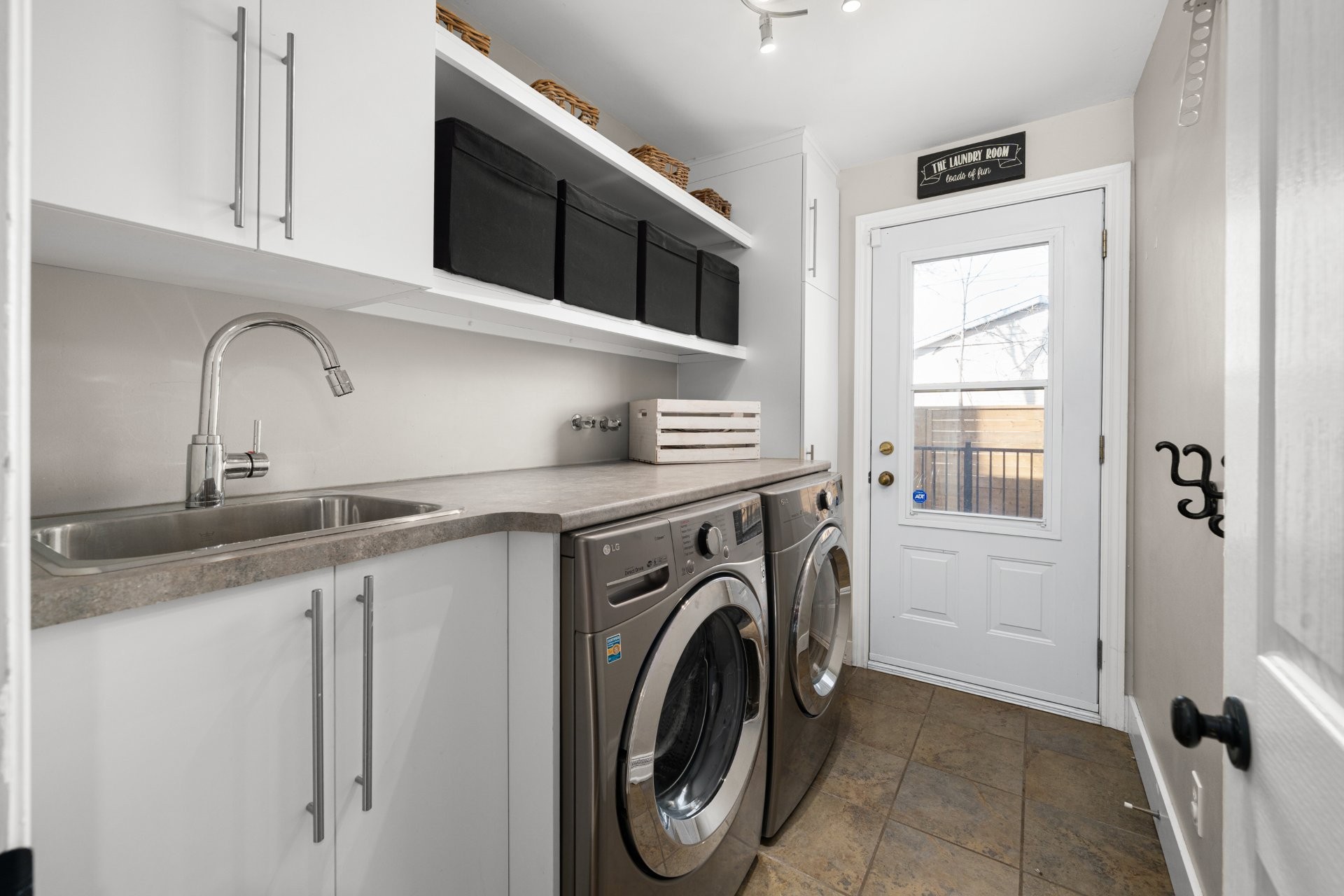 The fully renovated basement adds valuable living space, including a large playroom, a fifth bedroom or home office equipped with a convenient Murphy bed, and a stylish full bathroom with heated floors.