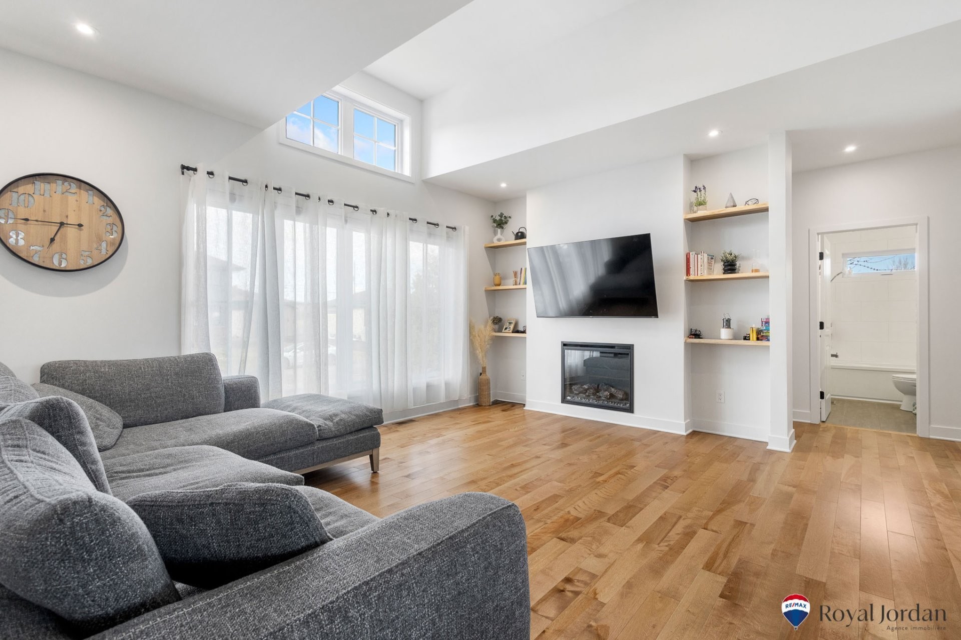 -Plafond cathédrale au plafond salon-Plancher de bois franc-Air conditionnée murale