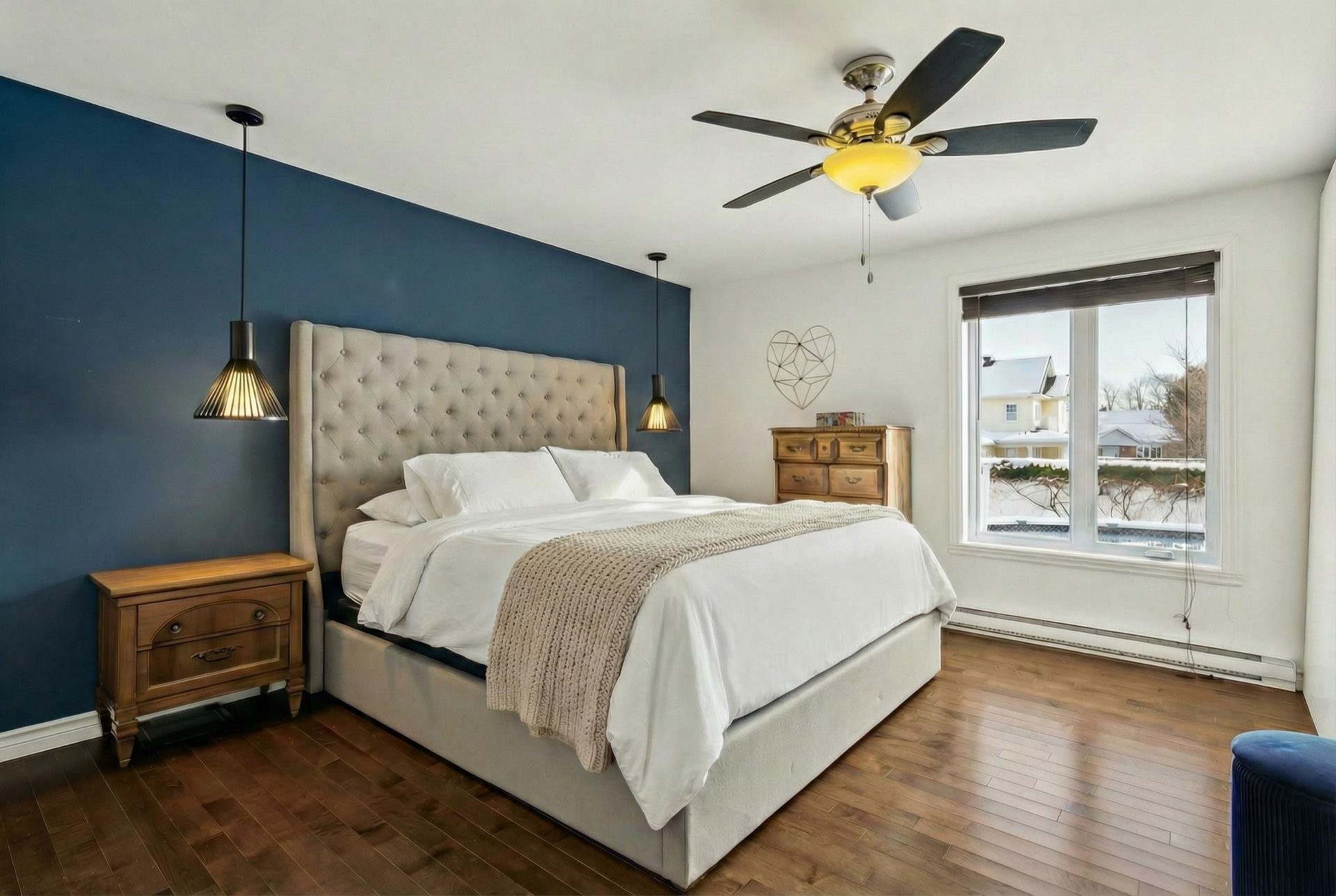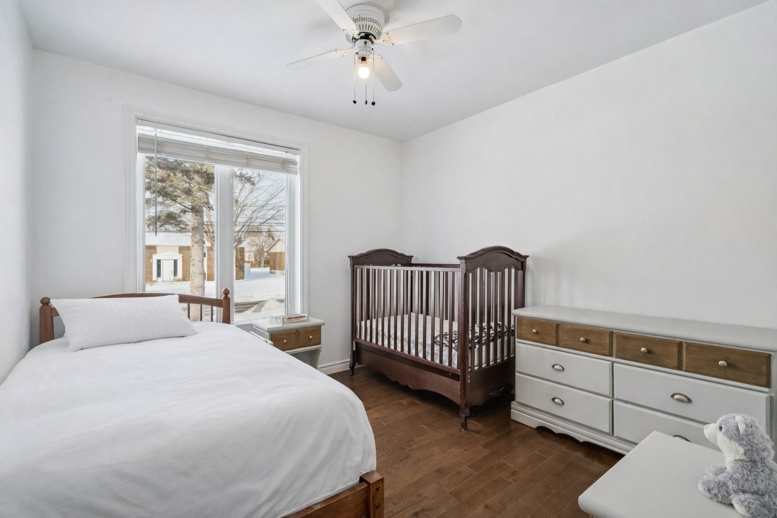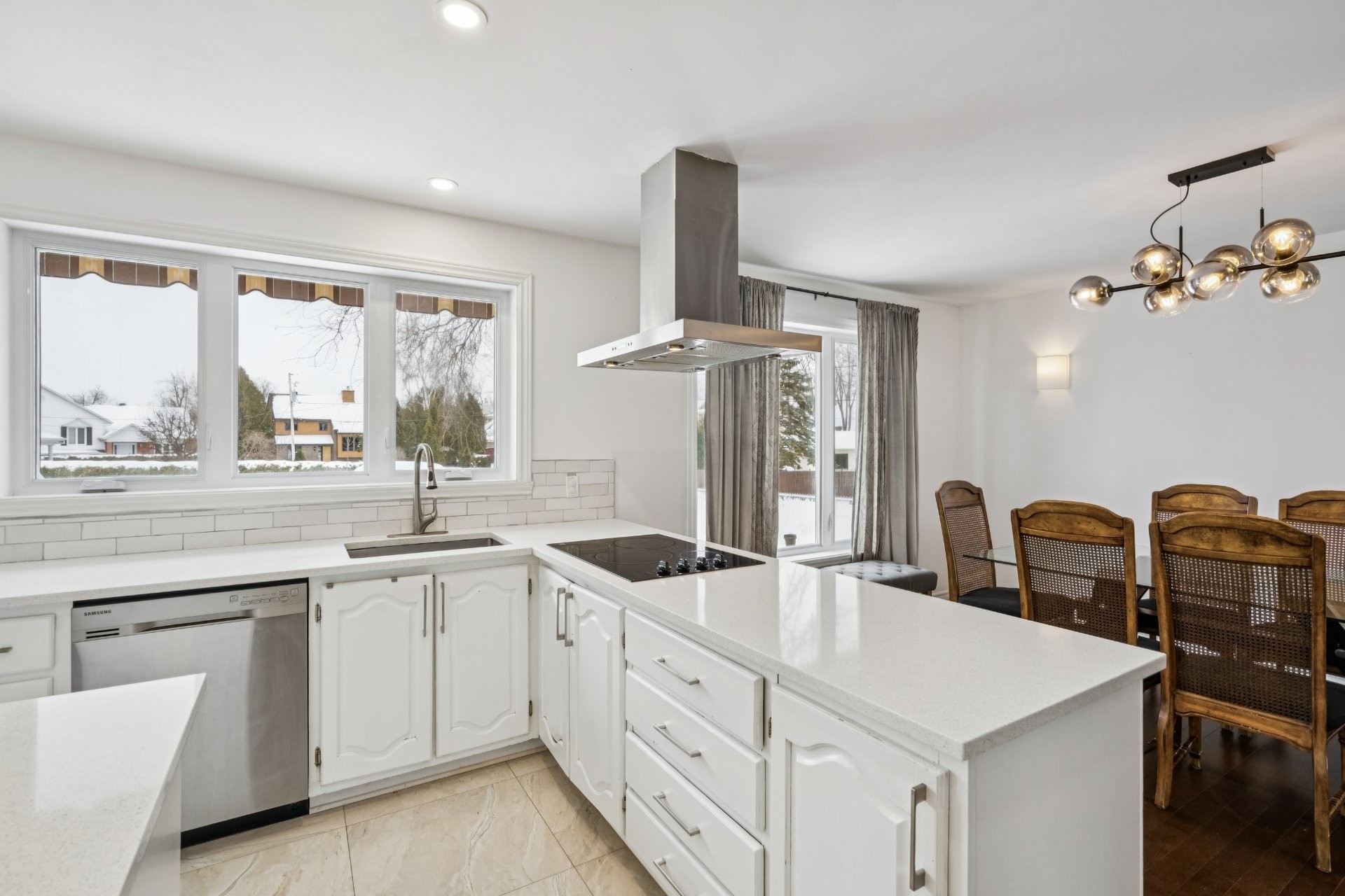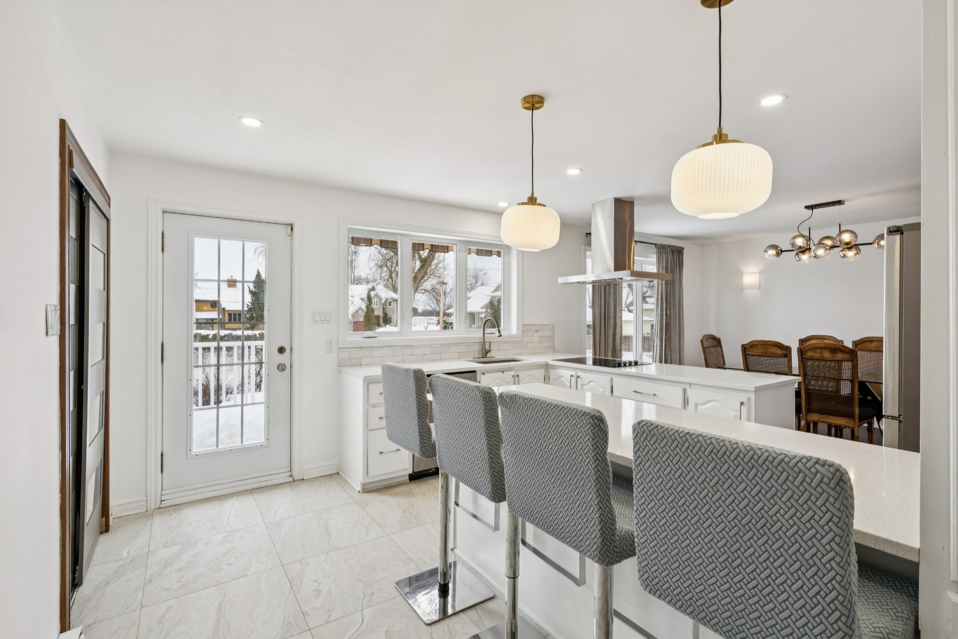 Dishwasher, built-in oven and microwave, induction cooktop, both heat pumps, IKEA storage unit in the basement bedroom, above-ground pool and pool heater (both functional, sold without warranty; the pool liner requires replacement), as well as the blinds in the primary bedroom and the main-floor bathroom.