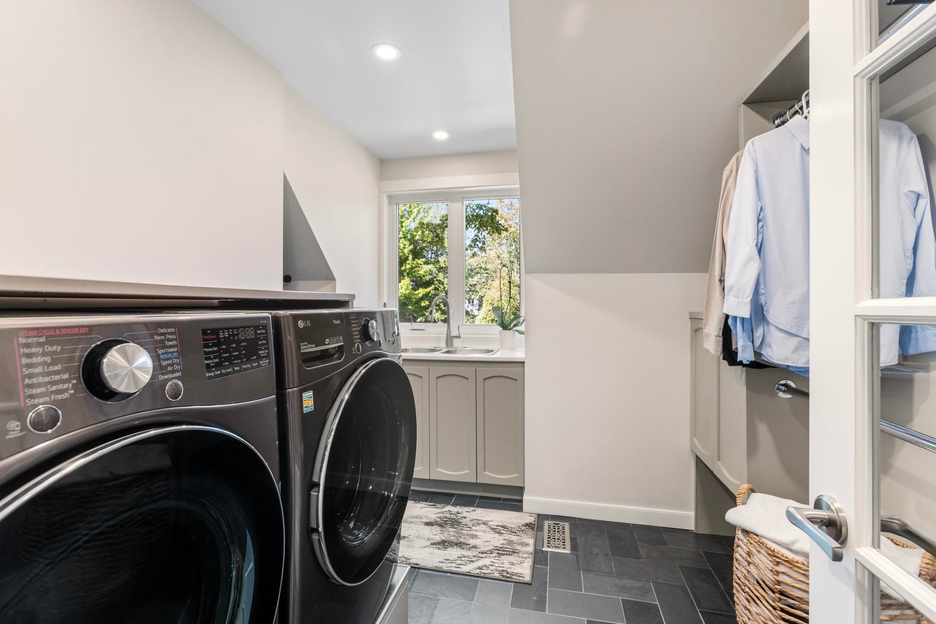 Curtains, Washer, Dryer