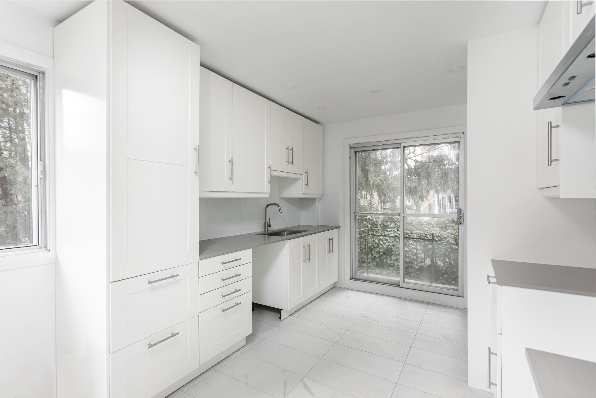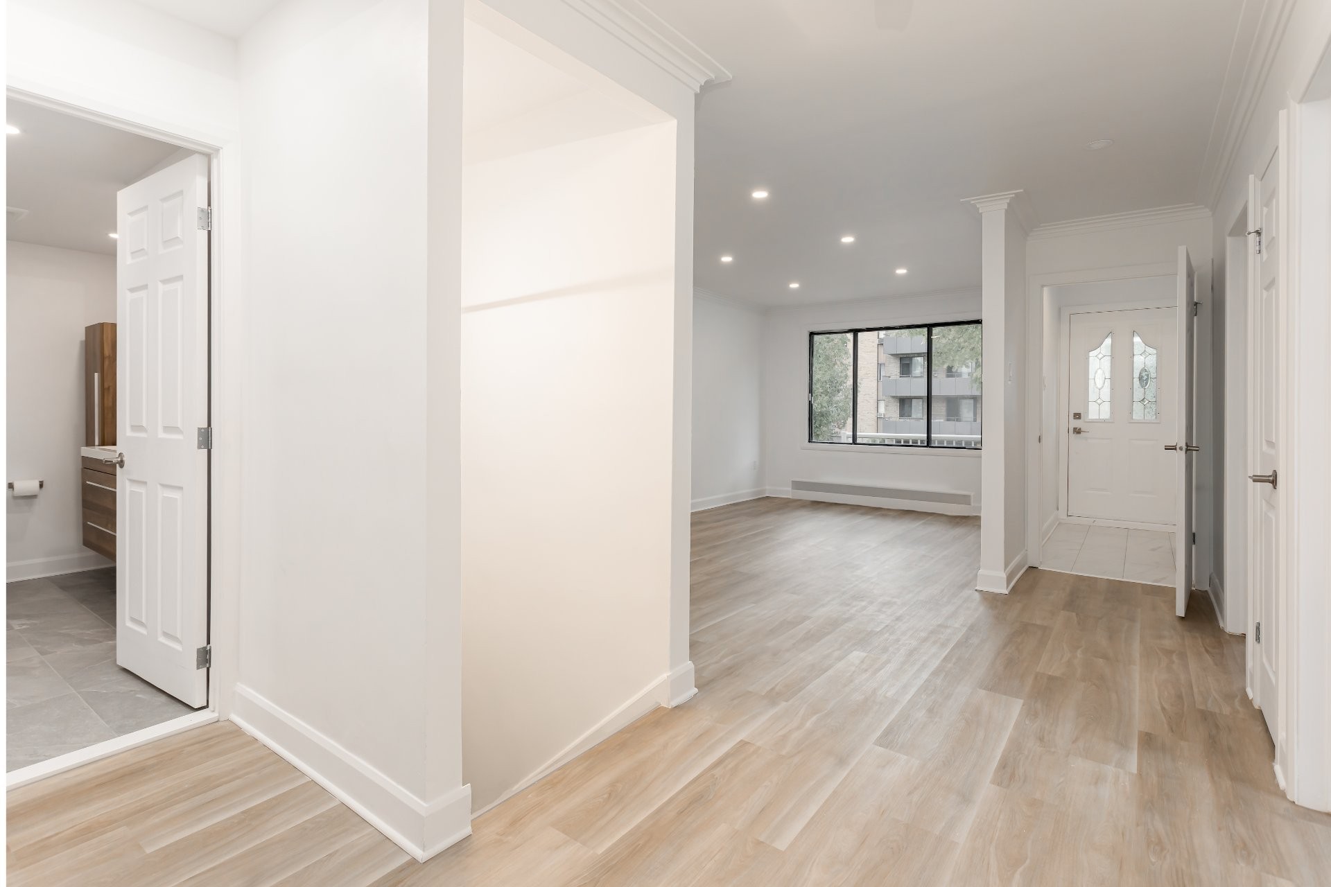 Spacious and completely renovated unit located on the main floor on a very calm and peaceful street. This charming corner unit offers an abundance of natural light, 3 bedrooms, 1 bathroom, 1 powder room, a large basement, and a double heated garage with direct access. Nearby well-graded schools, parks, grocery stores, retails stores, and public transportation.