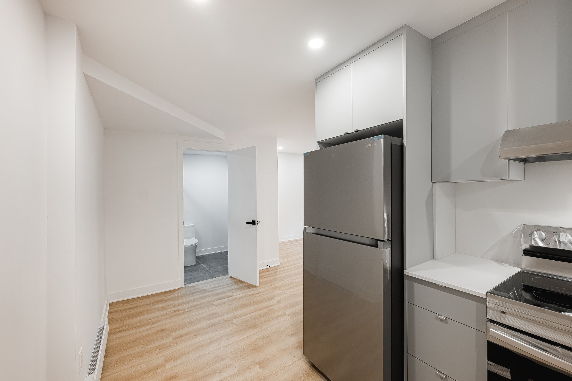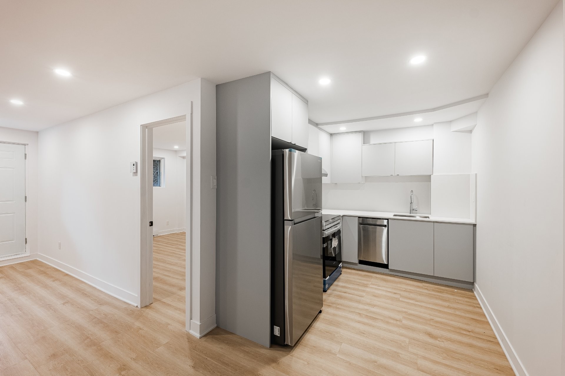 - Modern kitchen with new fridge, stove, and dishwasher