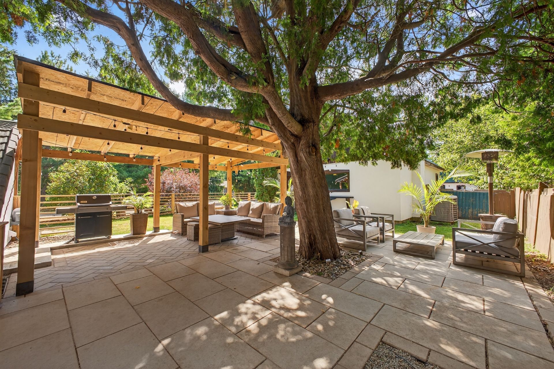Set on a generous 34,000 sq. ft. lot, the property provides plenty of outdoor enjoyment with three usable outdoor spaces ideal for entertaining, relaxing, or gardening. A detached two-door garage with an additional garage below offers excellent storage and workshop possibilities.