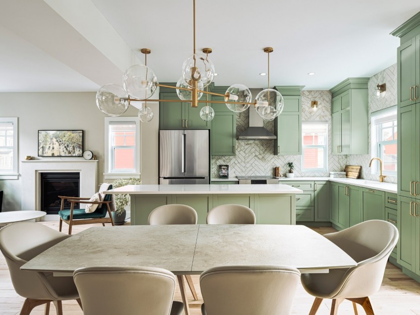 A large, bright and multifunctional room forms the heart of the home: equipped with a gas fireplace, it can be converted into a cozy den by the fire, while maintaining a convivial dining area on the other side. The U-shaped kitchen is functional and well-designed, with plenty of counter space and storage.
