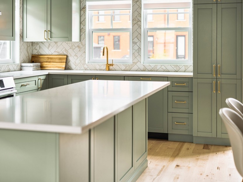 Upon entering, a spacious hall with a double closet welcomes you and sets the tone for the entire home: warm, bright, and inviting. The vintage-style living room, with its wooden floors and ceilings and large floor-to-ceiling window, invites relaxation while highlighting the charm of the past.