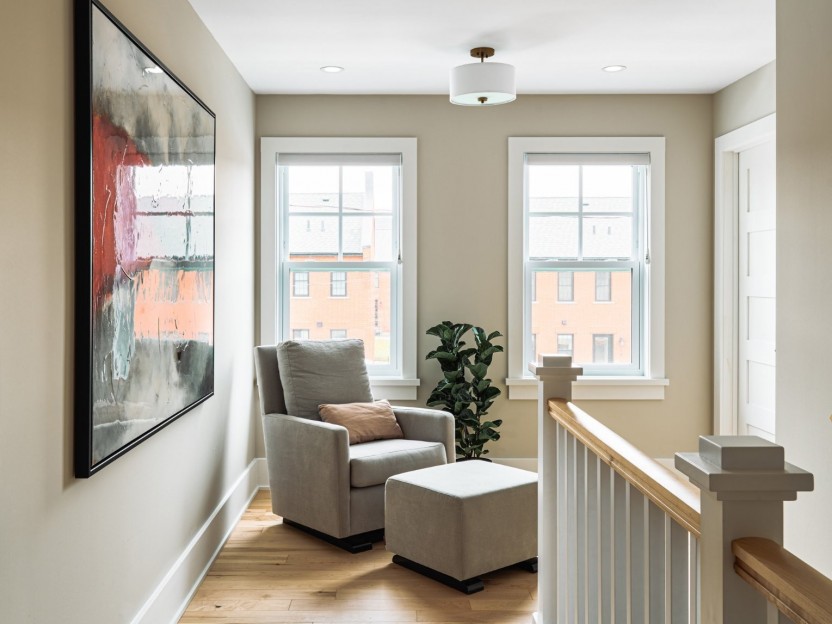 Upstairs, you'll find two additional good-sized bedrooms. One of them provides access to a multipurpose room that could be used as a children's playroom, reading nook, or office. A bathroom with a tub and shower leads off this floor.
