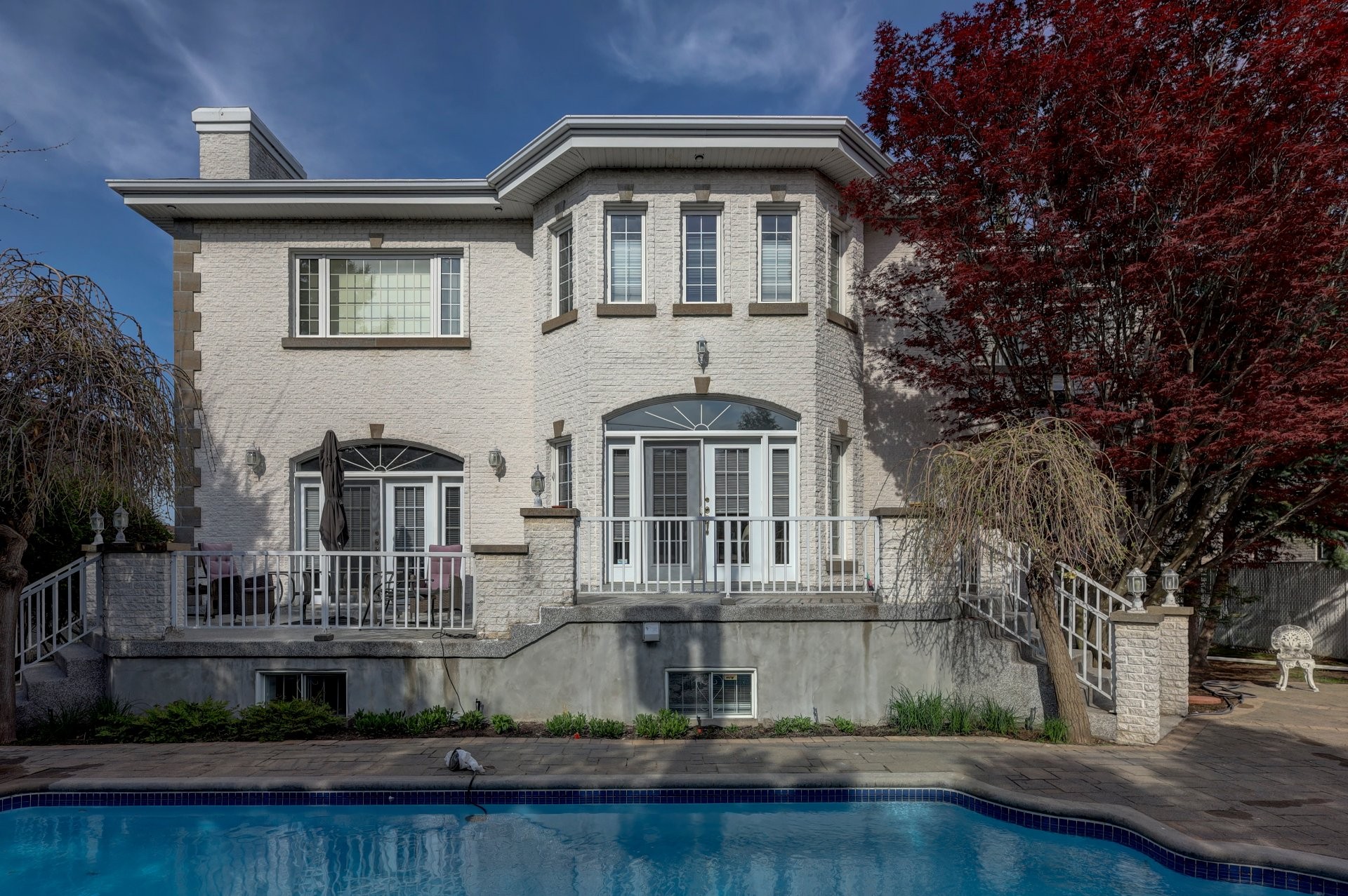 The west-facing backyard is ideal for outdoor entertaining, featuring a heated inground saltwater pool, pavi-uni areas, and a spacious balcony. This home seamlessly blends luxury, functionality, and comfort, making it a true masterpiece.