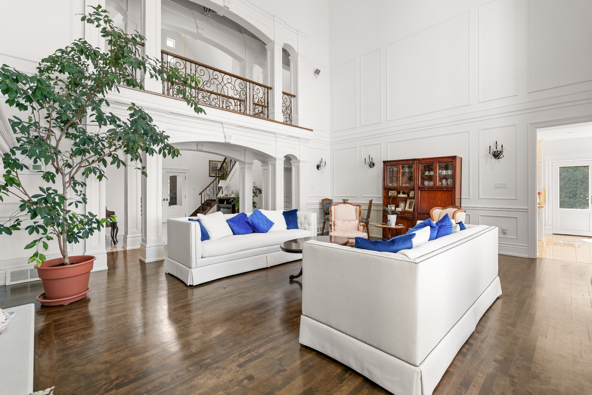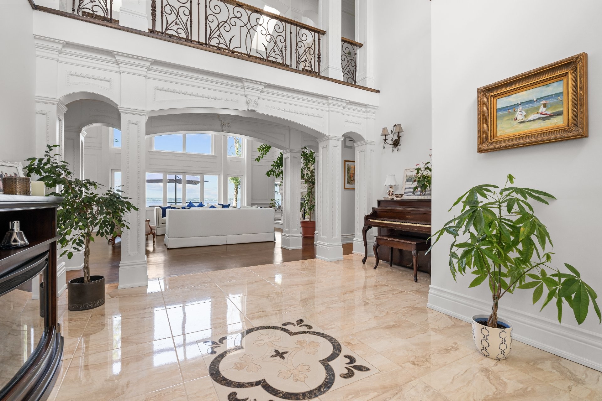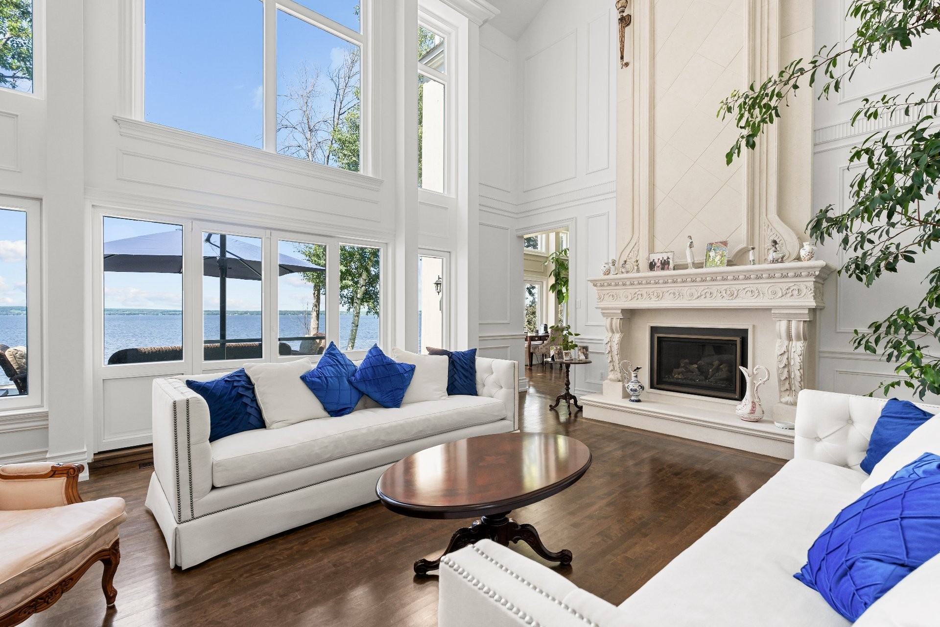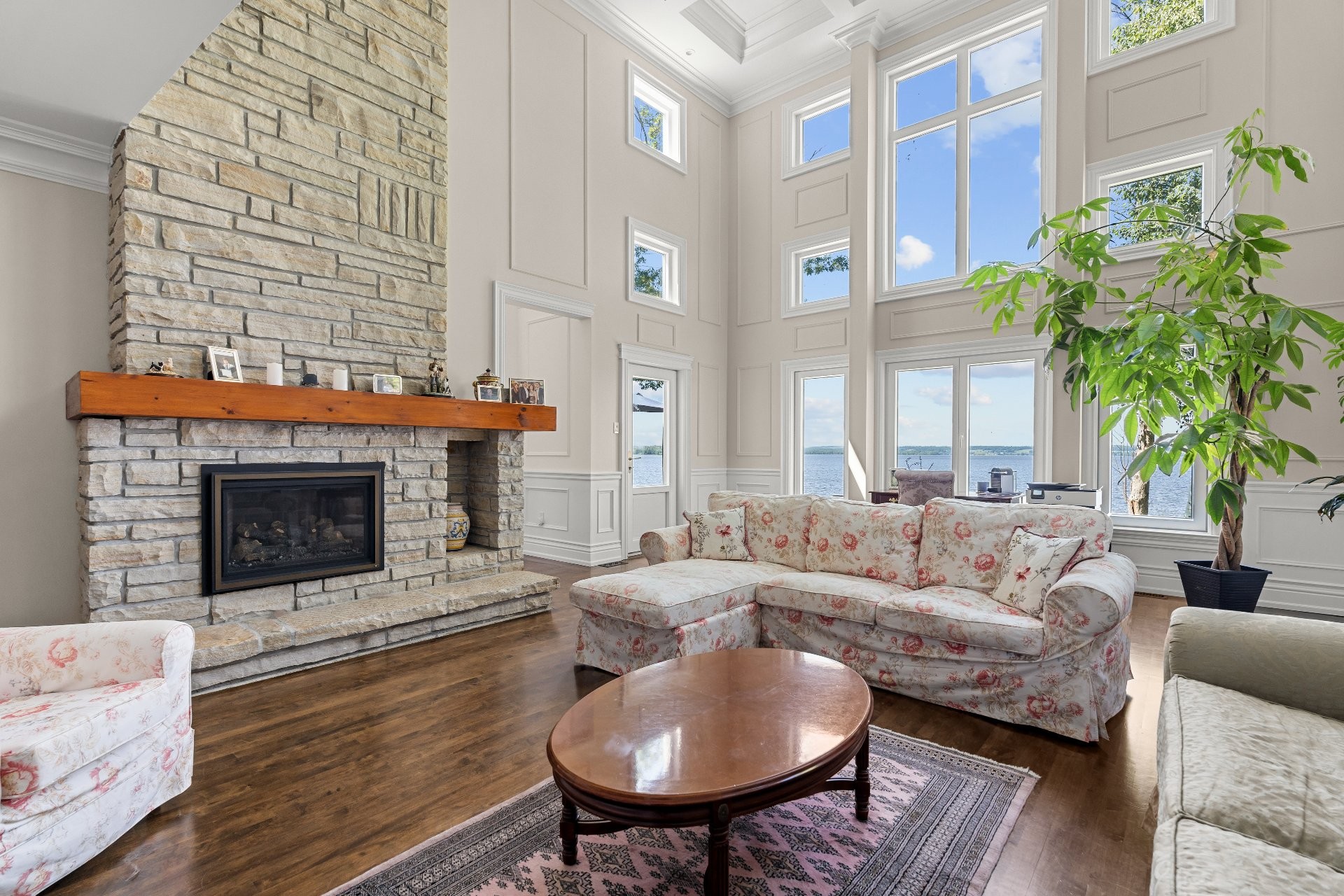 This private cul-de-sac waterfront estate offers 5,000+ sq. ft. of luxury living with balconies throughout and water views from nearly every room. The grand main living area boasts soaring 20+ ft ceilings, complemented by 3 family rooms, a stunning chef's kitchen, and hand-crafted finishings executed with precision. Relax in the finished basement or savor breathtaking sunsets from your private dock or from your primary bedroom! Take advantage of being a part of the exclusive Hudson Club amenities such as a private beach, gorgeous pool, and tennis courts. A rare chance to own elegant waterfront living at finest! You will not be disappointed!